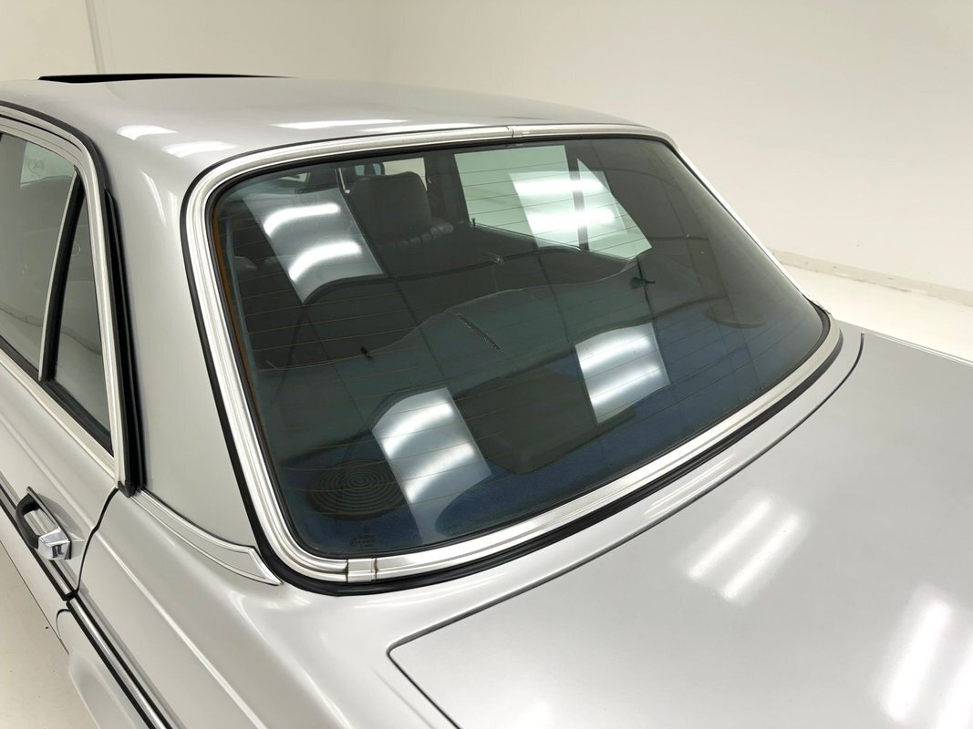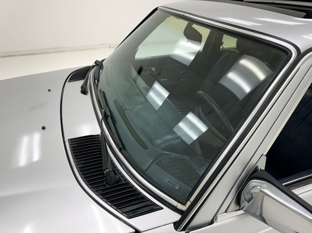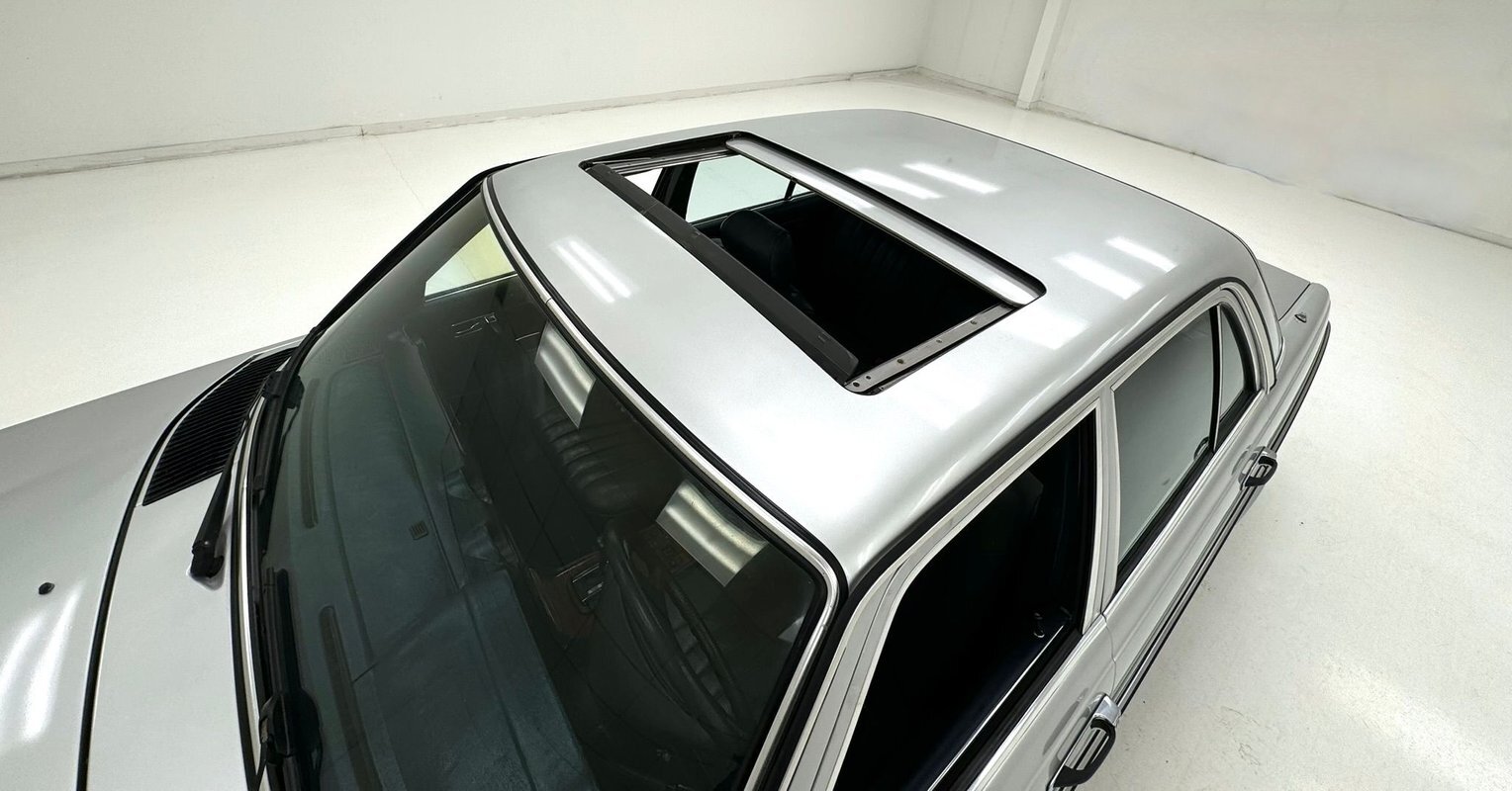 Astral Silver Metallic, in original condition, is found on the exterior of this meticulously cared for car. From its right looking front grille and chromed surround topped with the tri pointed star, to the trim spears on the side window surrounds, and rear trim it's all in nicely preserved condition. An electric sliding sunroof on top, and clean rocker panels on bottom are noted. Plenty of room in the trunk and just below the lid are ribbed self cleaning tail lighting. The car has the factory mag wheels and 205/70R14 rubber all around. No rust to speak of on the body or rockers on this panzer tank.