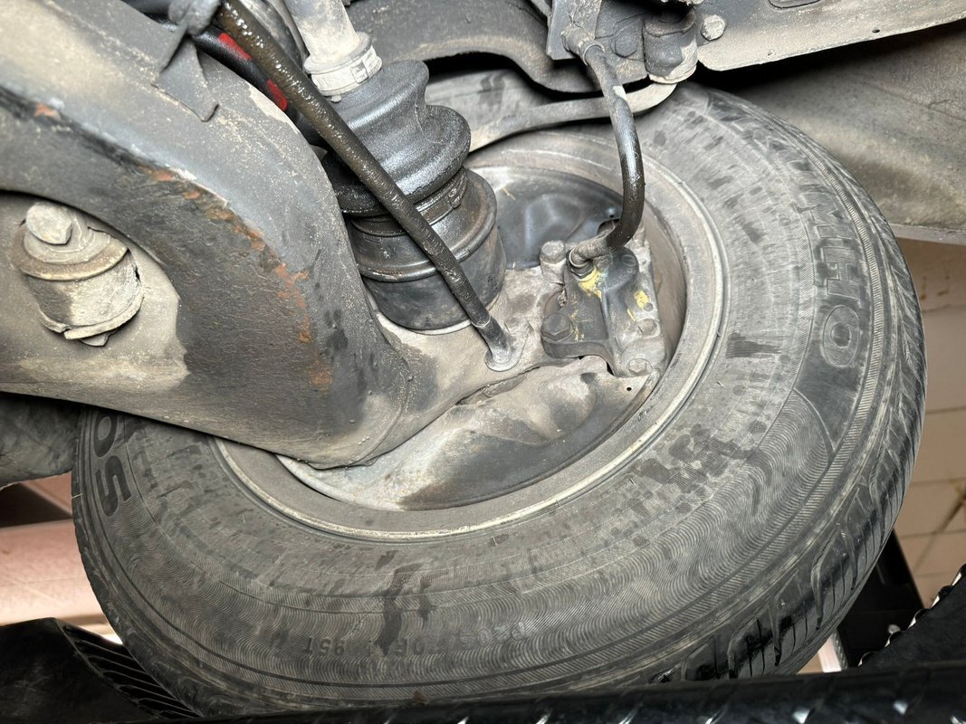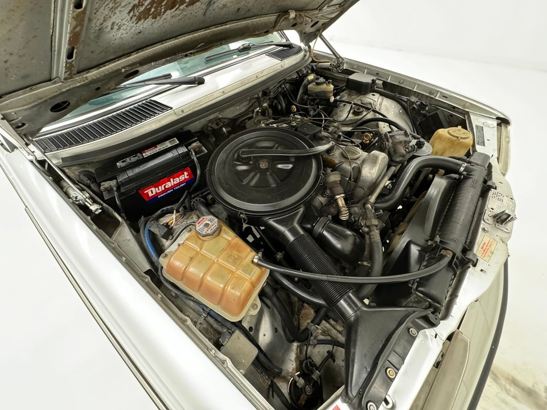 A 5-cylinder turbo diesel 3.0 liter engine coupled with a 4-speed automatic transmission takes you smoothly up to speed. This is fed fuel by a Bosch fuel injection system. There is a 3.07 rear axle. All is just slightly patina under this hood and in the engine bay. Let's call it a clean aged look!