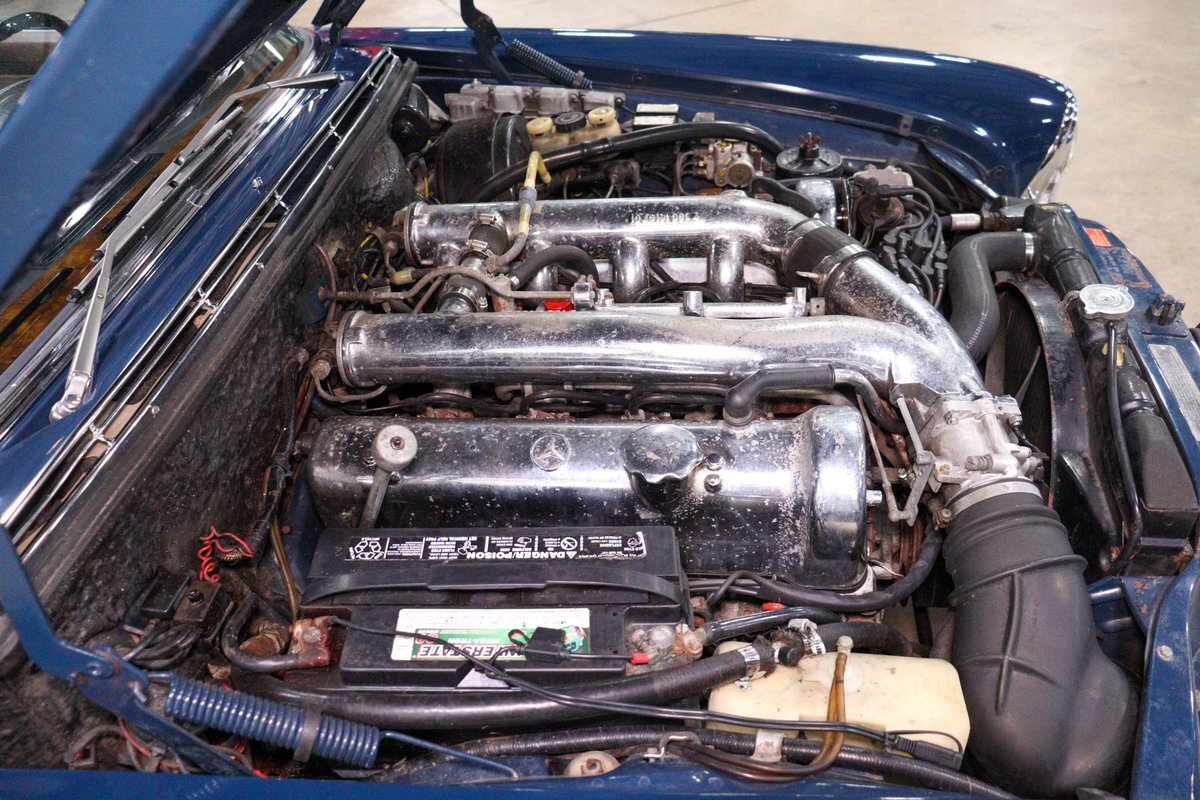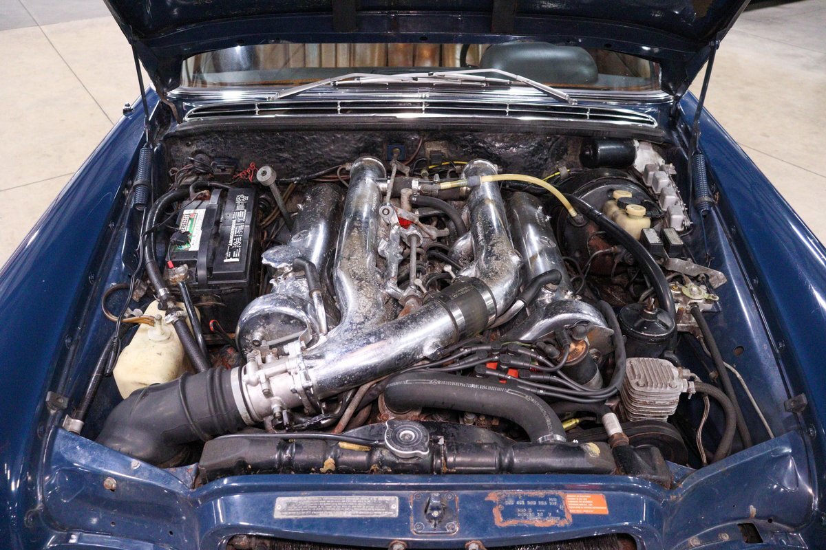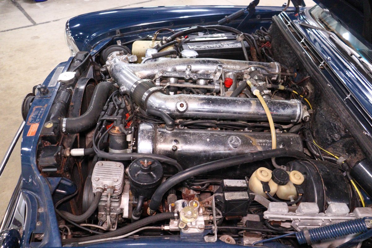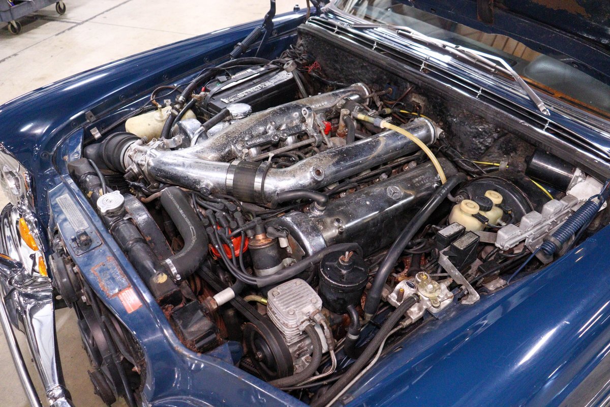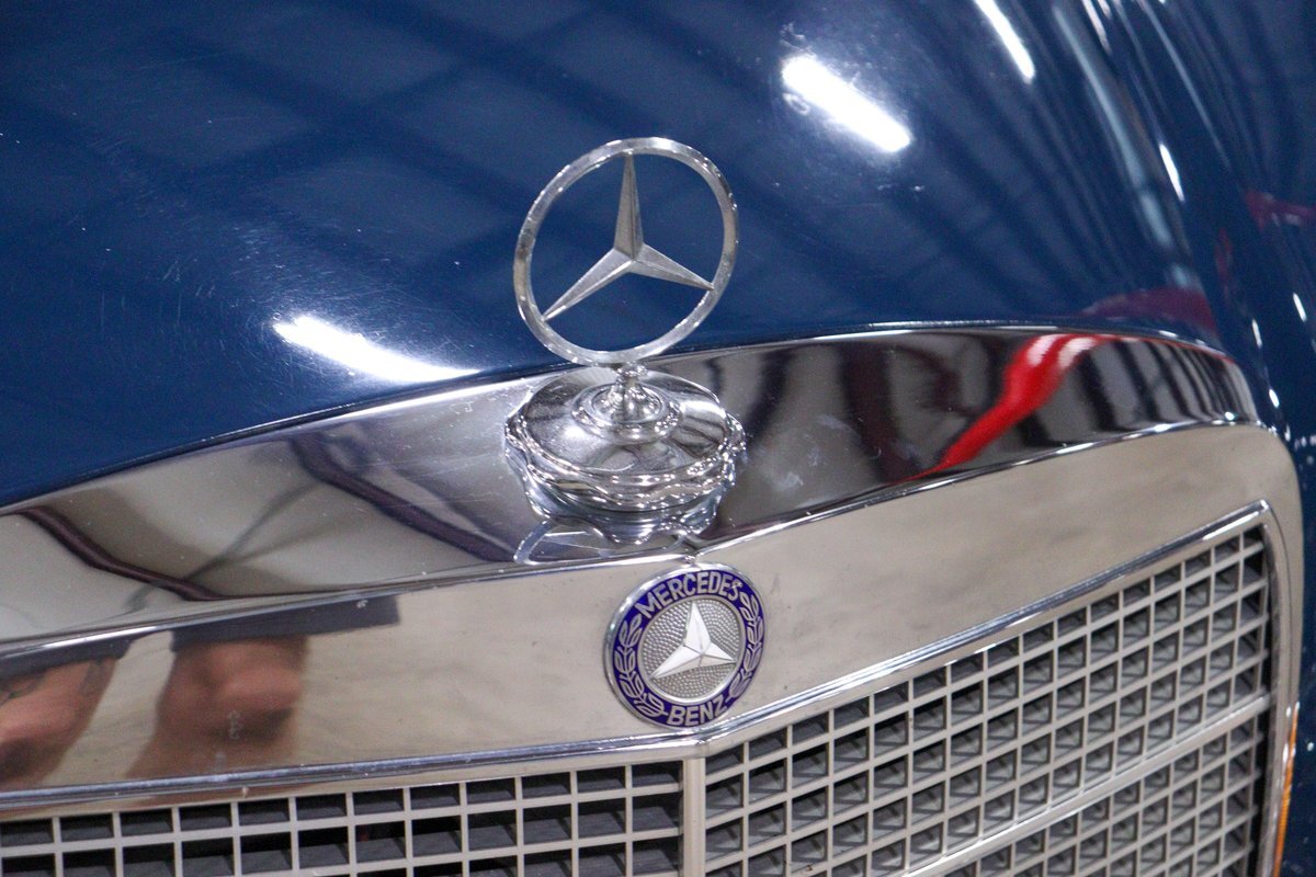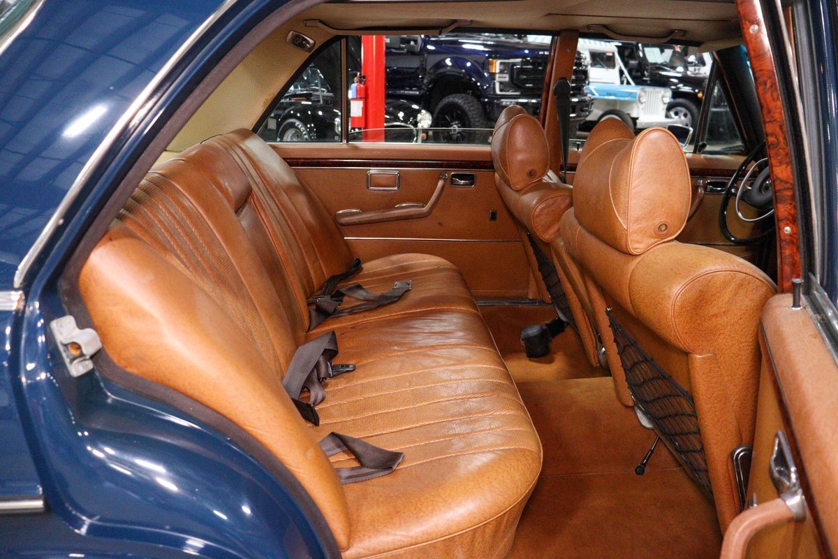 This example is finished in Medium Blue and has the luxury interior. It rides on air suspension and has a sunroof as well. The 300 SEL's exterior boasts a stately and elegant design, characterized by its clean lines, large chrome grille, and the iconic three-pointed star emblem. Its elongated body, enhanced by a long wheelbase, gives it a commanding road presence.