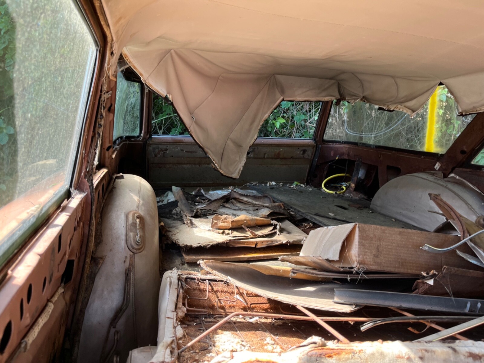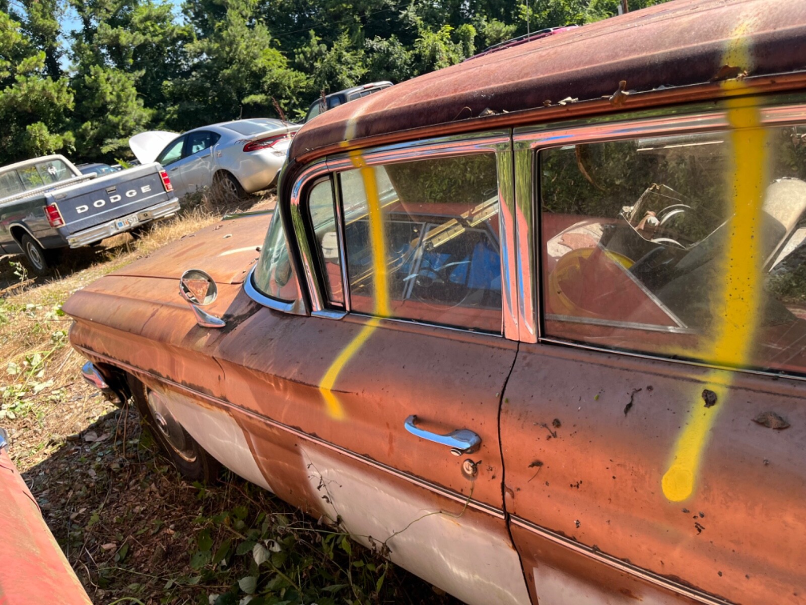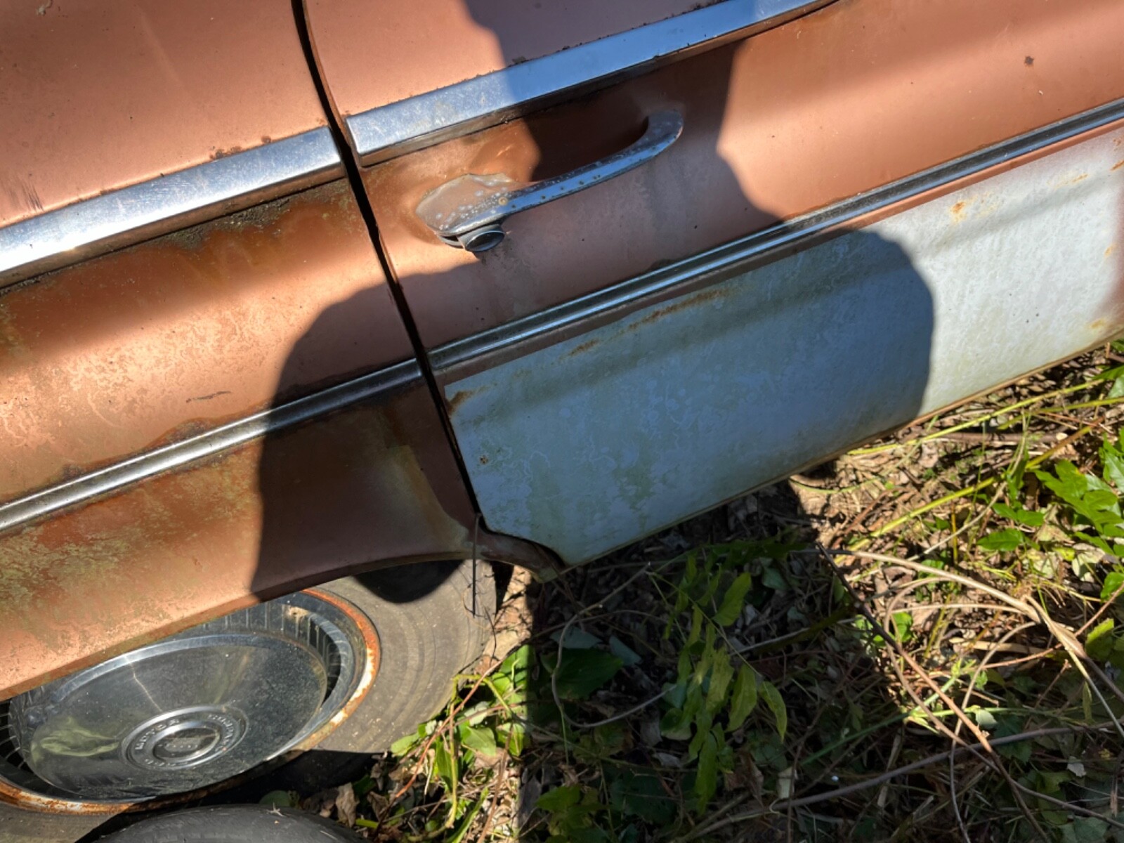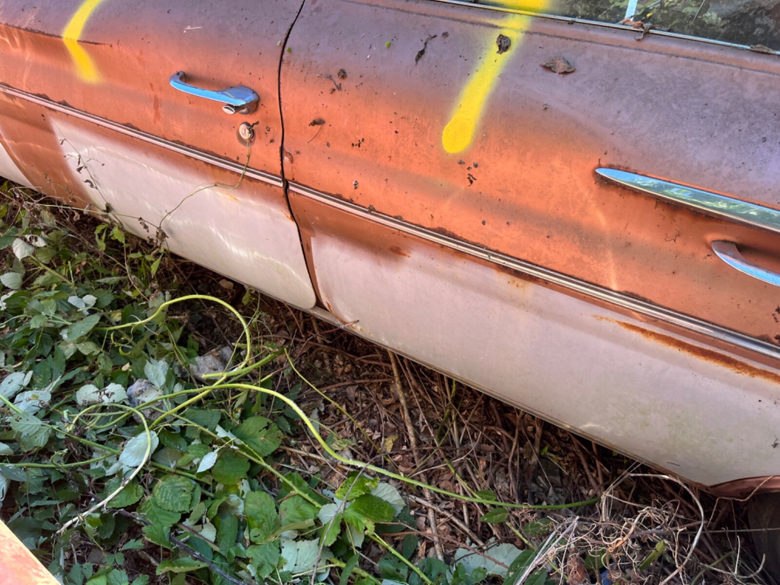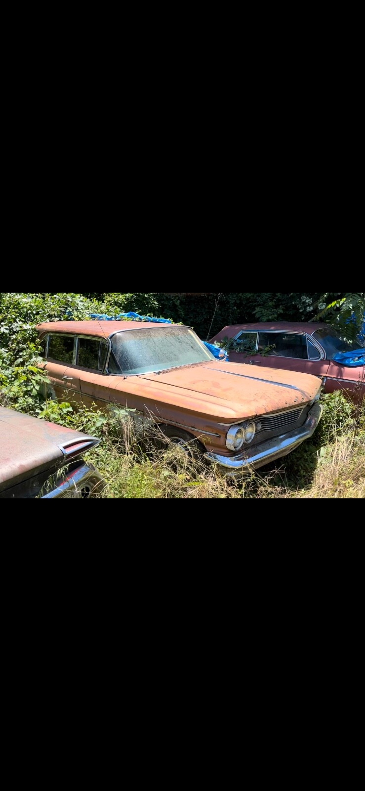 Pretty solid Pontiac Safari wagon. Mostly surface rust with only minor rust through spots. Frame is solid. Breaks are gone but car will run and drive. Automatic transmission with 389 V8. Seats and headliner are in need of restoration. All instruments on dash work. All glass is solid as are head and tail lights. Trim and lettering is present and chrome is in decent shape. She would make for a great restoration or rat rod. These station wagons are getting hard to find at reasonable prices. Car is in secured lot in Rome, Georgia and kept under tarps.