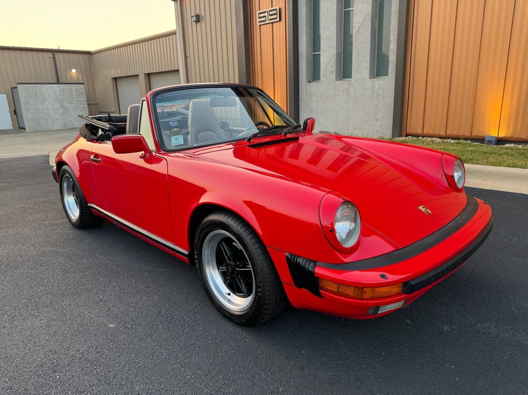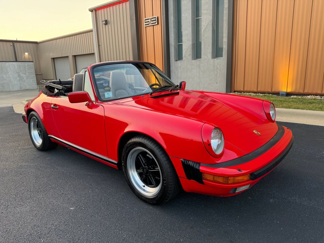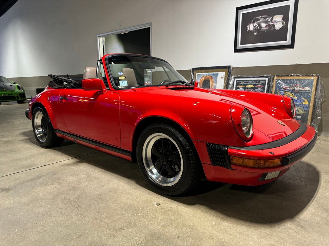 Excellent 1986 911 3.2L Carrera Cabriolet finished in Guards Red on Grey Beige Leather w/Black Top