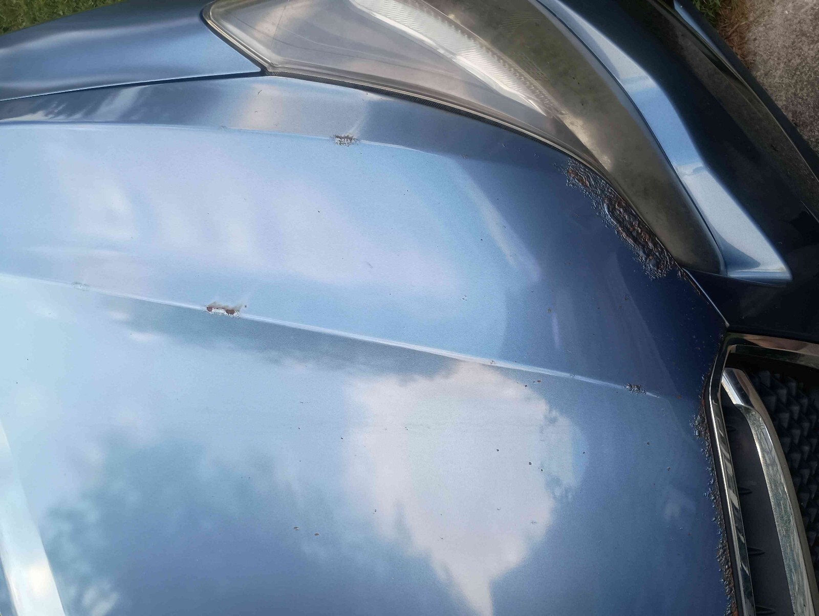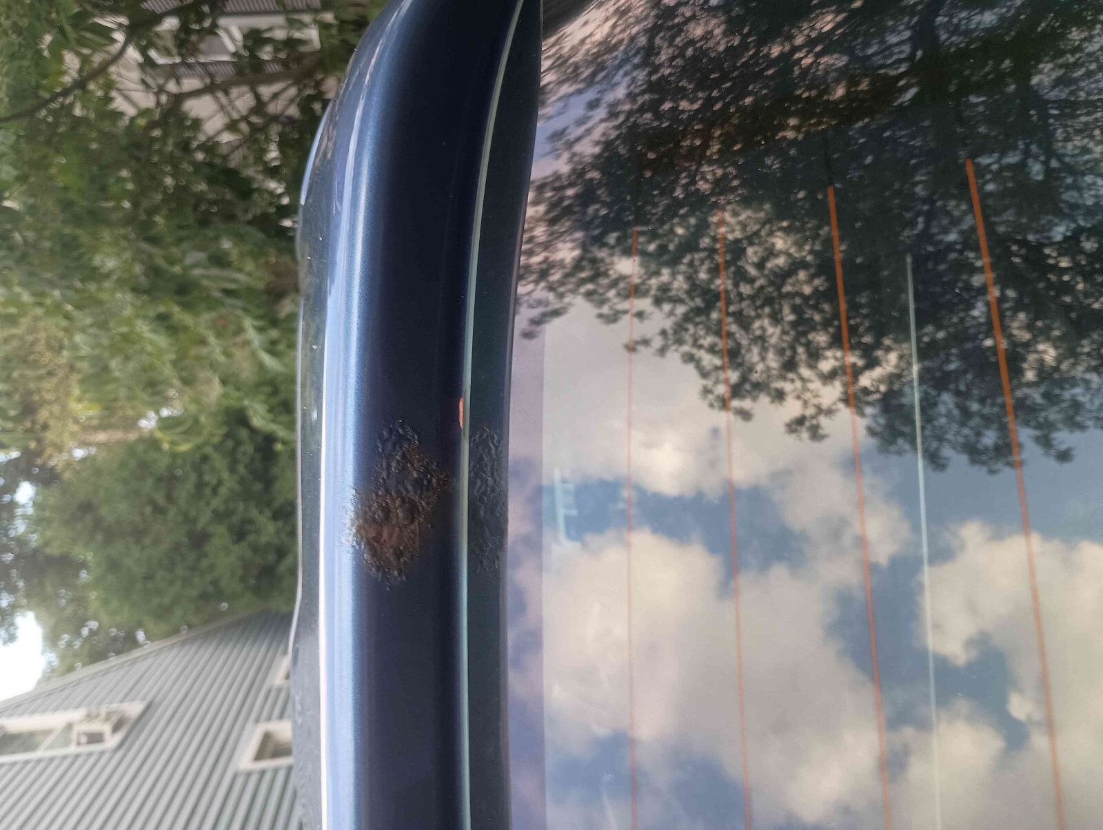 Has rust, but also has also has low mileage. Also, it has a crack in the front bumper. Great gas mileage!
