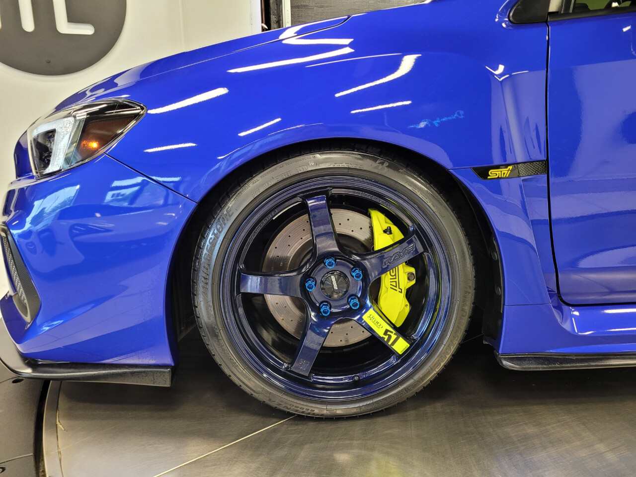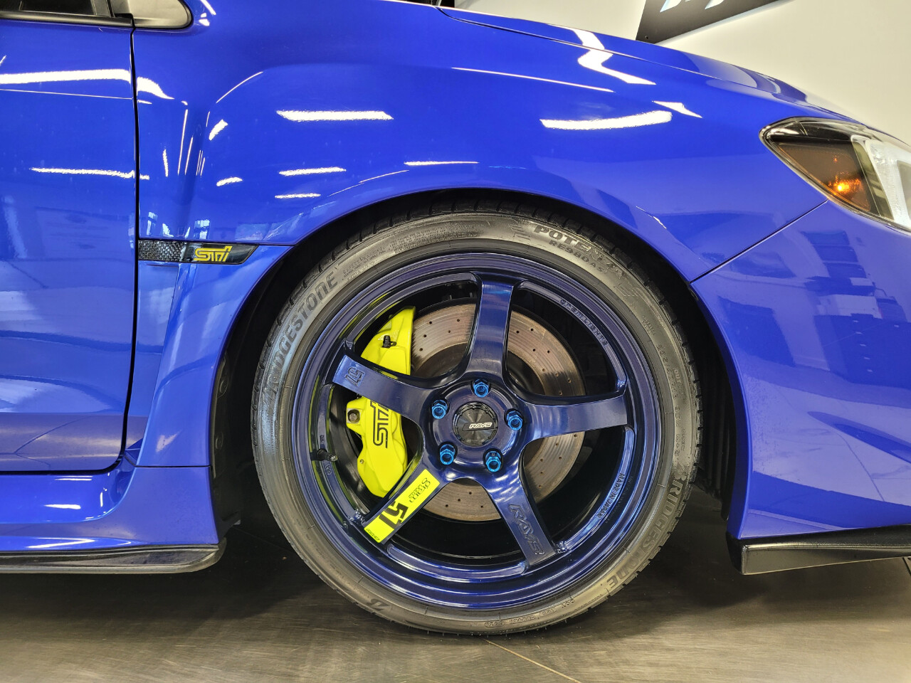 Rays Gram Lights 57CR in eternal blue, Cobb dp, Cobb AP, heated seats, Invidia exhaust, Grimm Speed intercooler piping, IAG oil catch can, and Fortune Auto coilovers.