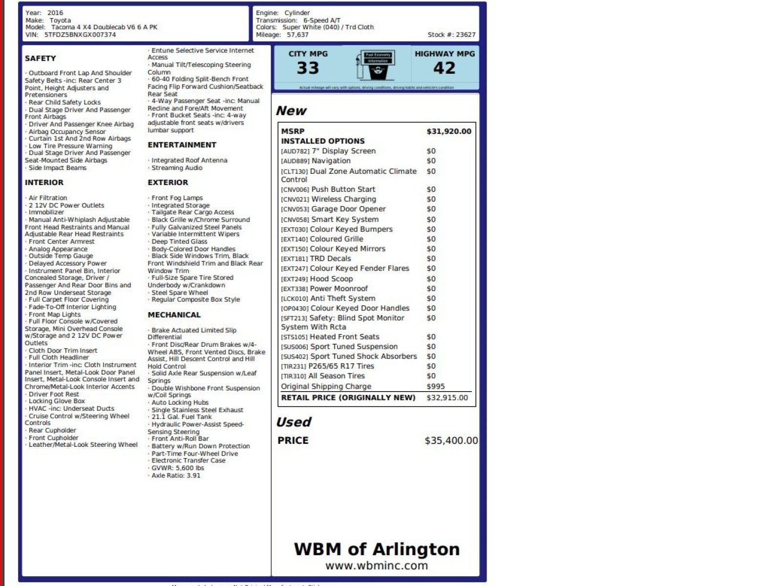 4. Every vehicle sold by WBM of Arlington goes through an 88 point mechanical and a 32 point cosmetic quality control inspection by our team of experts.