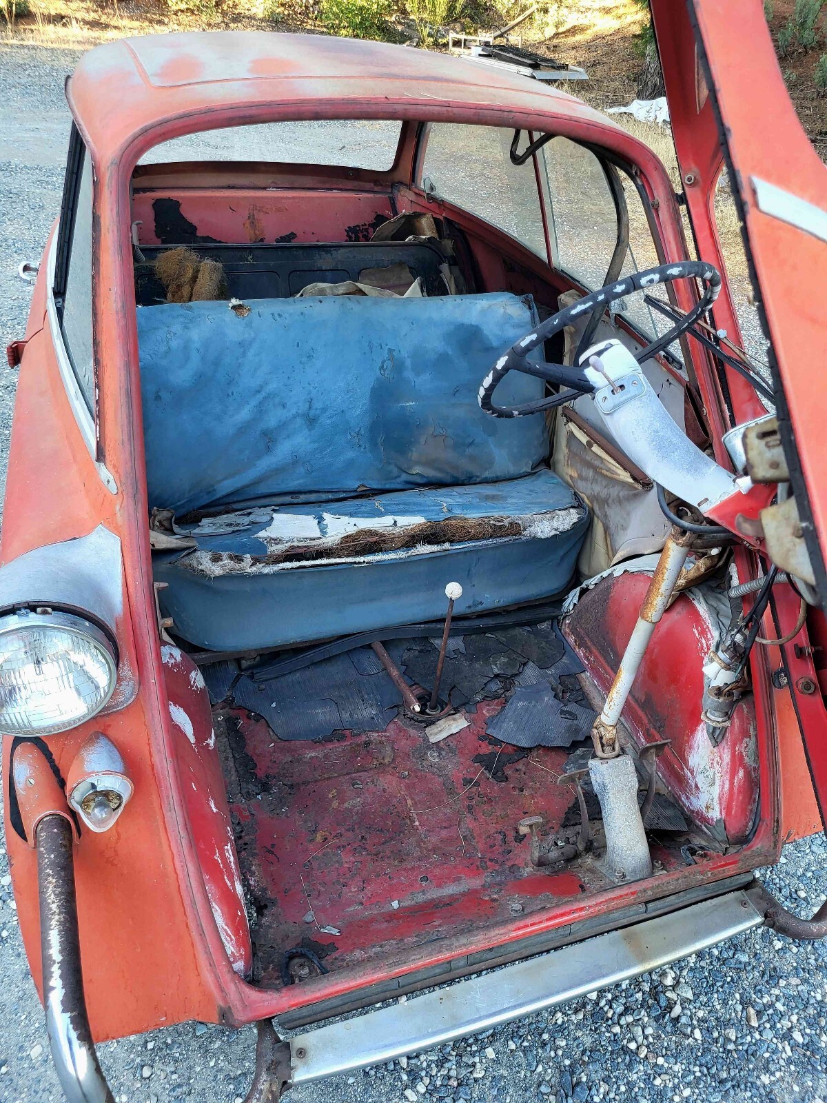 It is a really good 600 project, very complete, original, and solid. Its still in its original paint and while it has some minor rust issues, it is far better than most Isettas and 600s I have come across, even here out West. Very straight car too. I have all the glass for it including a brand new windshield. Also included is a spare rear glass as well as some spare side glass pieces.
