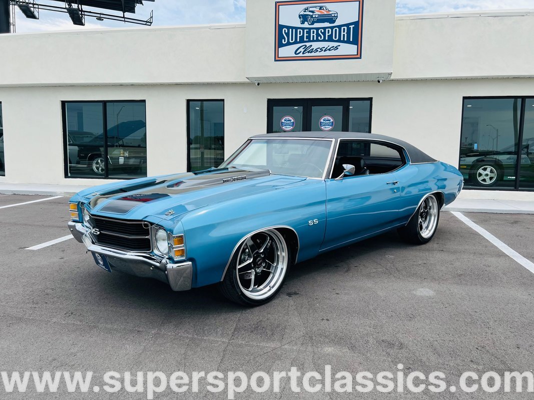 1971 Chevelle, LS3 V8 New Crate BluePrint Racing Engine (with 3yr 50k Parts and Labor Warranty) with 575 Horsepower, 4L60E Automatic Transmission (With Overdrive), Vintage Brand Cold AC, 3.73 Posi-Trac 12 Bolt Rear, Power Steering, 4 Wheel Wilwood 6-Piston Front Calipers 4-Piston Rear Calipers with Slotted and Cross Drilled Rotors, CVF Racing Serpentine Conversion System, All New RTX Dakota Gauges, Aluminum Radiator with Dual Electric Fans, CVF Racing Hood Hinges, Upgraded Scripted Valve Covers, New Fuel Tank with Electric Fuel Pump in Tank and all Braided Fuel Lines, New Jet Coated Headers, New Magnaflow Stainless Steel Exhaust, New Stereo, New Bucket Seat Interior with Center Console and Staple Shifter, New RideTech Front and Rear Coilover Suspension, New Ridetech Upper and Lower Tubular Control Arms Front and Rear, New Oversized RideTech Front and Rear Sway bar, RideTech New RideTech Steering Linkage, Detailed Undercarriage with Painted Frame, and New 20" Ridler Wheels with Low Profile Tires!