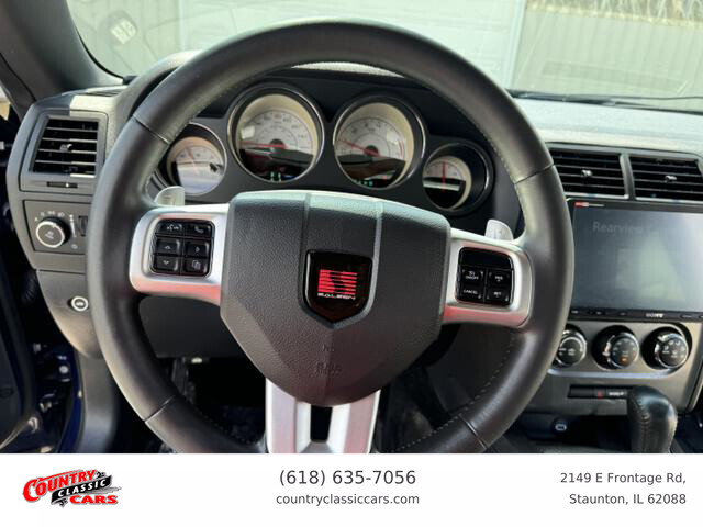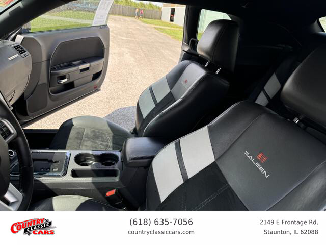 Available now is this rare 2014 Dodge Challenger R/T Saleen 570 White Label finished in a dark blue over black interior. This Challenger is powered by the 5.7L Hemi V8 mated to an automatic transmission. The Dodge is the Saleen White Label with Saleen front brakes, wheels, trim package and features 56k miles with a Clean CarFax report with no accidents and only 1 owner. Excellent driving car and very hard to find with the Saleen package. Saleen serial plate under the hood and the Saleen window sticker.