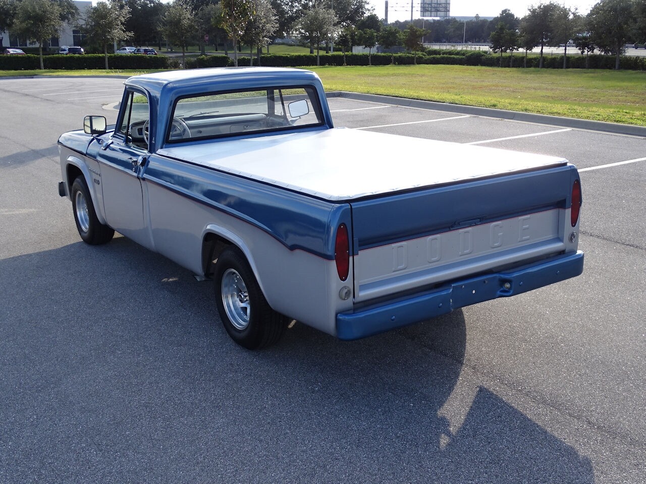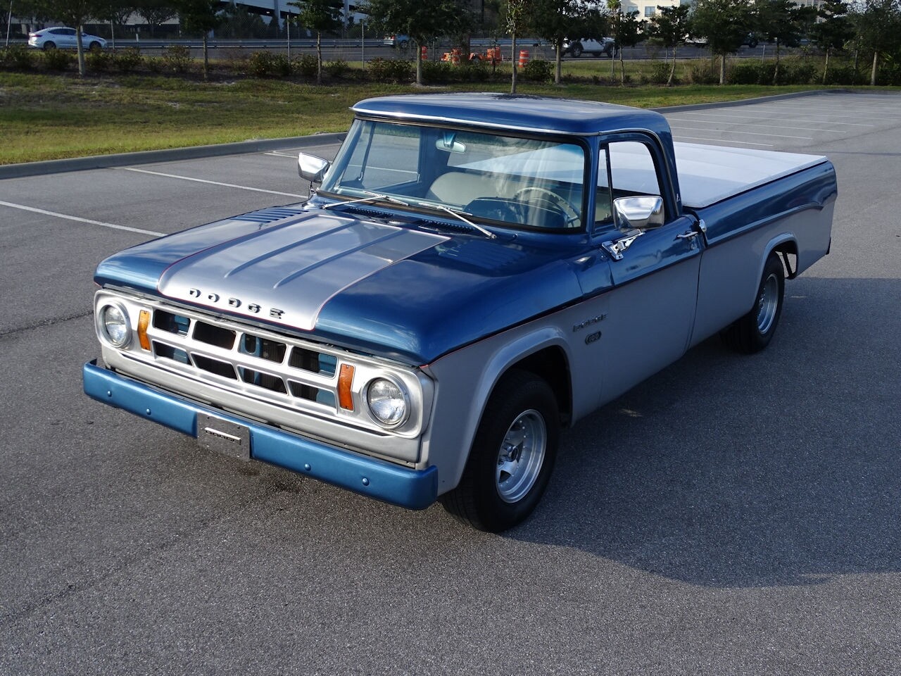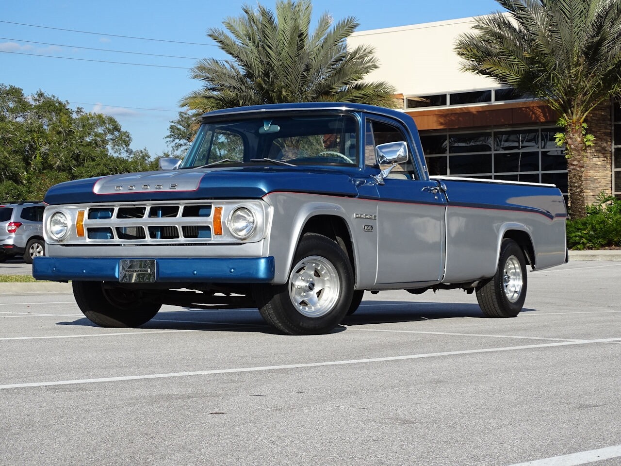 Gateway Classic Cars of Orlando is proud to offer this stout and stunning 1968 Dodge D100. The D100 was Dodge's foray into the full size pickup market. With an array of engine options and bed lengths the D100 lineup was well suited for any buyer's needs. This 1968 is configured with the medium length 8 ft bed and a regular cab. The 2020 paint job is a custom 2 tone scheme of silver and blue that really accentuates the truck's sculpted body lines. The bed has a vinyl cover that gives the rear of the truck a smooth aerodynamic form. The entire look of this truck is tied together with an attractive stance thanks to the American Racing 15 inch aluminum wheels. Under the hood is a 318 V8 and is paired with an old school column shift 3 speed manual. Just imagine the things you can tow with this truck! Recent work done by the owner includes new tires, new shocks, new brakes, new clutch, new radiator and more. If you're looking for a sharp classic truck to enjoy, this is the one you want to own! Options include AM radio, vinyl interior and aluminum wheels wrapped in radial tires. This is the one you want to own. [ omitted ]. [ omitted ]. [ omitted ].