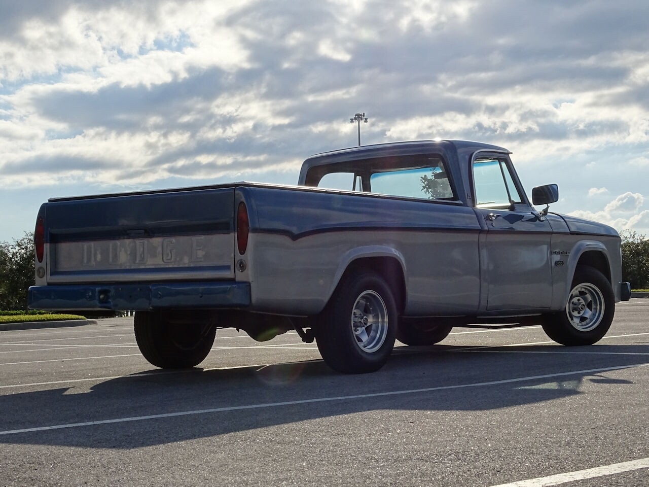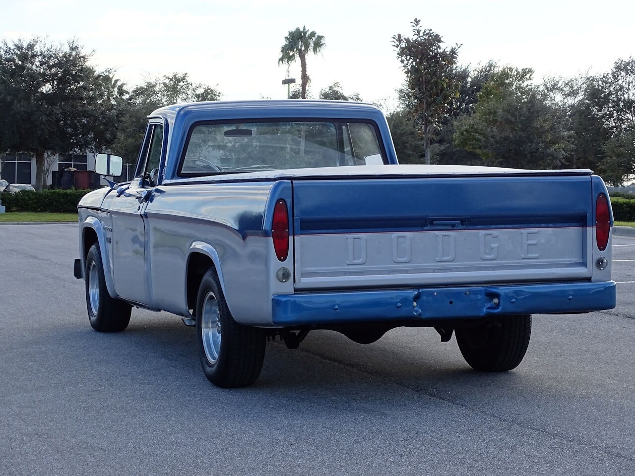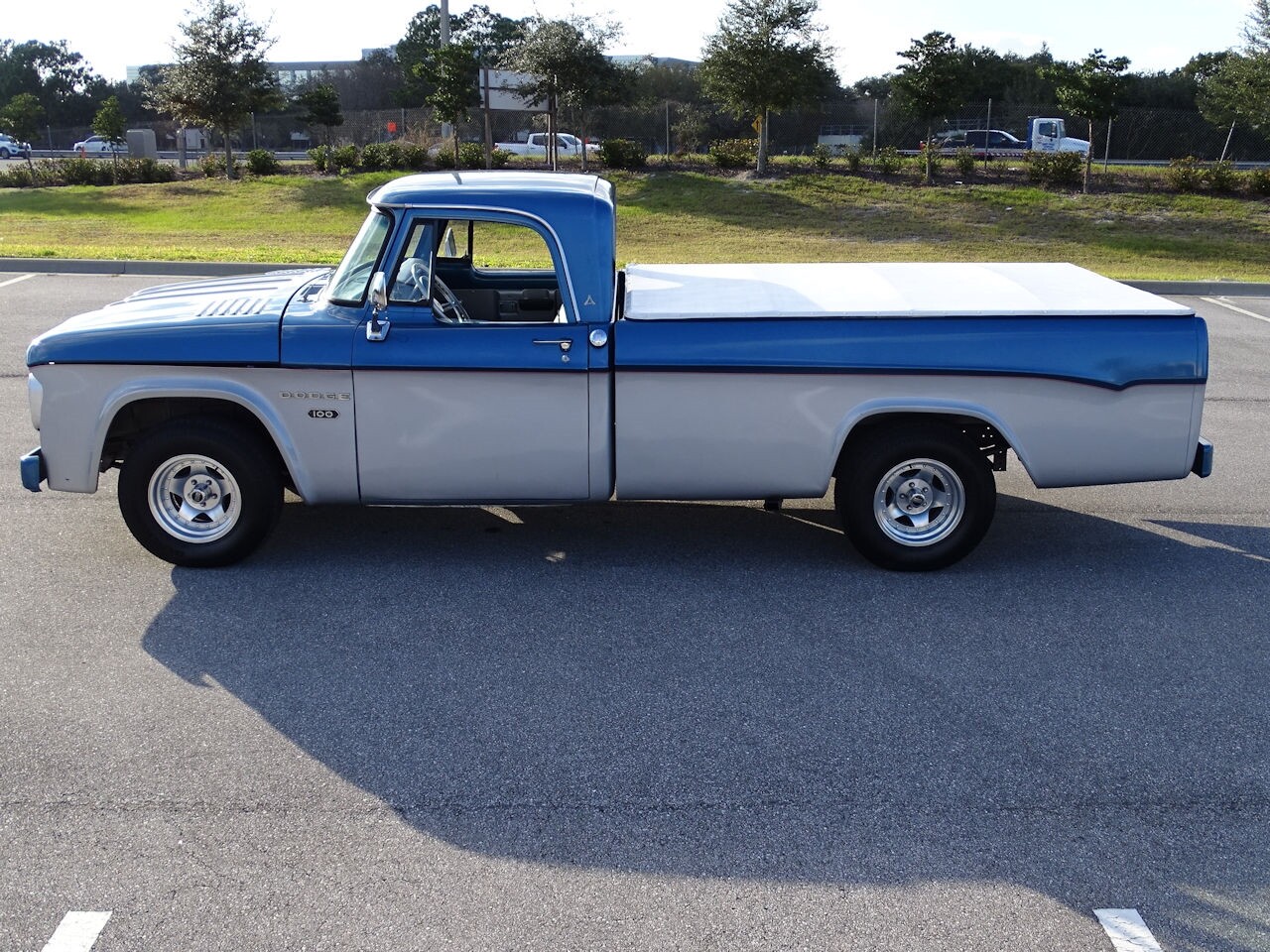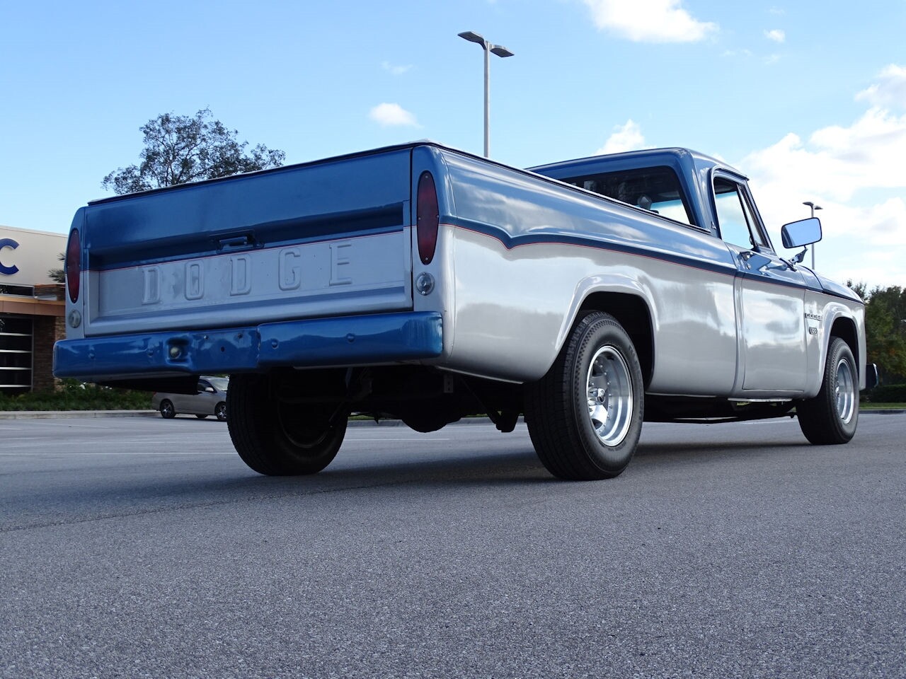 Gateway Classic Cars of Orlando is proud to offer this stout and stunning 1968 Dodge D100. The D100 was Dodge's foray into the full size pickup market. With an array of engine options and bed lengths the D100 lineup was well suited for any buyer's needs. This 1968 is configured with the medium length 8 ft bed and a regular cab. The 2020 paint job is a custom 2 tone scheme of silver and blue that really accentuates the truck's sculpted body lines. The bed has a vinyl cover that gives the rear of the truck a smooth aerodynamic form. The entire look of this truck is tied together with an attractive stance thanks to the American Racing 15 inch aluminum wheels. Under the hood is a 318 V8 and is paired with an old school column shift 3 speed manual. Just imagine the things you can tow with this truck! Recent work done by the owner includes new tires, new shocks, new brakes, new clutch, new radiator and more. If you're looking for a sharp classic truck to enjoy, this is the one you want to own! Options include AM radio, vinyl interior and aluminum wheels wrapped in radial tires. This is the one you want to own. [ omitted ]. [ omitted ]. [ omitted ].