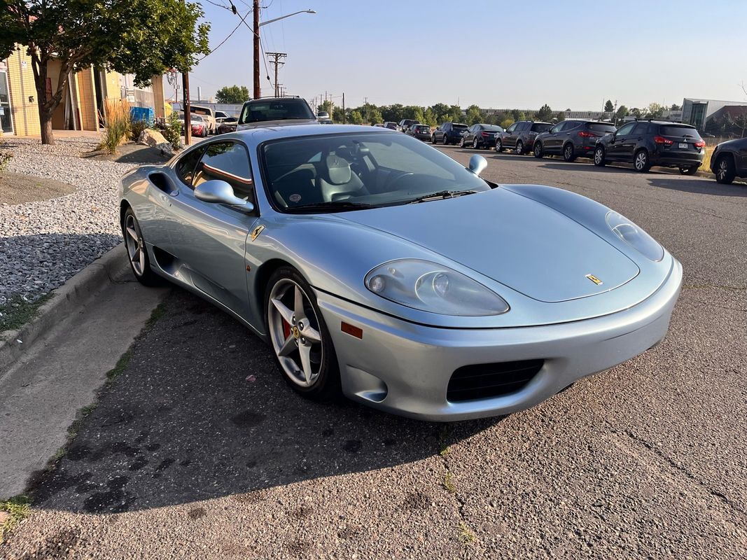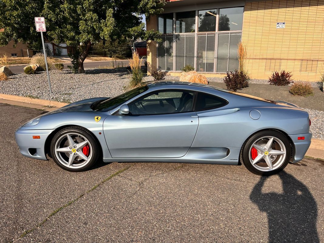 2000 Ferrari 360 Modenacoupe finished in light blue exterior over midnight blue leather interior. This Ferrari 360 only has 26,587 original miles with the factory V8 and F1 gearbox. The body and paint are nearly flawless not one door ding and no chips in the paint. This Ferrari has the Ferrari shields on the fender and is very stock. The interior is in very nice condition. All the power seats. Power windows are all in working condition and does not have the sticky buttons like you typically find in most all Ferraris. These cars have done nothing but go up in value over the past several years and will continue to do so, as the Ferrari 360 is, very desirable anda very fun car to drive. Call Weisco motorcars for additional information or to schedule an appointment time to see the vehicle in person.
