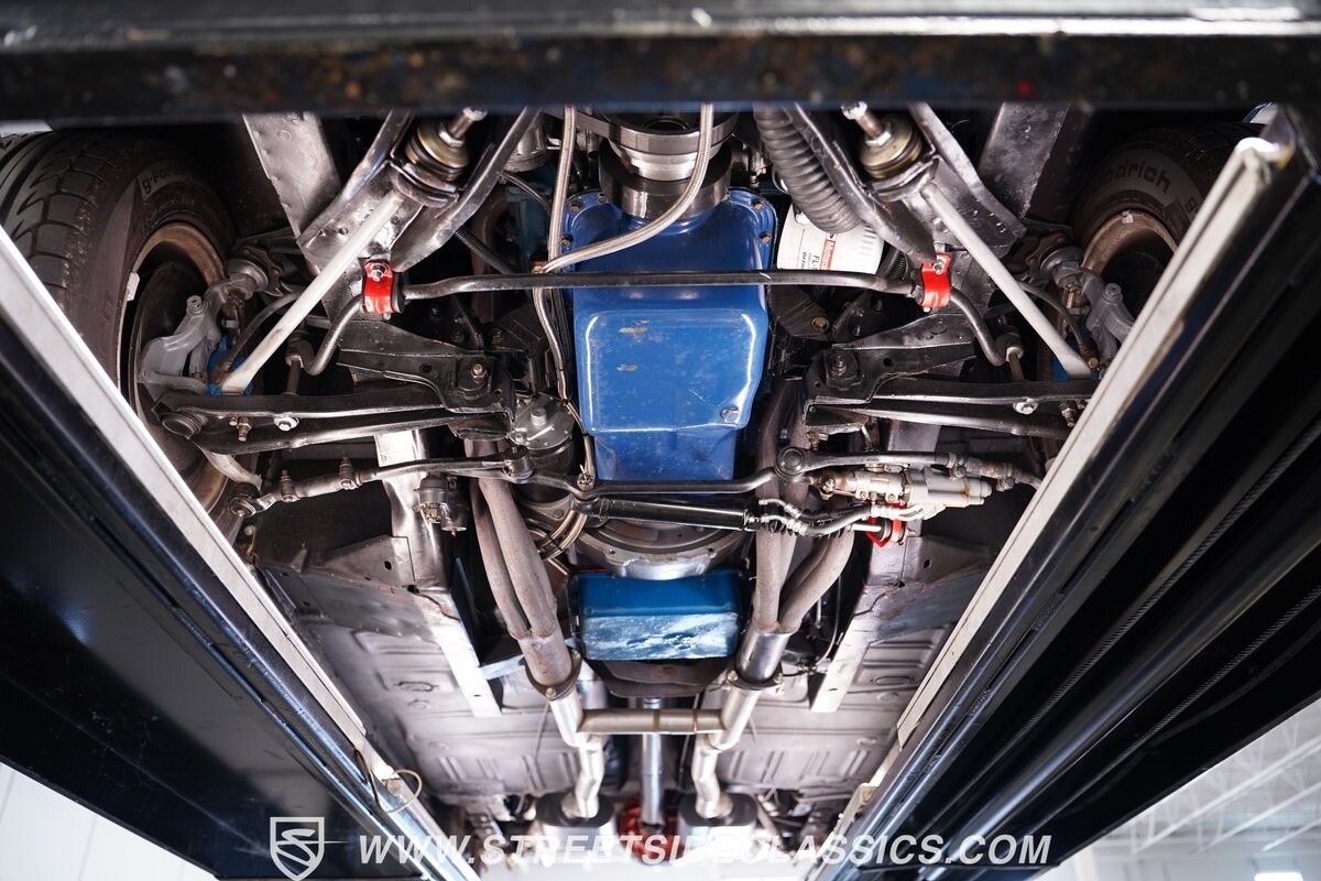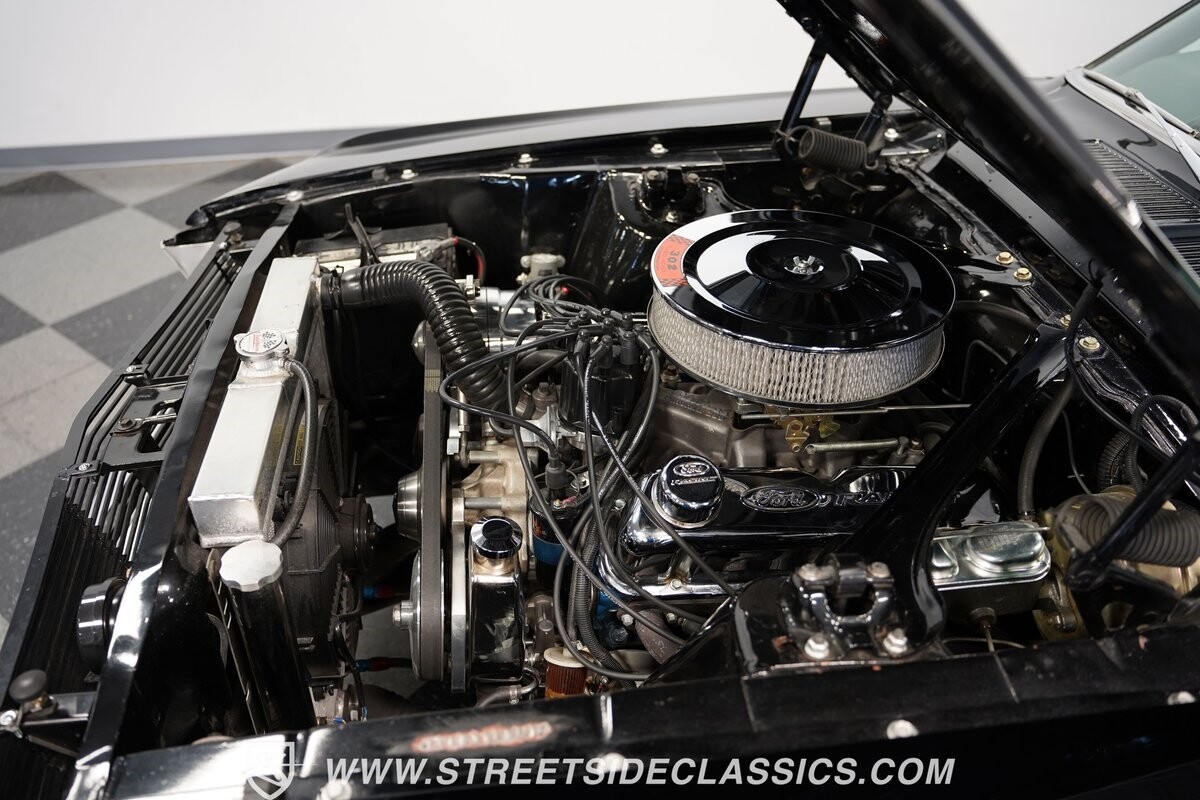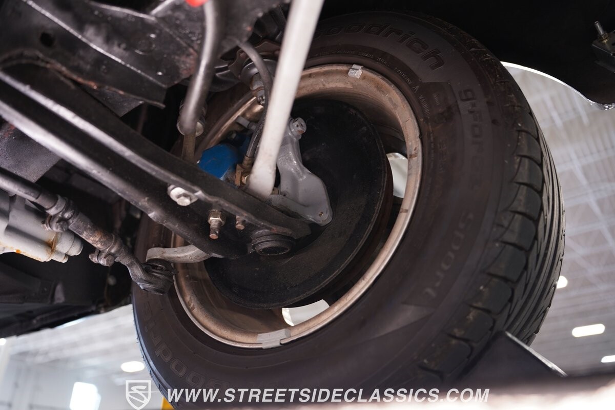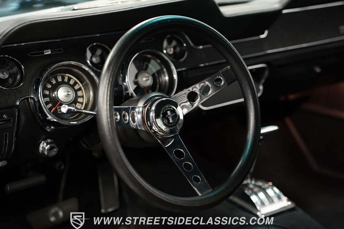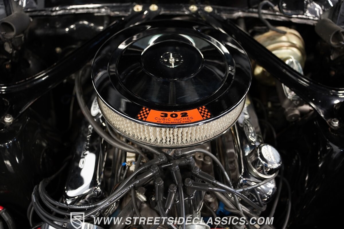 Everyone knows that if Steven McQueen was going to be a contender against the Charger R/T, he needed more power, and this motor takes that idea to heart. It has the mighty 302 cubic-inch V8 and upgrades it further with an Edelbrock four-barrel carburetor, an Edelbrock intake, and long tube headers feeding the dual exhaust and Flowmaster mufflers. There are also suitable supporting components like a serpentine belt system, upgraded pulleys, polished Ford Racing valve covers, and a Champion aluminum radiator with an electric fan. It's a strong runner that was built to be an all-around solid driver. That means a three-speed automatic transmission, power steering, power brakes, front discs, and the grip of modern BF Goodrich gForce tires.