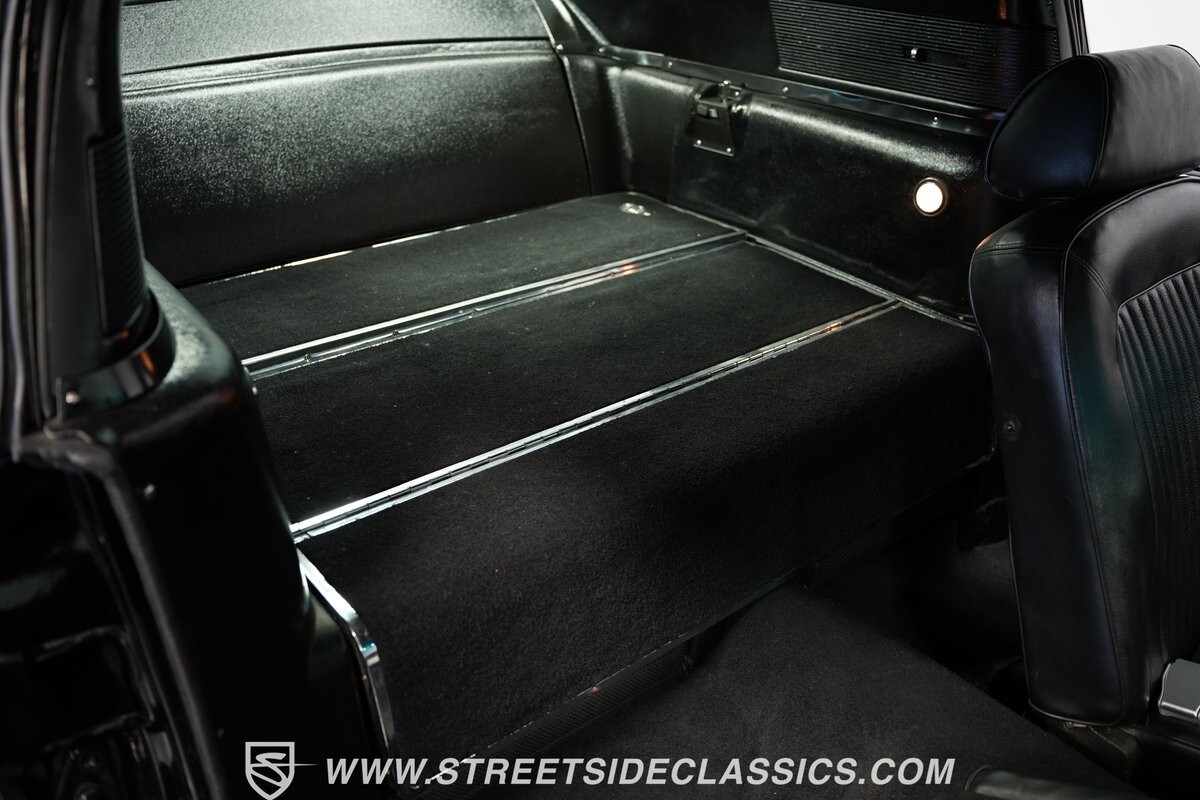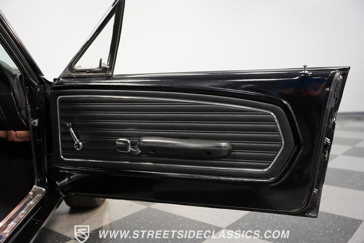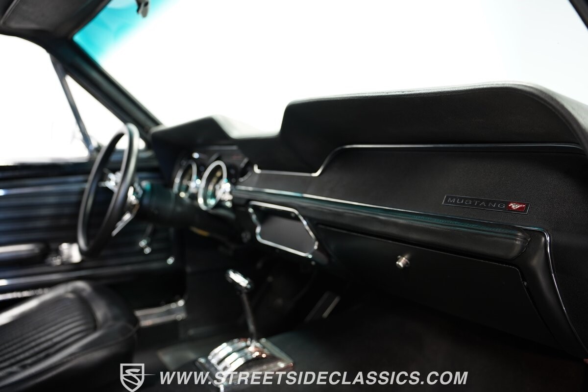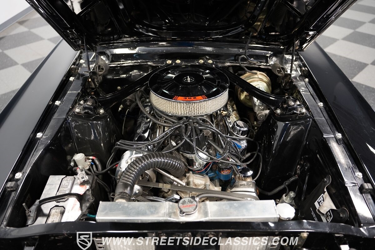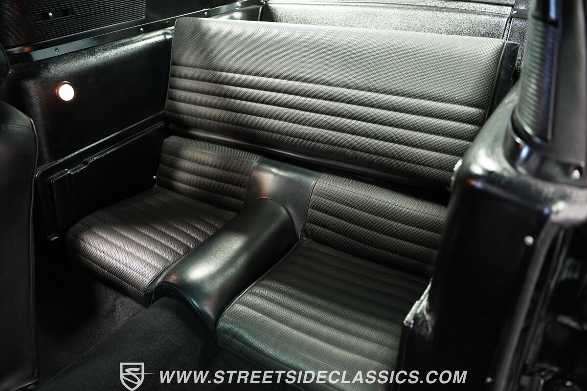 The black interior gives this pony car a full midnight style. It has a clean look with newer carpeting and a smooth dash. You'll even like the details, including the working interior lights and the fold-down rear seat. And you get the right feeling that this was made to be a driver. You have good-looking front bucket seats with headrests, an upgraded steering wheel, and a bright shifter in all this darkness that's a nice place to rest your hand.