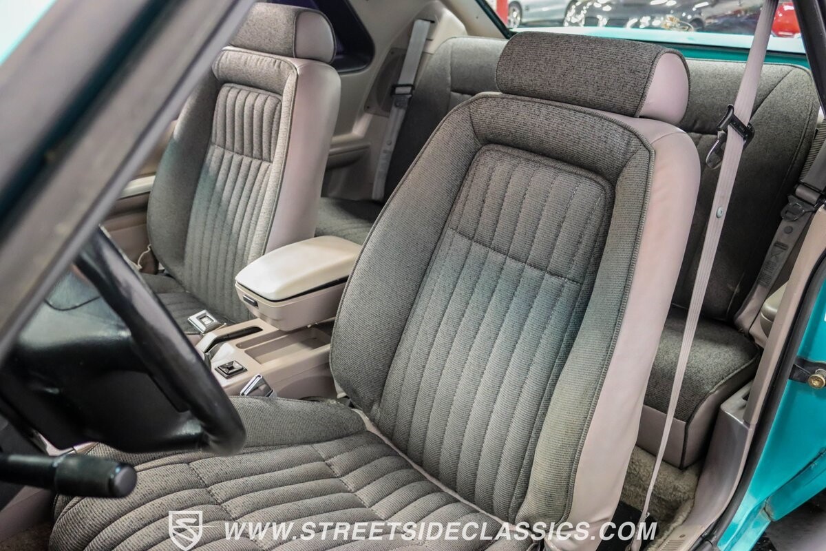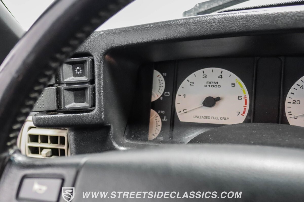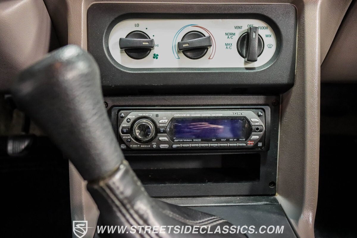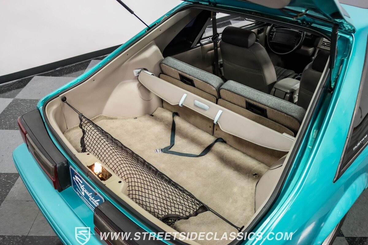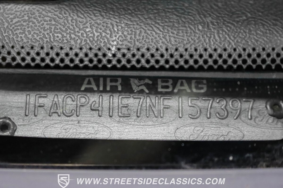 The gray cloth and vinyl interior is in great shape, offering stock bucket seats that provide plenty of bolster support for both the driver and passenger. The door panels, center console and the rear seat are all quite nice, and even the headliner remains taut, further showing off the limited wear accrued with only 54K miles on the clock. Ford's fat steering wheel feels great in your hands, with an airbag added just a couple years before, and the relatively upright greenhouse makes the Mustang very user-friendly in traffic, where it's the ultimate point-and-shoot machine. The factory A/C blows cold, so this is a car you can still drive every day. Other options include sunroof, power windows and locks, cruise control and an upgraded Sony AM/FM/CD/AUX stereo, making this a fairly loaded grand tourer that looks today like it did in 1992. With rear seats that fold down, cargo capacity is impressive and the trunk area shows only minor wear despite being nearly 30 years old. Even the original cargo cover is still in great shape!