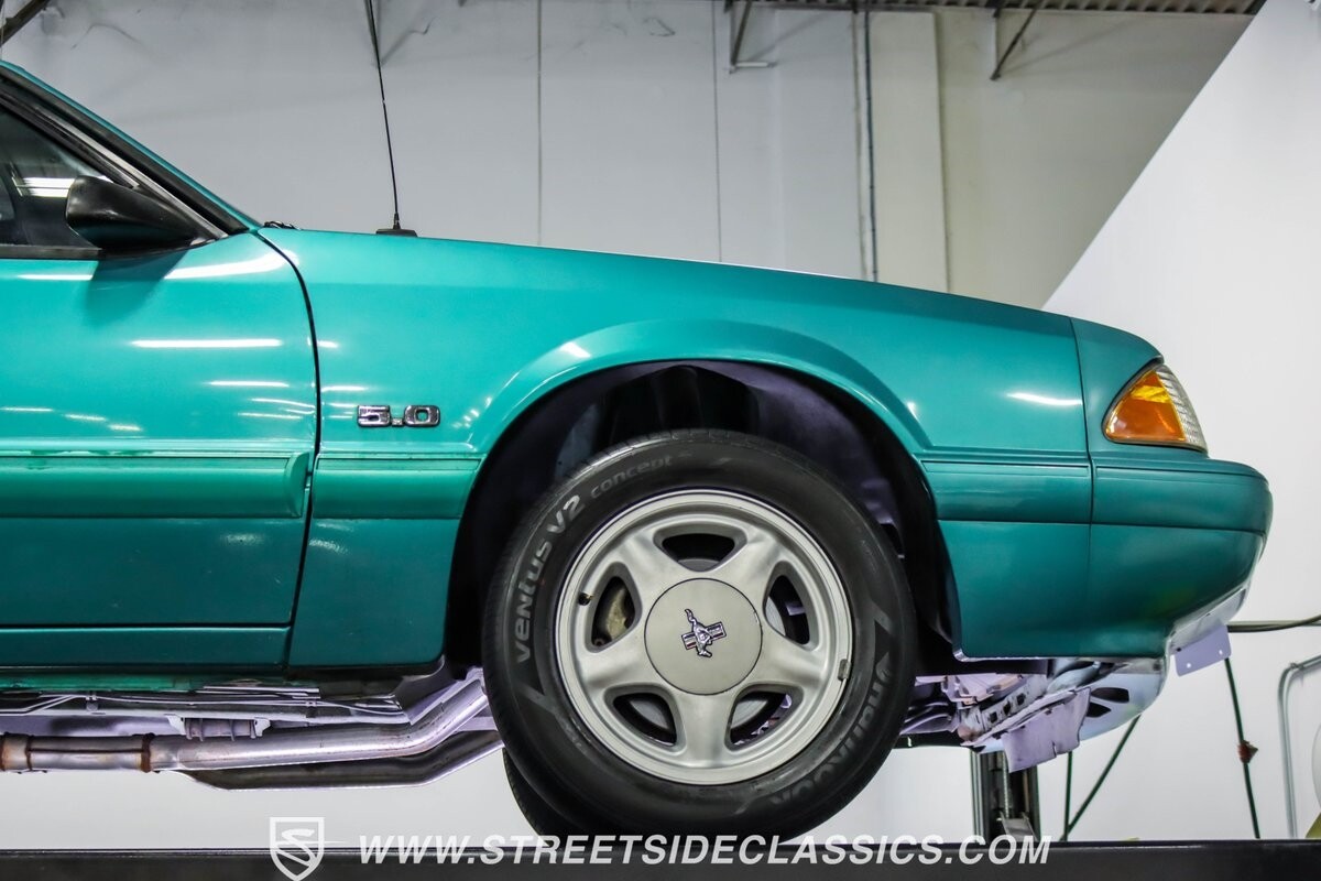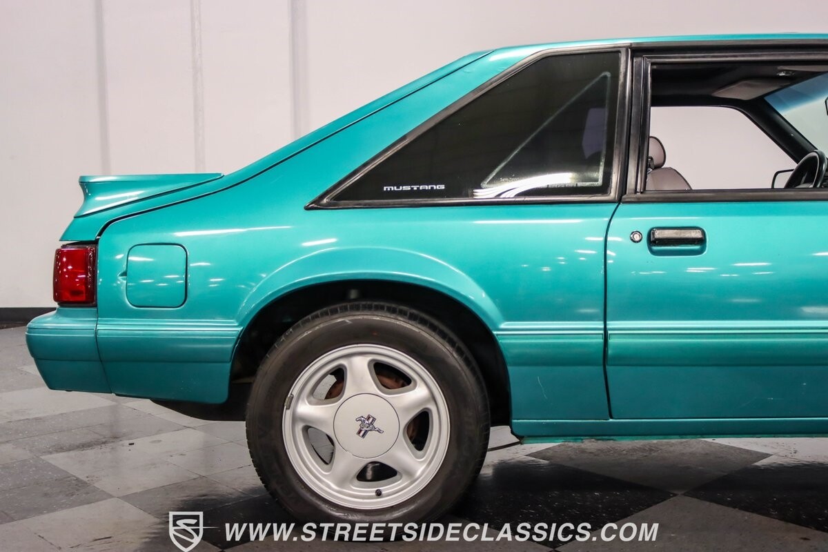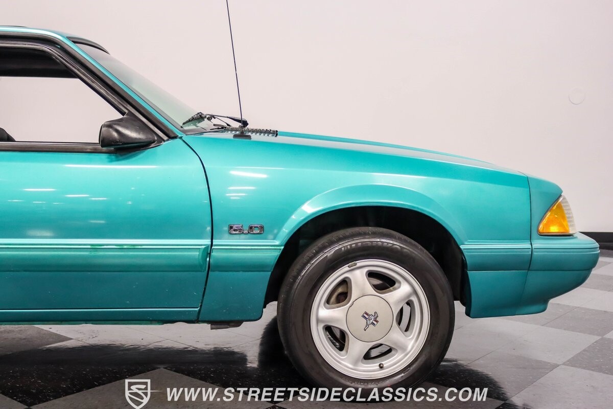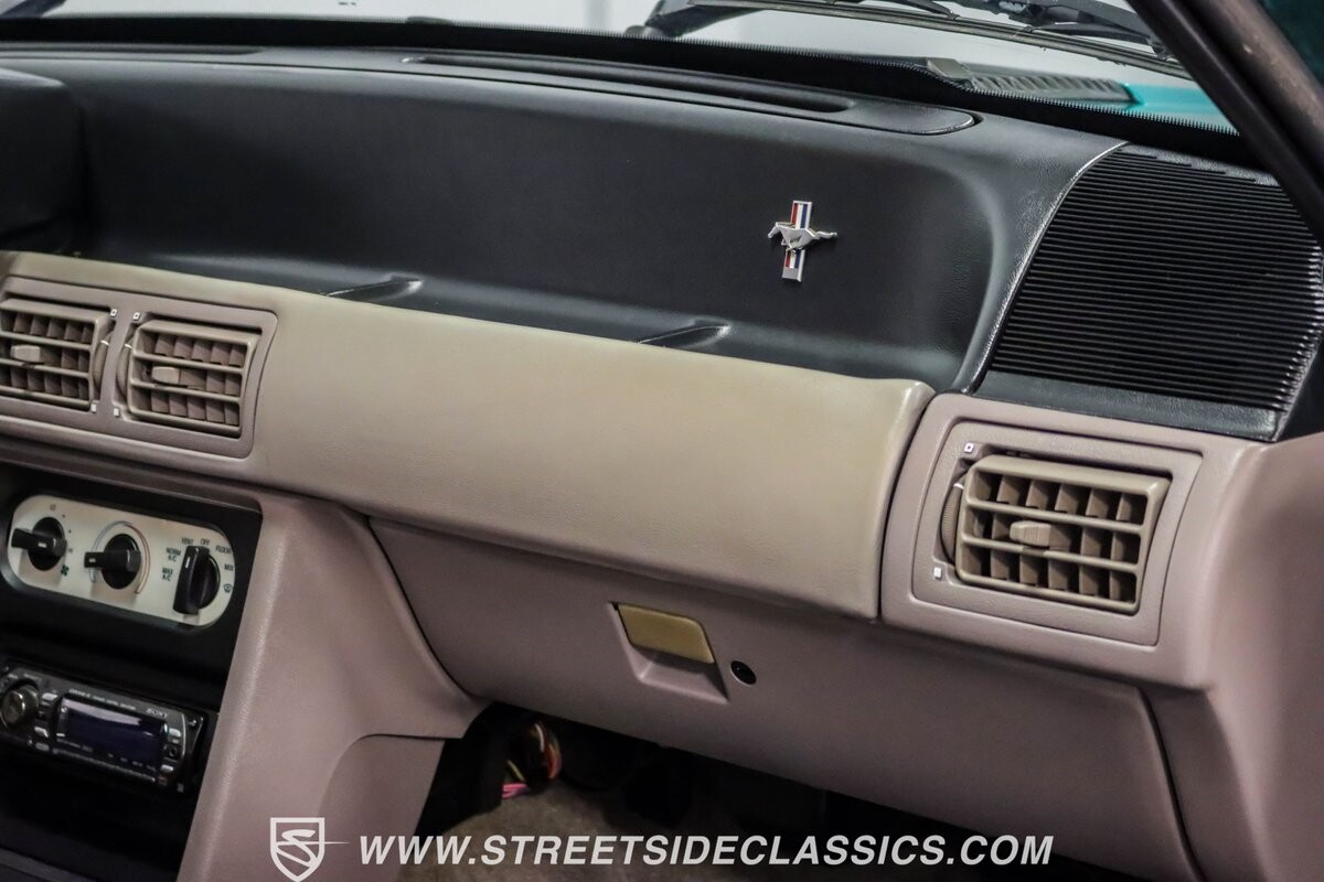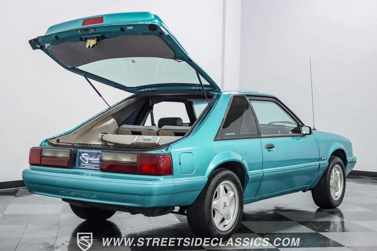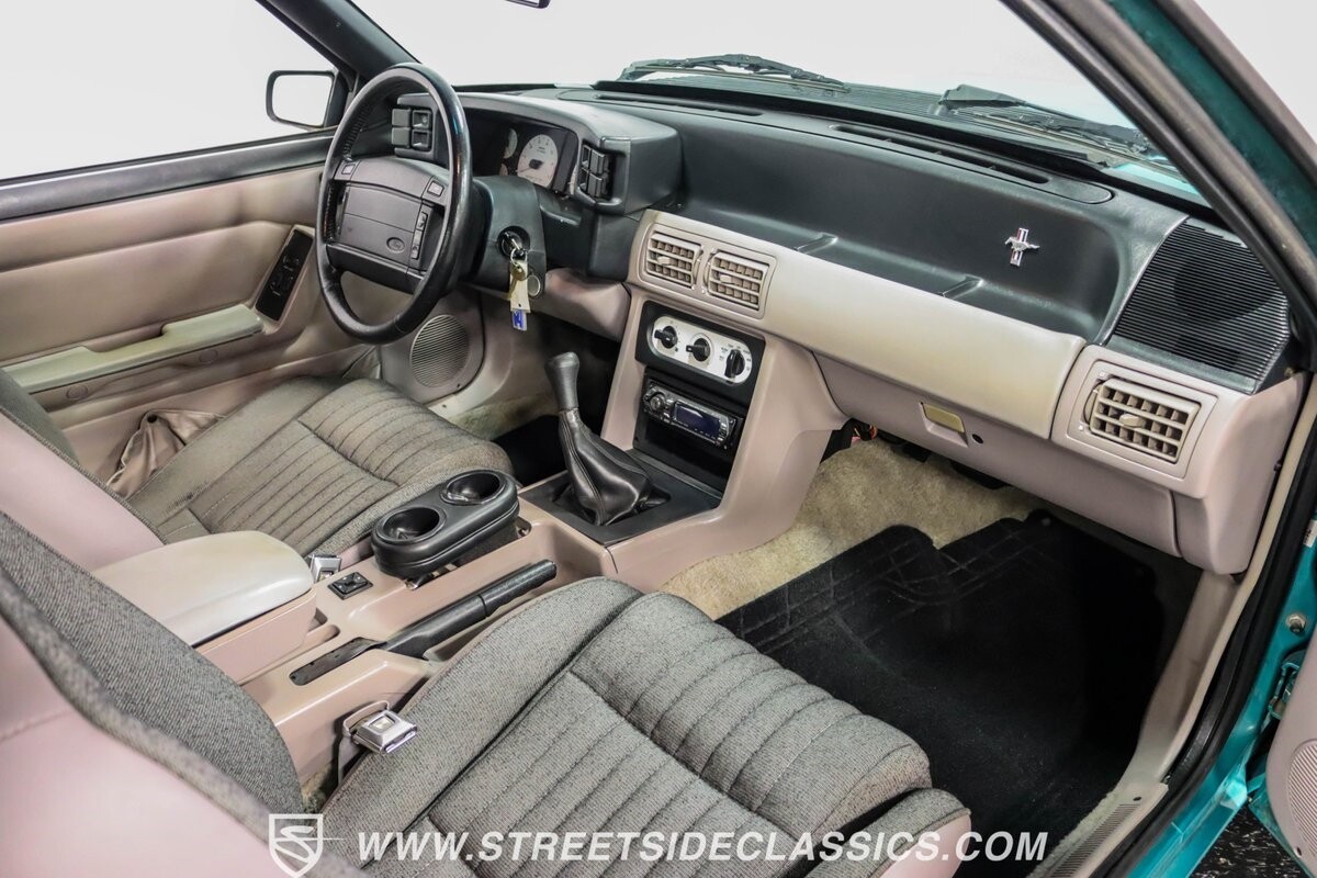The clean lines made the Foxbody hatchback incredibly popular in the early '90s, and everyone knew to look for the 5.0 badges and slick body lines on these beauties. Today these are still able to turn heads and the clean, unmolested lines of this particular LX look as good as ever. The Calypso Green Metallic paint job appears to be original, showing remarkably little wear that is quite frankly not commensurate with its age. Although, with only 54,450 actual miles on the clock, a solid, very clean paint job like this might be expected after all. This Mustang has been pampered and garage kept since new, and the results speak for themselves. It is a rare survivor and they do not get much cleaner than this. If you are looking for a car to upgrade or turn into something amazing, this is what you want to start with. In its current form, it is probably more fun per dollar than most cars.