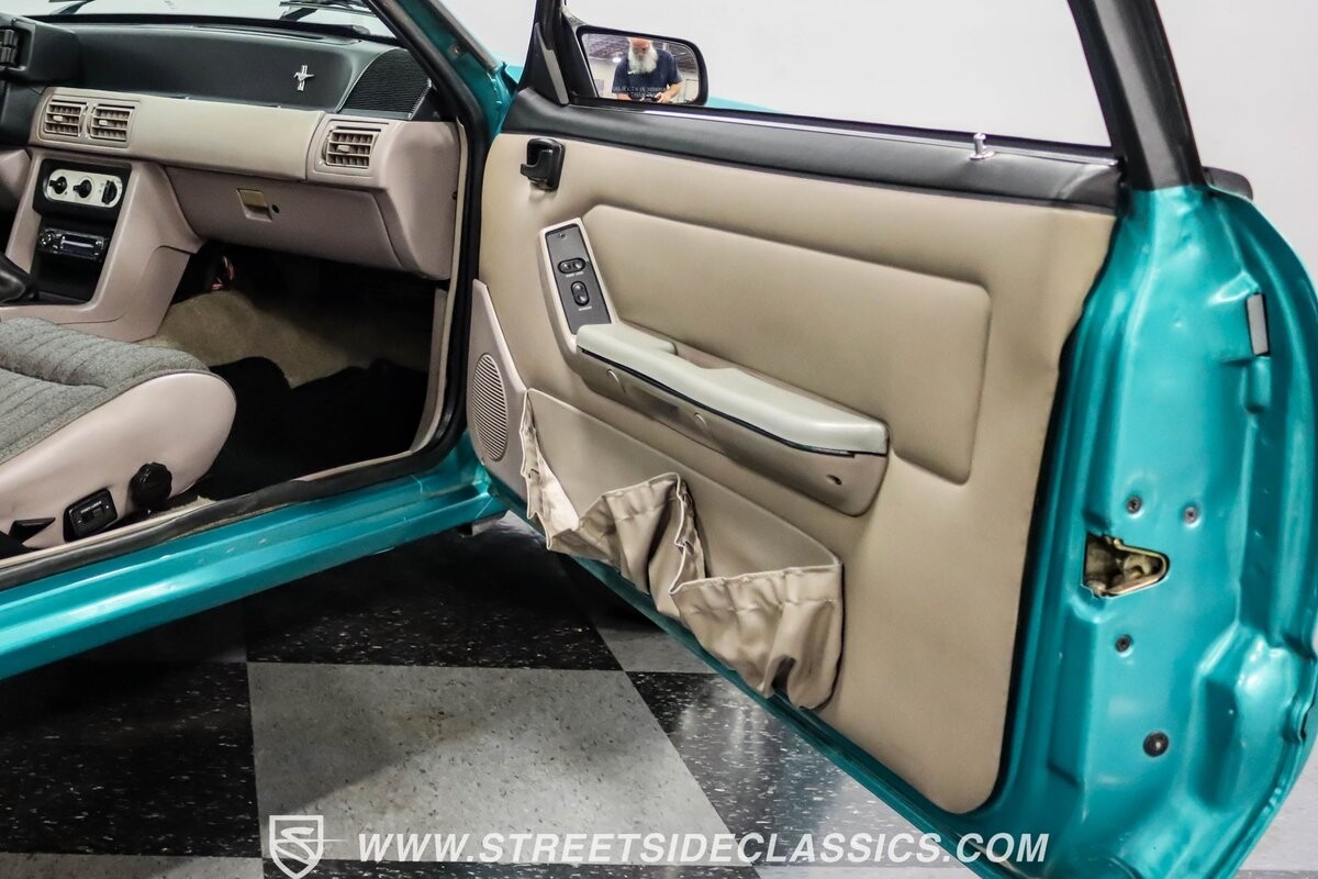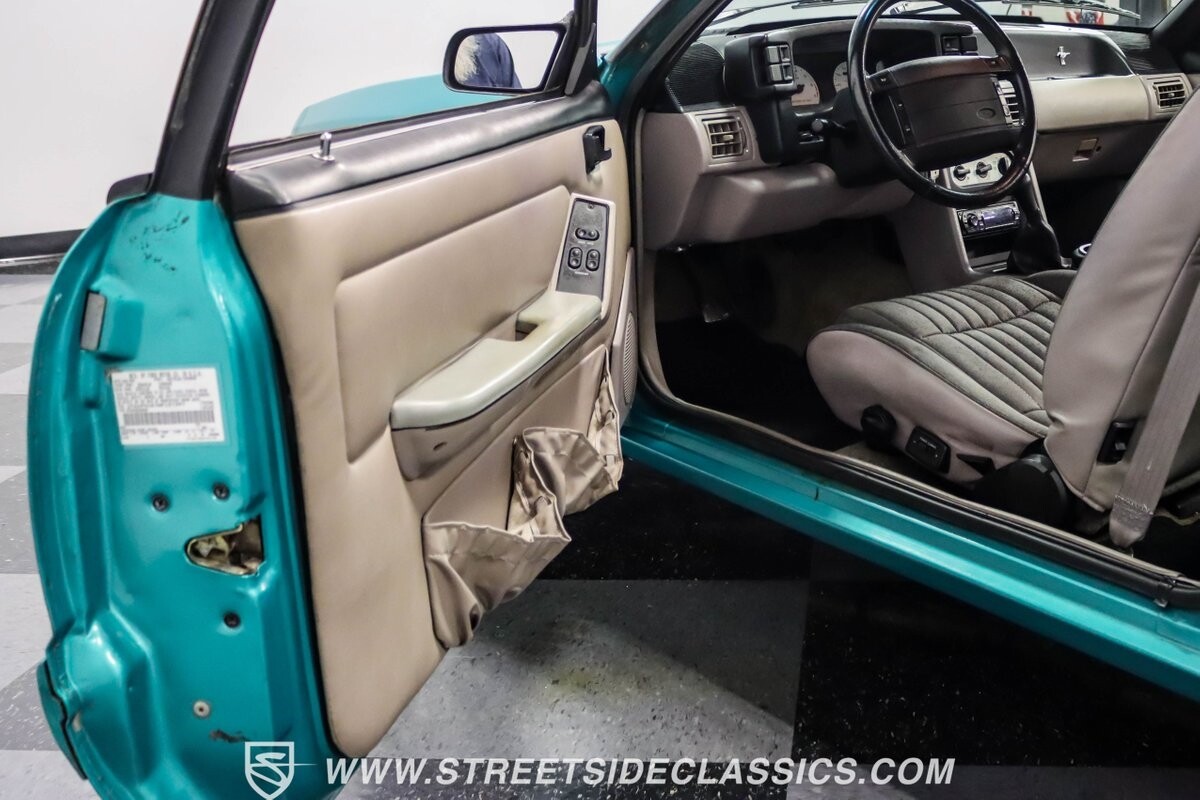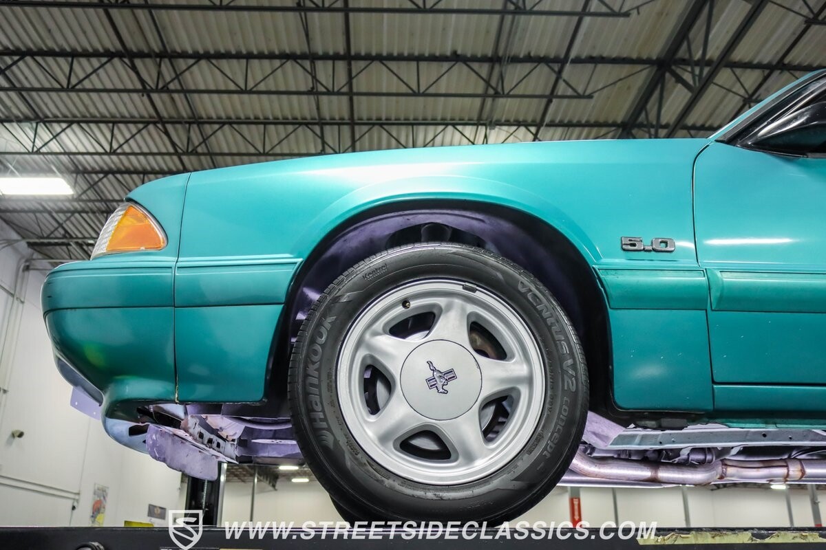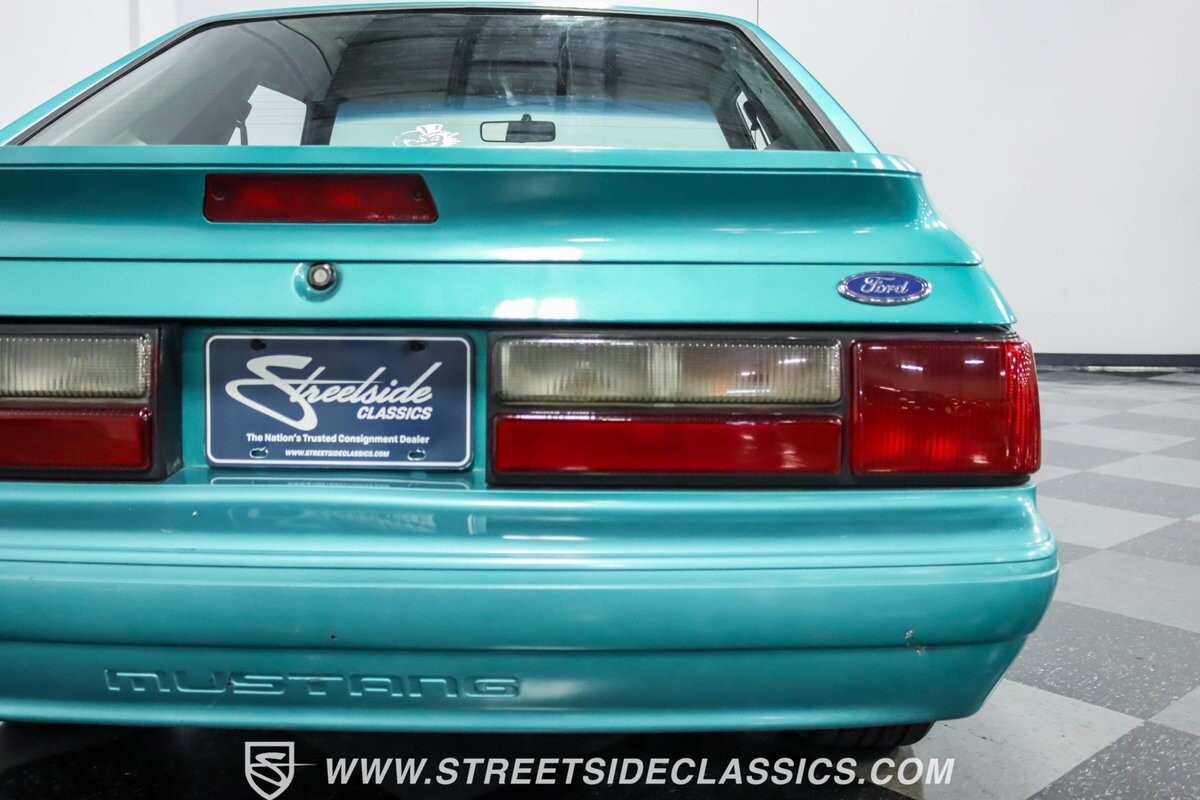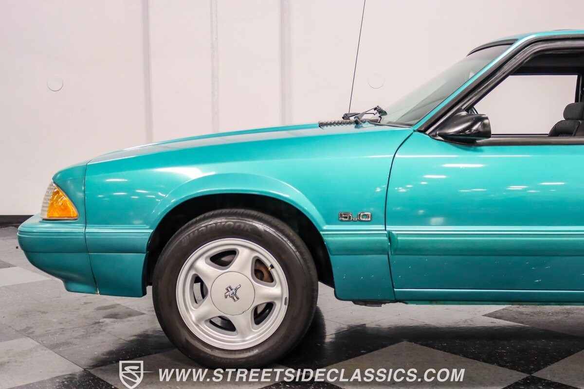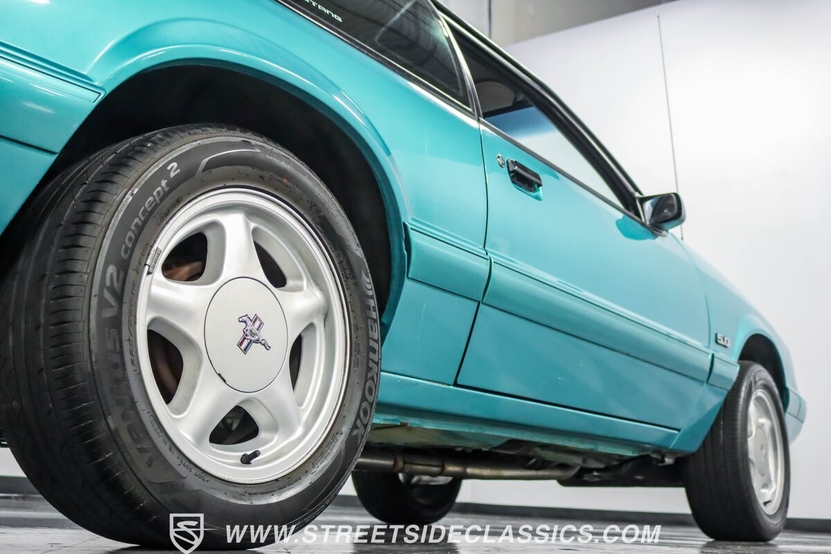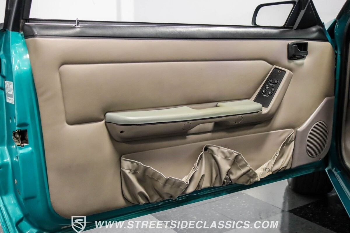 The clean lines made the Foxbody hatchback incredibly popular in the early '90s, and everyone knew to look for the 5.0 badges and slick body lines on these beauties. Today these are still able to turn heads and the clean, unmolested lines of this particular LX look as good as ever. The Calypso Green Metallic paint job appears to be original, showing remarkably little wear that is quite frankly not commensurate with its age. Although, with only 54,450 actual miles on the clock, a solid, very clean paint job like this might be expected after all. This Mustang has been pampered and garage kept since new, and the results speak for themselves. It is a rare survivor and they do not get much cleaner than this. If you are looking for a car to upgrade or turn into something amazing, this is what you want to start with. In its current form, it is probably more fun per dollar than most cars.