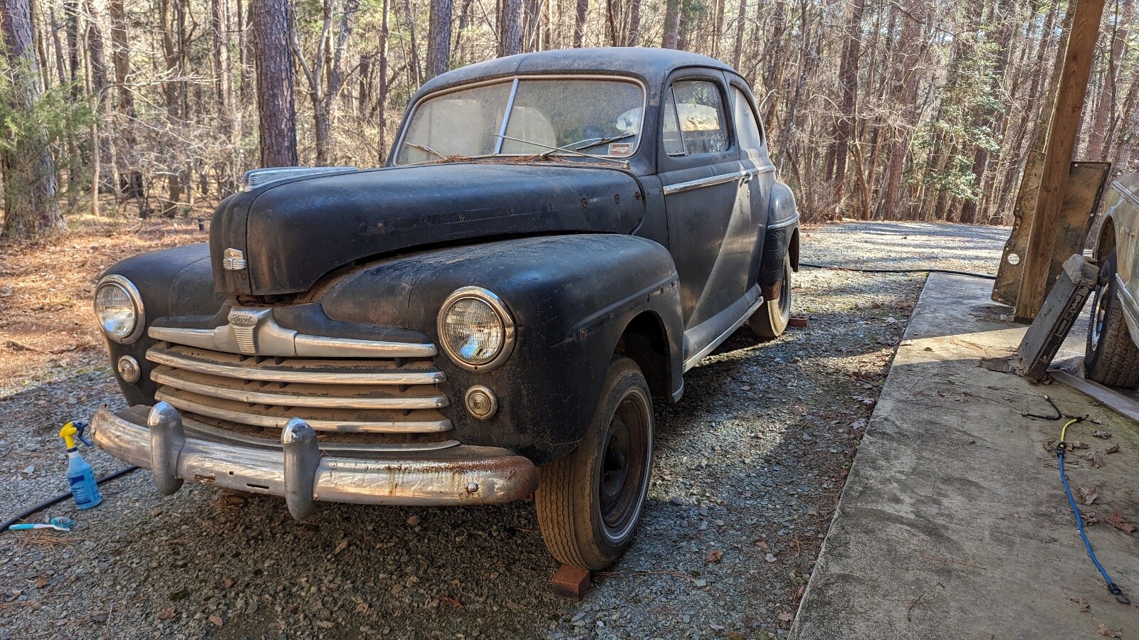 1948 Ford 2 door sedan, VIN 899A-2150142. All parts to complete the car are included in the sale. There is no frame rot and the body panels are in good shape. I have a clean NC title in my name. The engine turns over by hand and the intake and carbs are included.