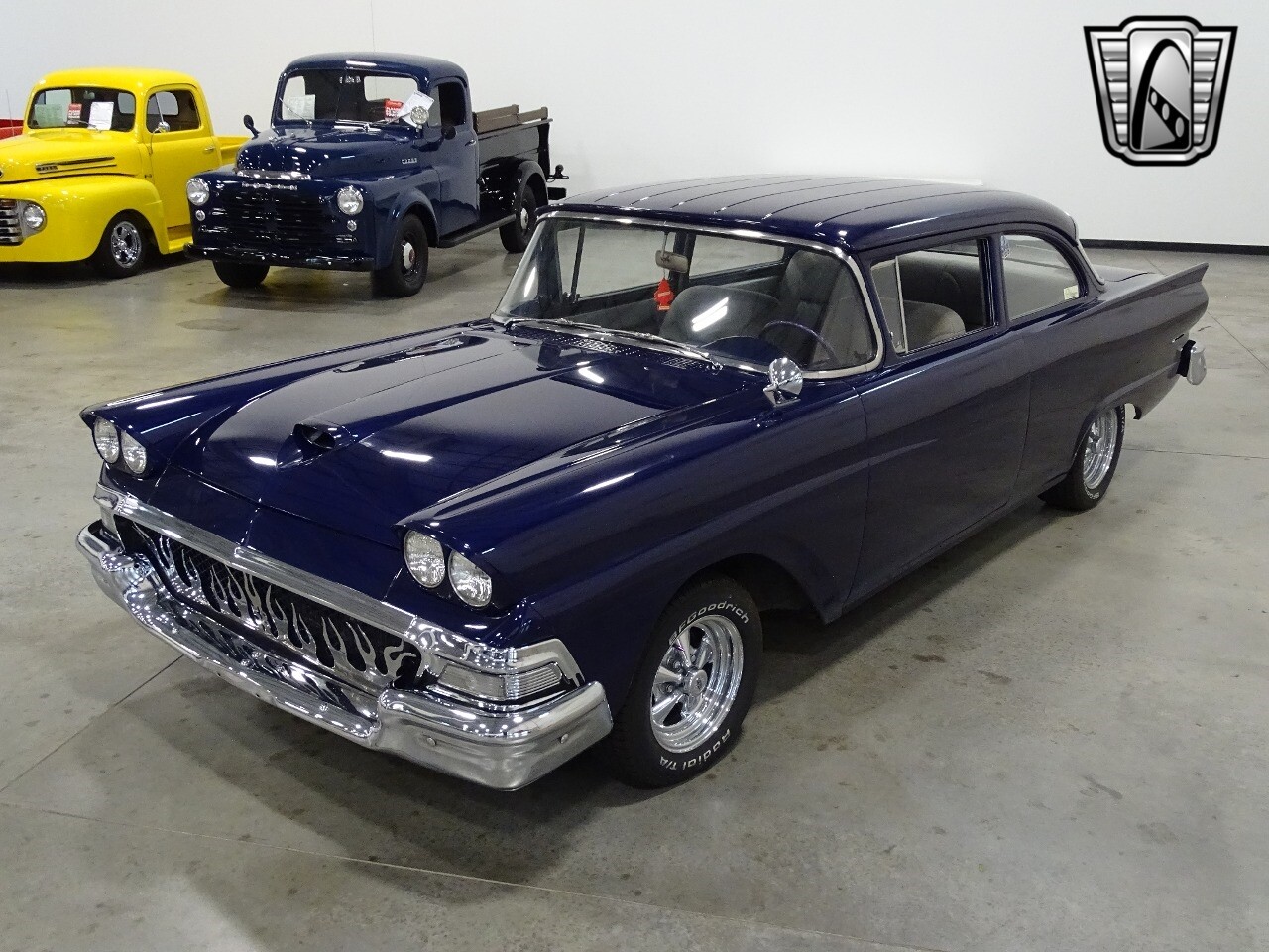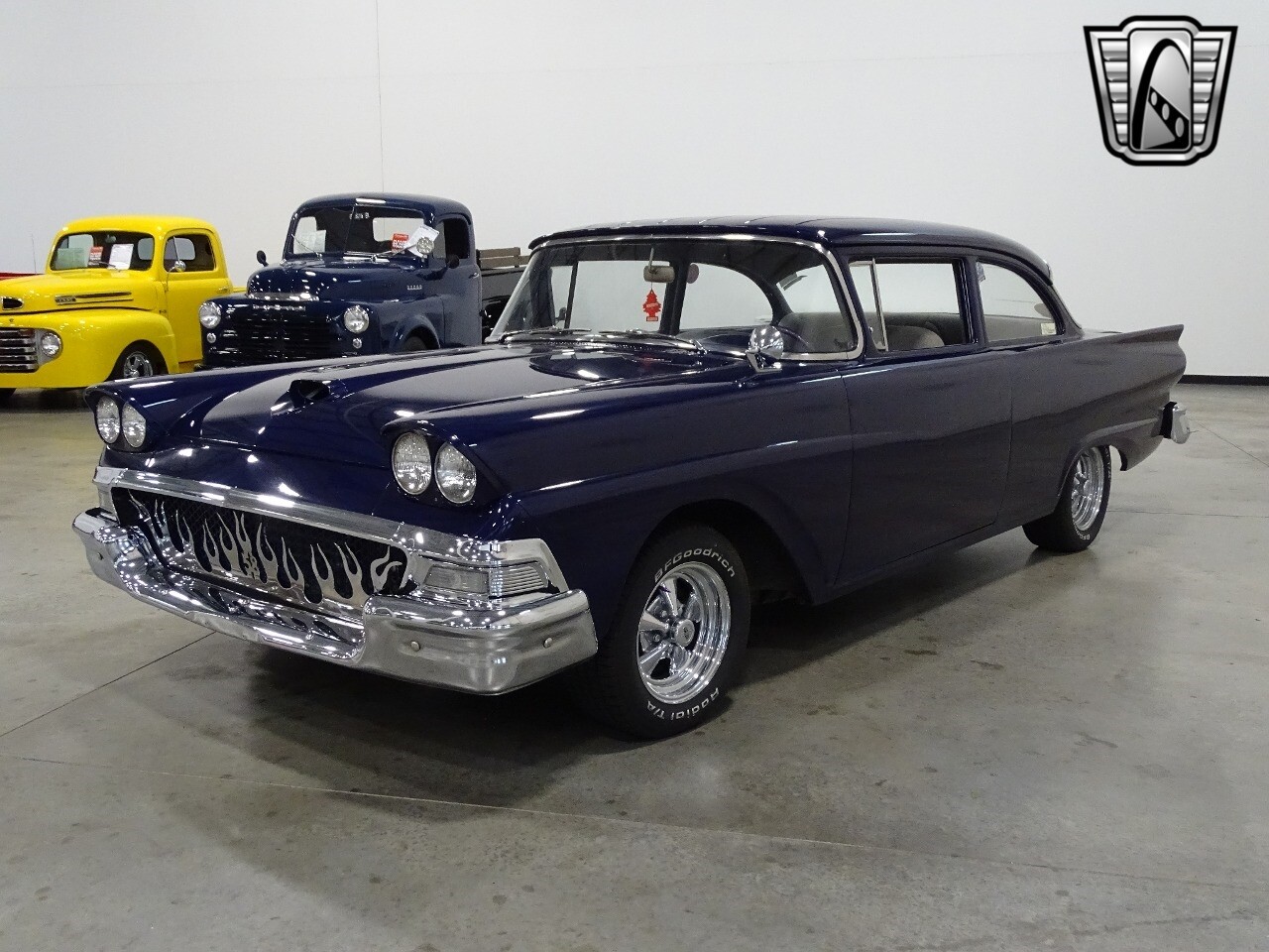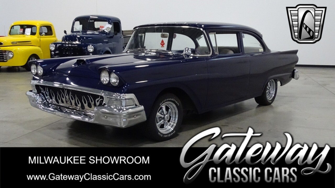 Gateway Classic Cars Milwaukee is excited to present this 1958 Ford Custom, a classic automobile that exudes a unique blend of vintage charm and modern functionality. This model features a striking purple exterior that is sure to turn heads wherever you go. The color is bold, unique, and truly representative of the car's character. Accented with a set of Cragar five-spoke chrome wheels and raised white letter tires.