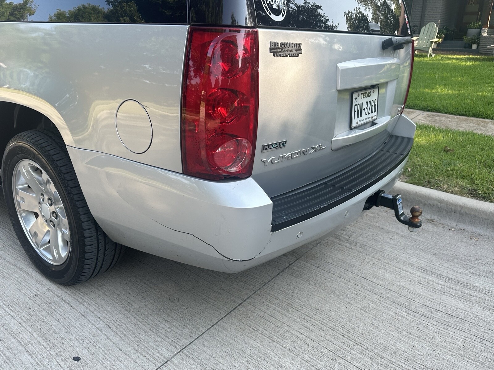 It is a silver Yukon XL with a few scratches. The left part of the back bumper is dented (picture shown). The transmission has been replaced. The vehicle is in good contition. The leather seats are torn in a few spots, mainly the driver’s seat. It does have 287k miles, but it drives great.