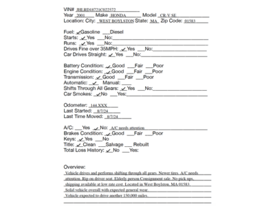 No Payment: If the deposit is not received within 24 hours of the close of the auction, or if the balance is not paid in full within 3 days following the close of the auction, we reserve the right to re-list the vehicle to the next highest bidder or another qualified buyer.