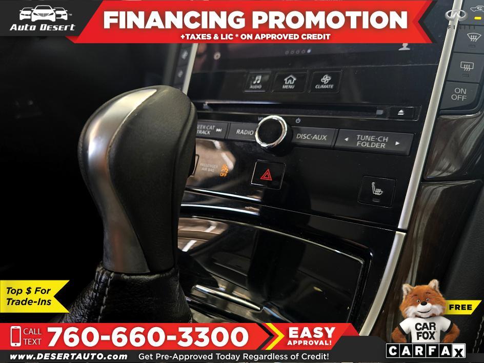 The vehicle history report shows a CLEAN TITLE on this Sedan and an optional extended warranty is available.This Sedan has been well cared for by the Two Previous Owners plus this Sedan was driven only 8|647 miles/year| currently at 69|174 miles.The automatic transmission makes driving easier in stop-and-go traffic and on hilly roads| on top of that this smooth 6 Cylinder engine is ideal for performance and fuel economy.Enjoy better handling and stopping with the rear wheel drive.The factory built-in navigation system saves you time| fuel and eliminates frustration when traveling| additionally the Infiniti back-up camera delivers assurance when backing out of a parking spot or down a driveway. Parking is much easier and safer with the factory installed parking aid sensors| furthermore the Keyless Start contains safeguards to ensure that your car doesn't spring to life at the wrong time. the power roof is convenient to operate and makes any trip more enjoyable| not to mention aside from having your car cool in the summer and warm in the winter| a remote engine start is beneficial for the engine by warming it up before driving.The CD-Changer delivers hours of uninterrupted music| meanwhile the HID headlight offer almost three times the light as compared to conventional lights. The factory built in HD radio gives you more music| talk shows and news without any monthly subscription fees| furthermore the biggest benefit to the built-in Satellite Radio Commercial is free broadcasts and uninterrupted programming. The installed Bluetooth adds to comfort| convenience and safety while the MP3 player is a convenient feature that takes the sound quality to another level.The premium sound system delivers crystal clear music| furthermore listening to music from any device with the built-in AUX input makes any road trip exciting. The keyless entry feature adds to security and conven... Read the full description on our Website at: