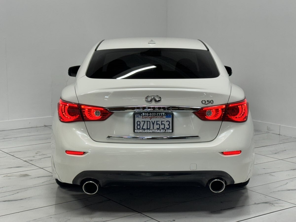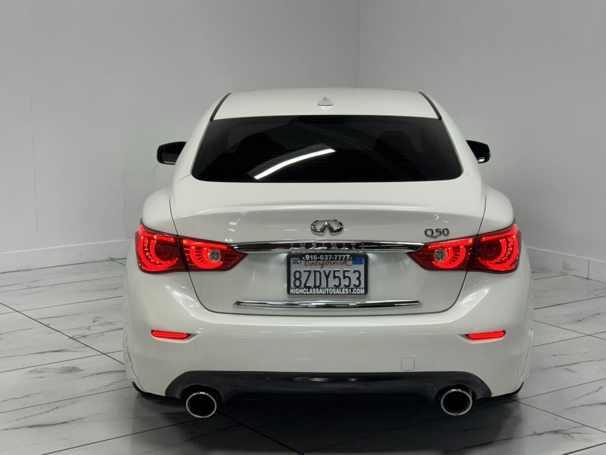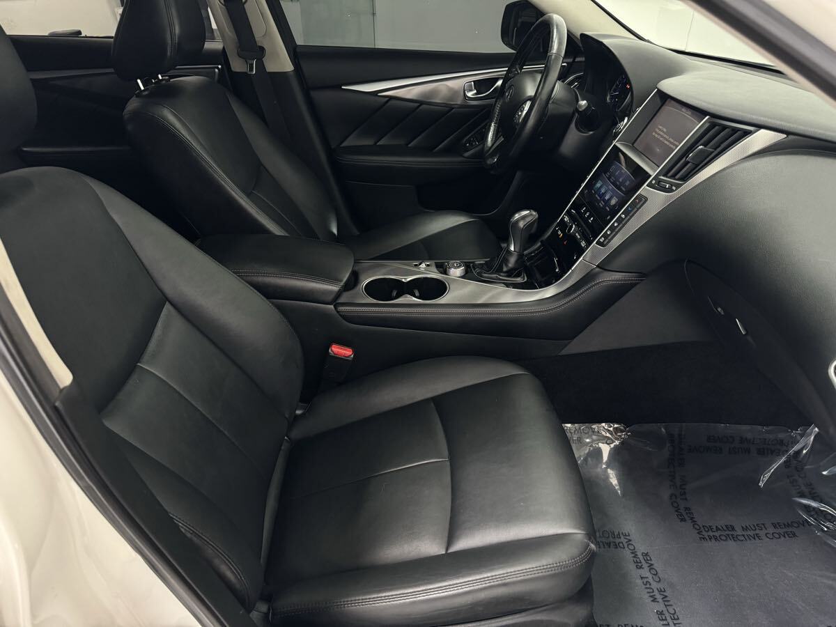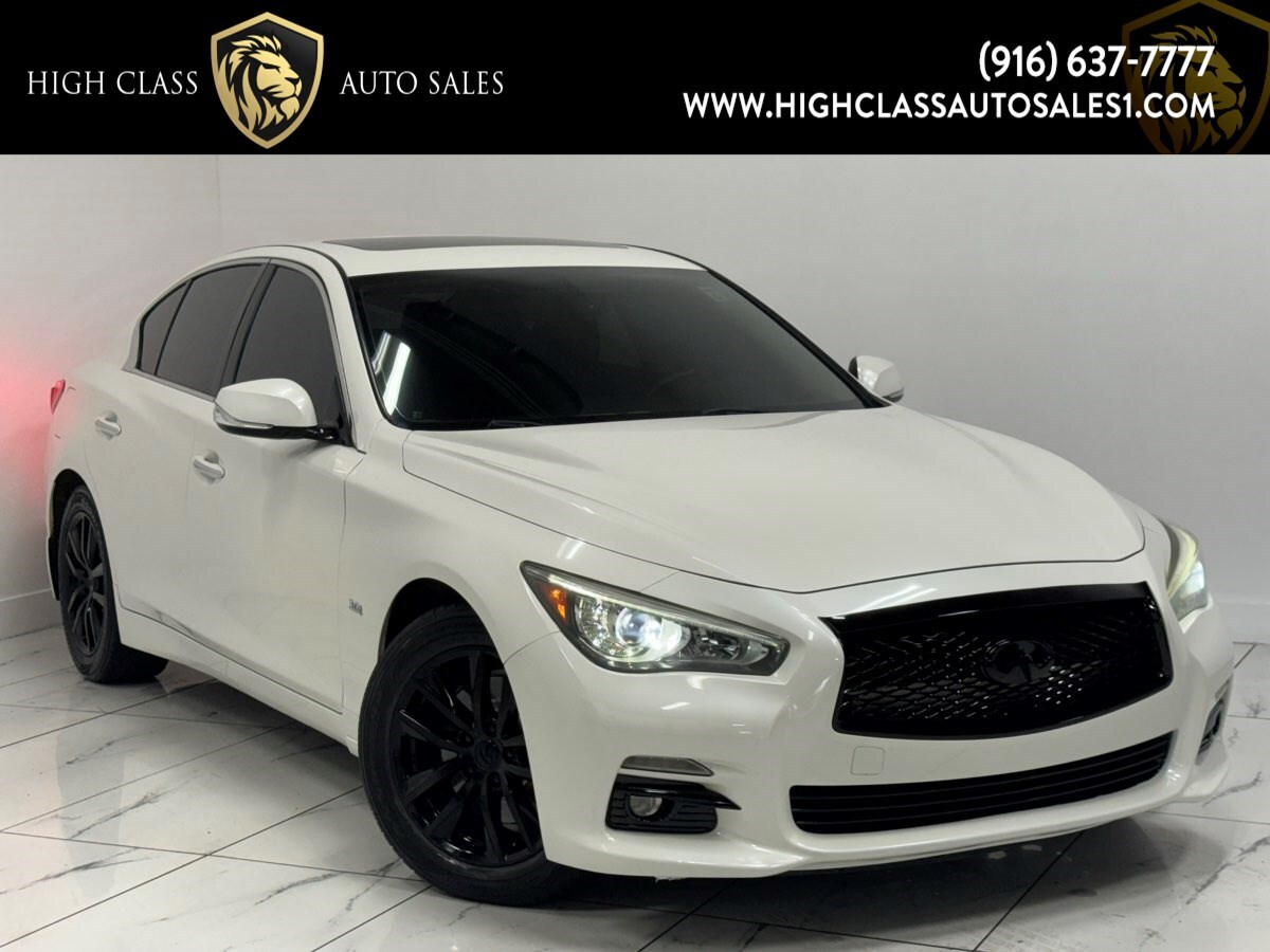 Excite all of your senses with our spectacular 2016 INFINITI Q50 Premium Sedan that's breathtaking in Majestic White! Motivated by a Twin TurboCharged 3.0 Liter V6 that generates 300hp paired with a 7 Speed Automatic transmission with adaptive shift control. This Rear Wheel Drive sedan rewards you with incredible acceleration and nearly 29mpg on the highway. The epitome of modern luxurious design - our Q50 exudes artful and sculpted drama that turns heads with its dual chrome exhaust finishers - a prominent sunroof - and LED headlights. The Premium interior has been designed with a fully customizable digital environment that saves audio - climate - and navigation settings for each intelligent key. Appreciate valet key - dual-zone automatic climate control - heated front seats - push-button ignition - and more. You'll love Infiniti's InTouch system with the Bluetooth hands-free phone system and a hands-free text-messaging assistant. Turn up the premium sound system with available satellite radio and enjoy turning heads in this spectacular machine. A host of safety features are on board in this INFINITI to protect you; an advanced airbag system - zone body construction - front/rear crumple zones - a rearview camera - and vehicle dynamic control - just to name a few. Reward yourself with this Q50 Premium sedan's maximum driving pleasure today. Save this Page and Call for Availability. We Know You Will Enjoy Your Test Drive Towards Ownership!