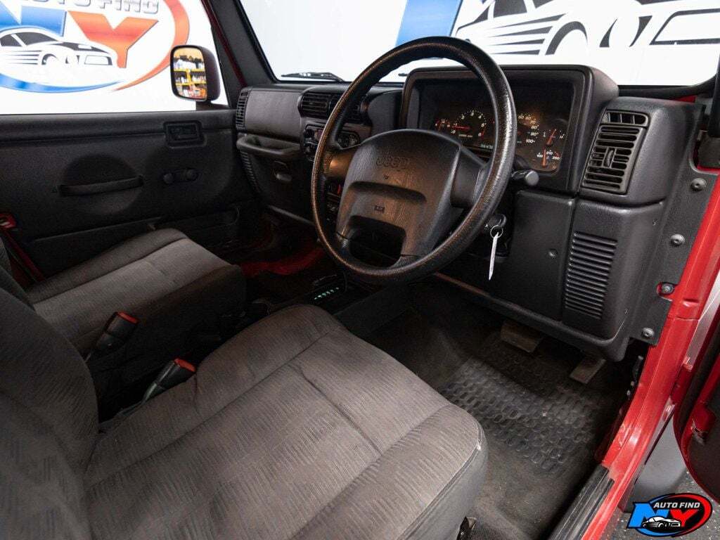 Take a look at this 2003 Flame Red Jeep Wrangler Sport Right Hand Drive with Dark Slate Gray Cloth Interior, a Clean Carfax and only 64,708 miles. This is the adventure vehicle of a lifetime. It's the Sport edition with a powerful 6-cylinder engine and it has the well maintained looks that everyone dreams about. It also has very low mileage, so don't miss out on this awesome Jeep. It comes equipped with a 4.0L 6-cylinder engine paired to a 6-speed Automatic Transmission, Folding Rear Seat, Easy Access Tip and Slide Front Seats, Spare Tire Cover, Sport Bar with Full Padding, Rear Window Defroster, High-Back Front Bucket Seats, 117 Amp Alternator, Low Pressure Gas Charged Shock Absorbers, 15 Full Face Steel Wheels, 19 Gallon Fuel Tank, Rear Cargo Lamp, Black Bumpers with Extensions, Glove Box with Lock, AM/FM Radio and so much more. Every NY Auto Find vehicle comes with a complimentary Limited Warranty and a Carfax Vehicle Report. Our vehicles are priced to sell quickly. Please call to check availability and to schedule an appointment. -