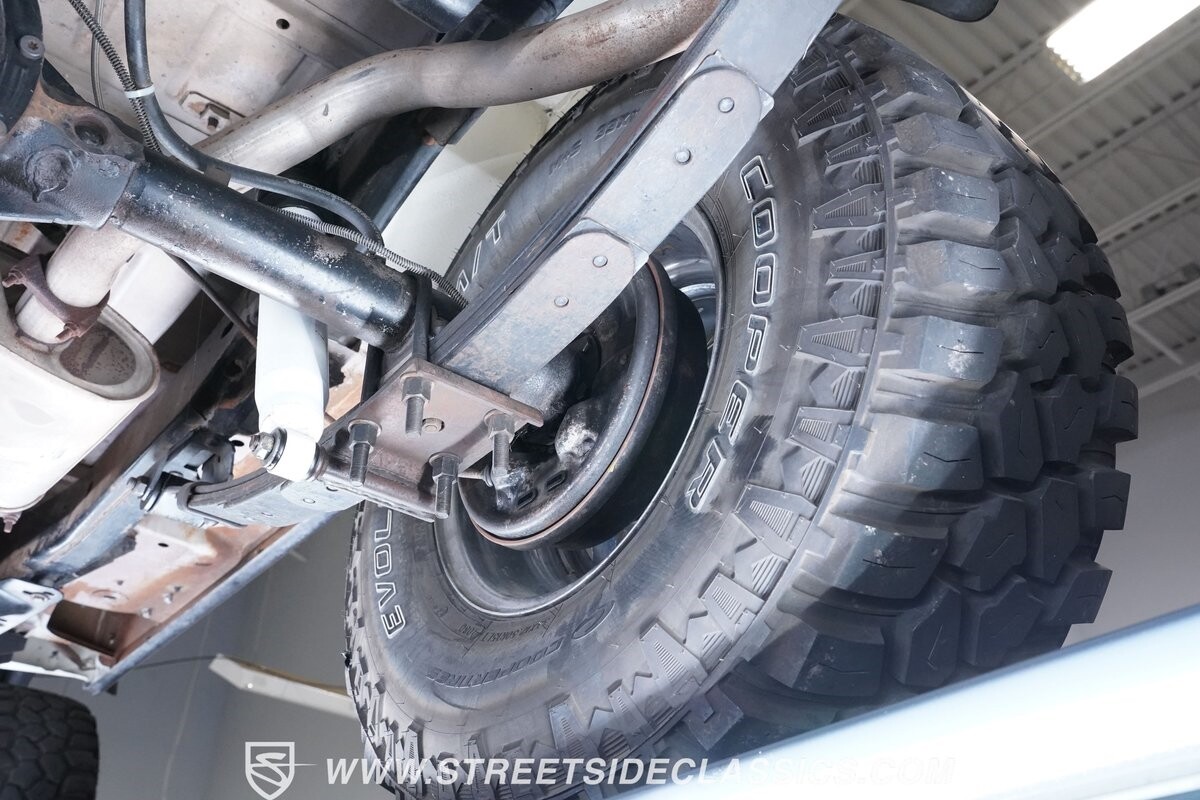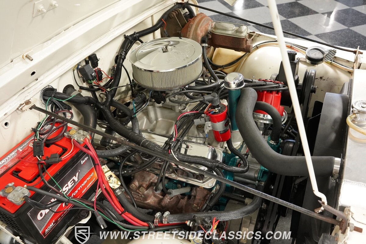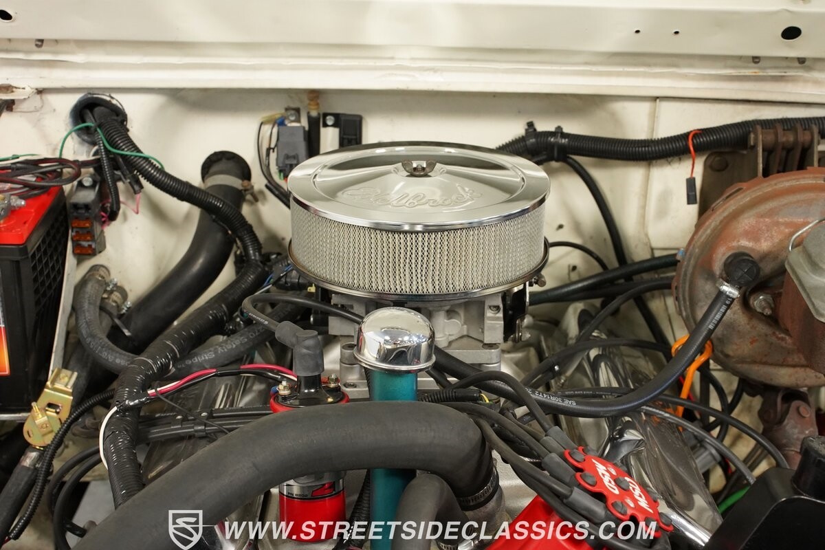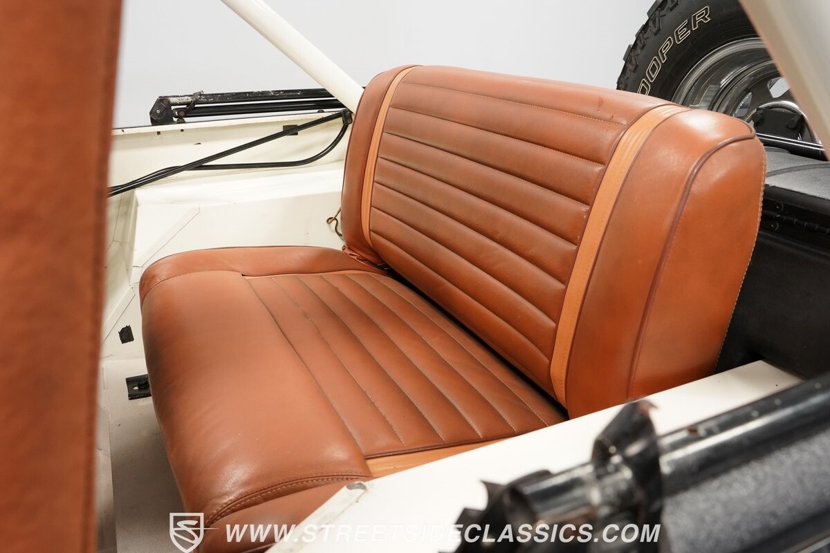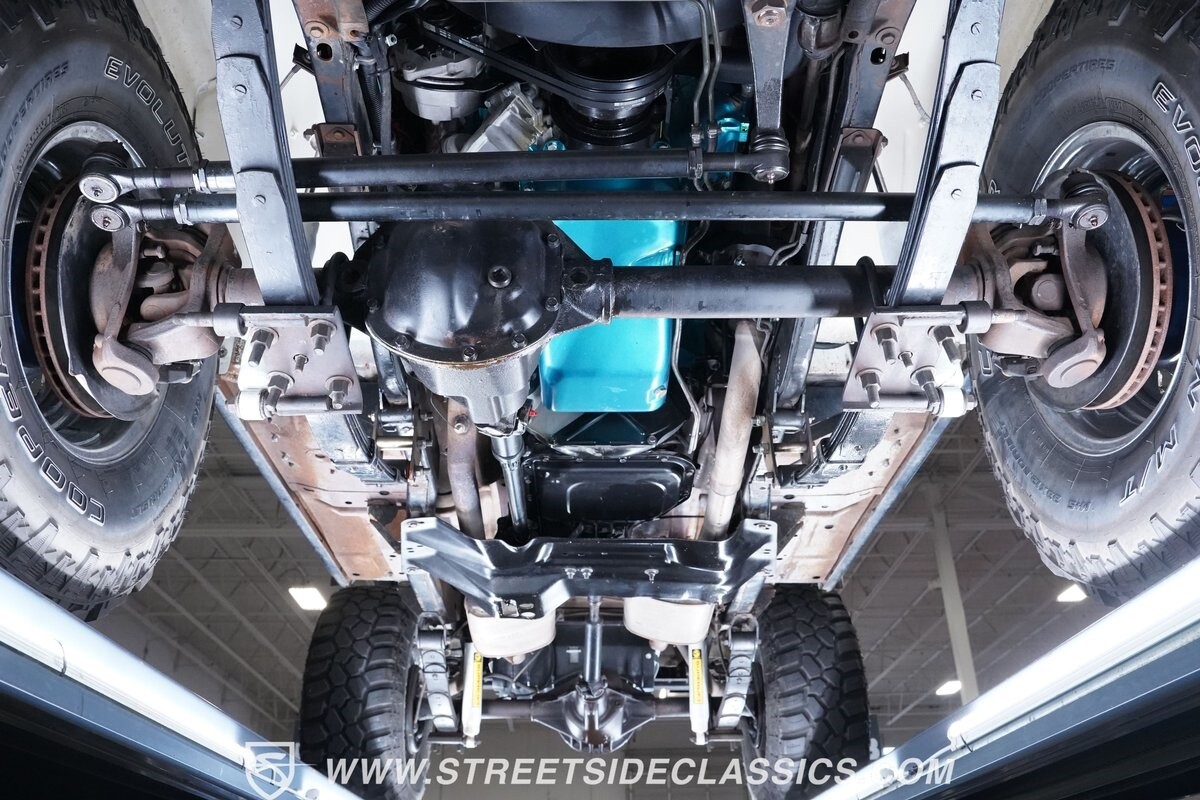 Under the hood, a freshly overhauled 304 AMC V8 engine roars to life, mated to a rebuilt 3-speed automatic transmission. This powerplant boasts roller rockers, an Isky custom ground camshaft, and a .30 overbore, all balanced for optimal performance. An Edelbrock intake with Howell fuel injection and MSD ignition system ensure reliable power delivery. The drivetrain is further enhanced by a rebuilt rear axle featuring new axles and a Trac-Lok positraction differential. Power steering and power disc brakes up front provide confident control, while the dual exhaust with aftermarket mufflers produces a satisfying growl.