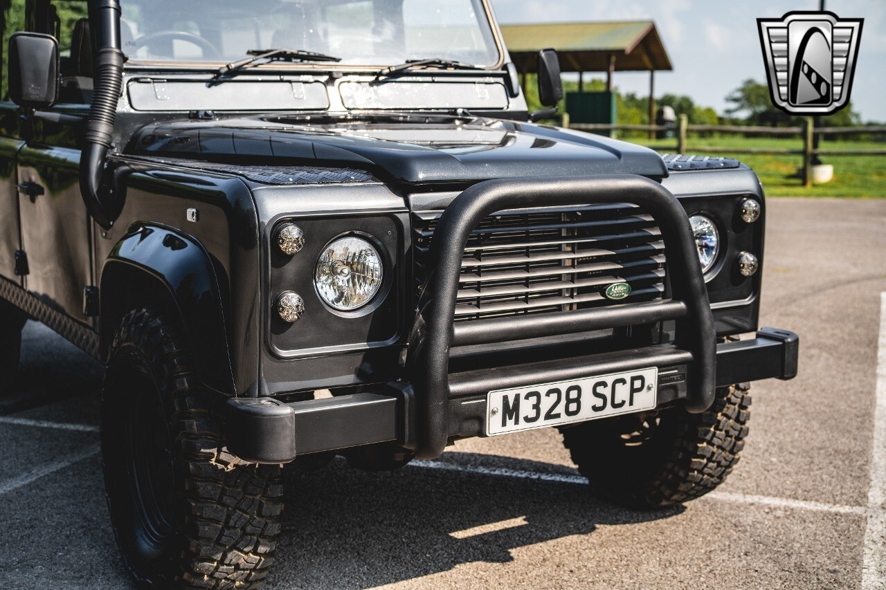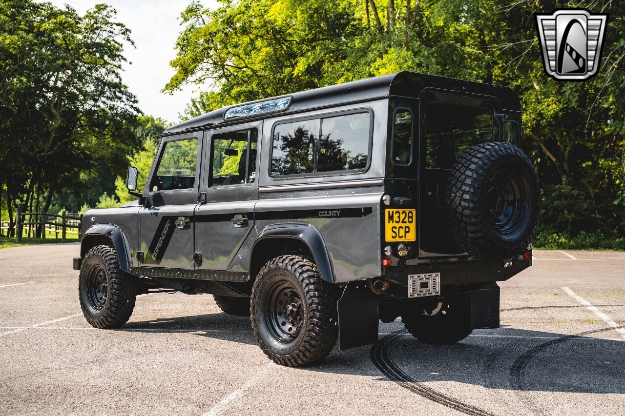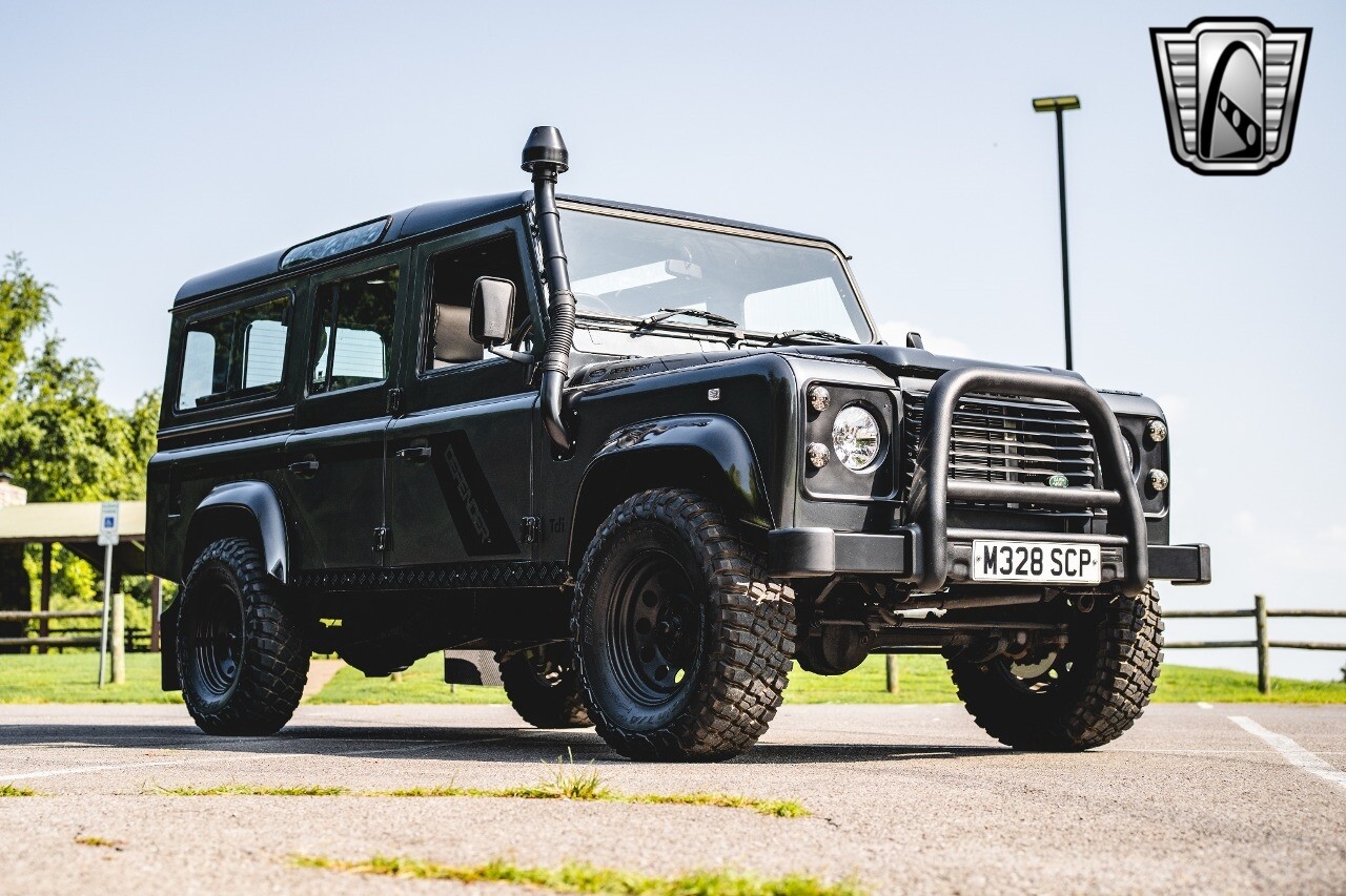 Introducing this 1995 Land Rover Defender 110 Hard Top, a classic icon in a striking dark charcoal metallic and black exterior color combination. This vehicle exudes rugged sophistication and timeless appeal, making it a standout choice for enthusiasts and adventurers alike.