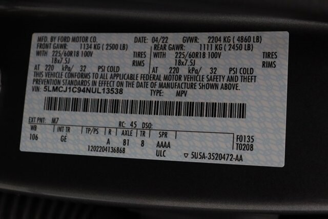 2022 Lincoln Corsair Standard Intercooled Turbo Premium Unleaded I-4 2.0 L/122
