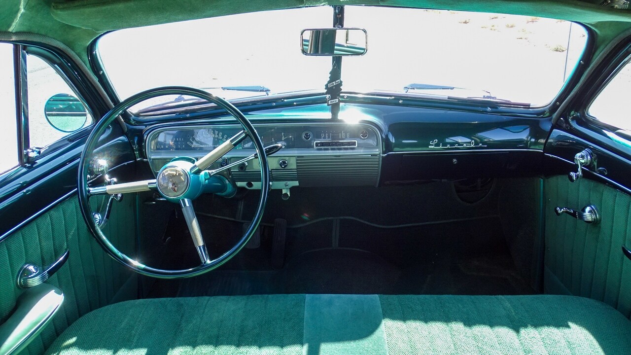 Gateway Classic Cars of Las Vegas presents this 1950 Lincoln Sport Sedan, a true gem for any vintage car enthusiast. This model is a standout with its striking green exterior, a color that encapsulates the era it hails from. The interior is equally impressive with a matching green cloth upholstery that adds a touch of comfort and style.