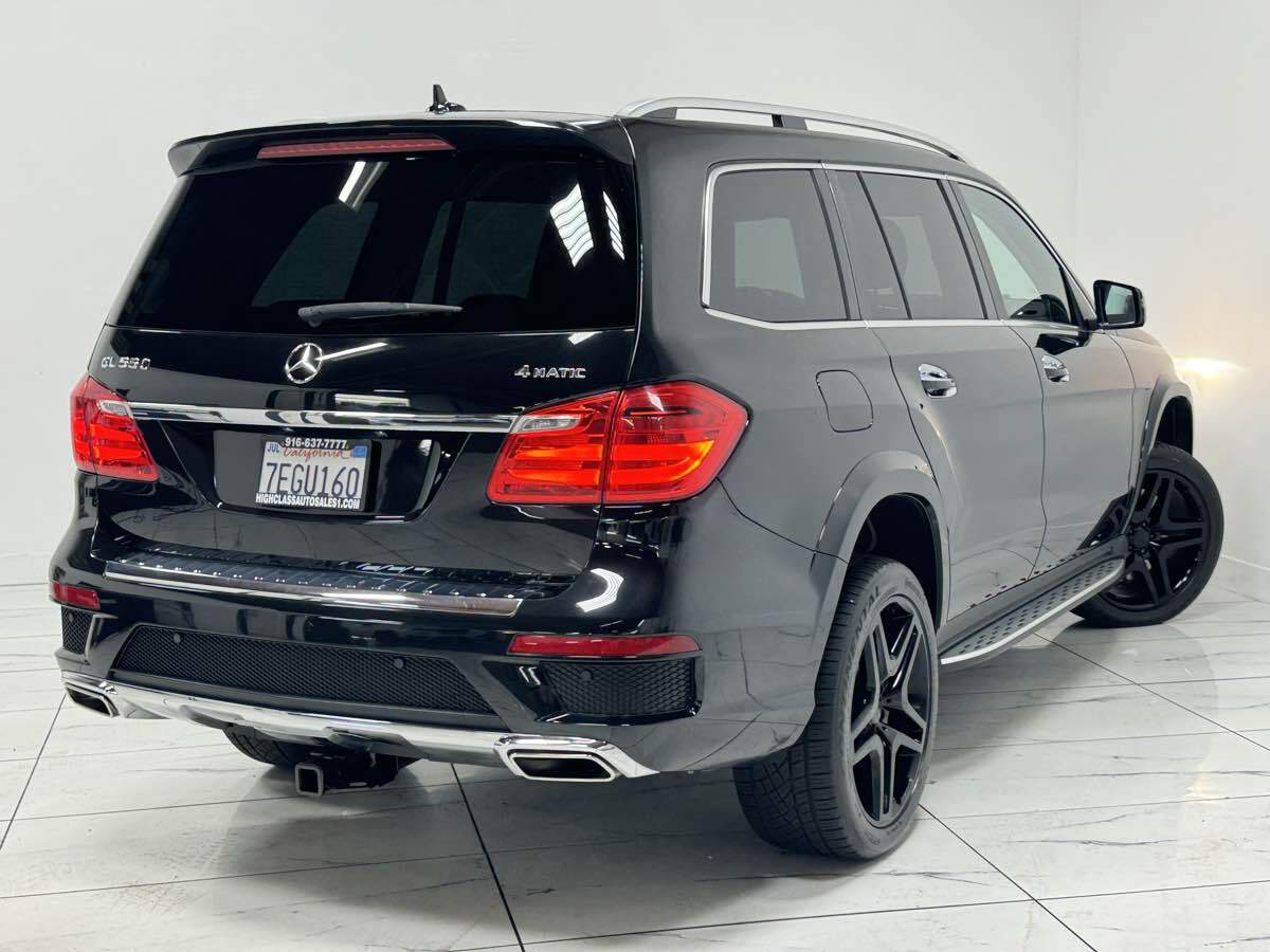 Our superb 2014 Mercedes-Benz GL 550 4MATIC is presented in eye-catching Black. Motivated by a Twin TurboCharged 4.6 Liter V8 producing 429hp tethered to a 7 Speed Automatic transmission for brisk acceleration. This All Wheel Drive GL-Class luxury SUV provides up to 18mpg on the road - impressive traction in most road conditions - and a smooth - comfortable ride thanks to the AIRMATIC suspension. Our GL 550 stands out with distinctive AMG bodywork enhanced by a power sunroof - HID headlamps - LED daytime running lights - and split-spoke alloy wheels. Our GL 550 helps make every drive feels special with a cabin equipped with high-quality materials and first-class amenities. Heated and ventilated multi-contour front seats with memory and massage - a multi-function steering wheel - keyless entry/ignition - soft-close doors - three-zone automatic climate control - and a power liftgate are just a few of the niceties that pamper and cosset you. You will love the full-color COMAND infotainment system offering navigation - Bluetooth - CD - and Harman Kardon LOGIC7 surround-sound. Our Mercedes-Benz also features a suite of safety technologies to help keep you and your passengers out of harm's way. Forward collision warning - blind-spot monitoring - lane departure warning - PRE-SAFE collision preparedness - crosswind assist - a driver drowsiness monitor - crosswind assist - a back-up camera with surround view - active parking assist - front/rear parking sensors - rain-sensing wipers - stability/traction control - ABS - and advanced airbags are just a few of the innovations that surround you. Our fantastic GL 550 is the SUV for you! Save this Page and Call for Availability. We Know You Will Enjoy Your Test Drive Towards Ownership!