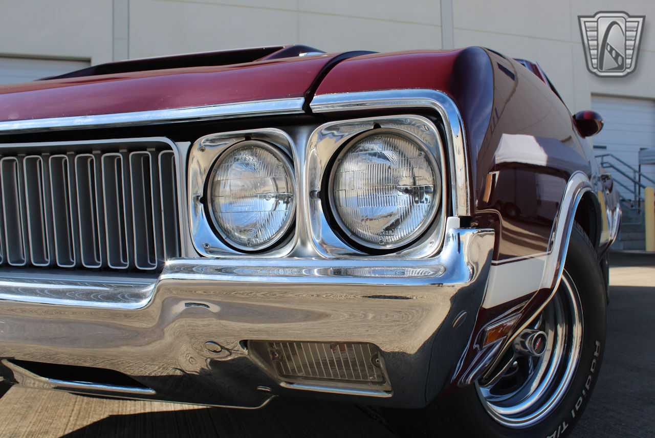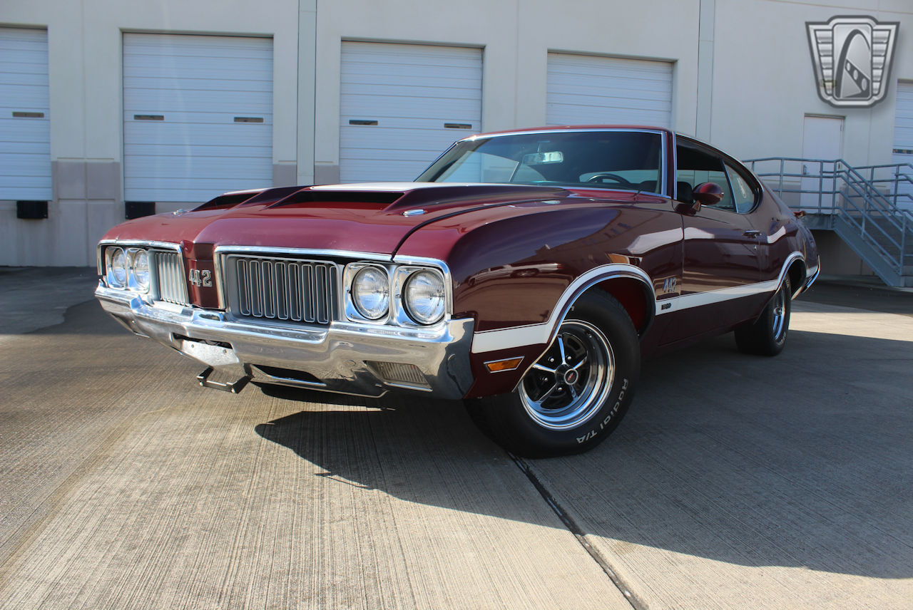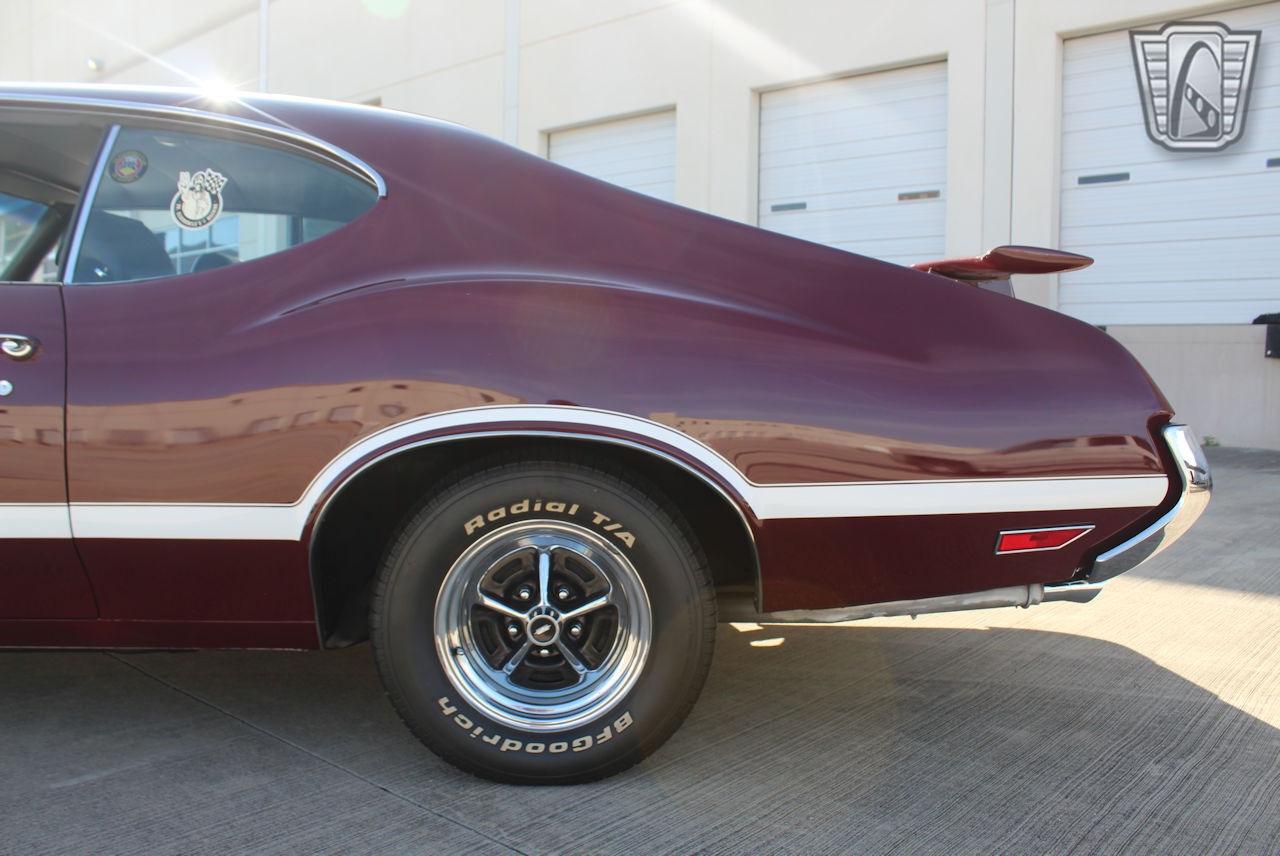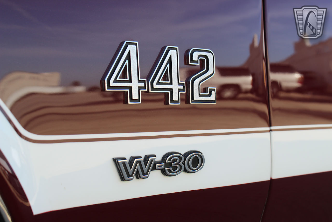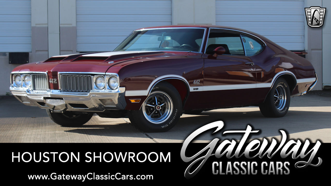 Gateway Classic Cars Houston is very excited to offer this gorgeous collector's dream 1970 Oldsmobile 4-4-2 W-30 for sale. In addition to being to a rare 4-4-2 color, this Burgundy Mist "W-Machine" is very well optioned, making it an even more unique "W-Machine" (see list below or contact us for a copy). Its current owner has been collecting and restoring Oldsmobiles for over 30 years, and in his words, "...I've only seen 3 others in color code 78". While that shouldn't be taken to imply that only a handful of 4-4-2s were built in this color, you'll probably find it nearly impossible to find another one like it. This 4-4-2 was treated to an extremely thorough restoration: while nearly all original, it has some non-OE parts that are better than the originals. For one thing, to keep the giant 455 cool, a monster custom-fabbed (and painstakingly custom fit) aluminum radiator was added, and the engine and transmission were substantially upgraded internally to support the extra power that the drivetrain was targeted to deliver. According to the dyno report, this 455 is putting out 514 peak HP and 578 lb-ft peak torque, which is a noticeable improvement over the factory rating of 370HP/500lb-ft torque. The engine is a full roller engine - built, balanced, blueprinted, and dynoed by renowned Oldsmobile engine wizard Dick Miller. According to the owner, stabbing the go pedal to the floor at a 65-mph cruise could easily get you sideways in this beast as it drops to 2nd gear and smokes the tires (even at that speed). While we won't attempt to validate that assertion, this "Dr. Oldsmobile-approved" enhanced big block already acts like it's on steroids, so we have no reason to doubt that it can do that.