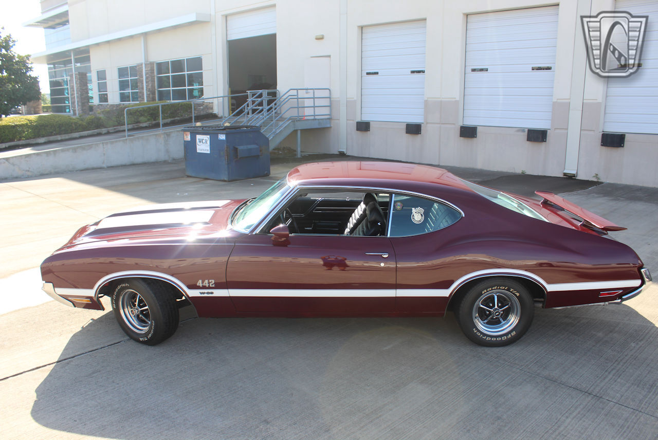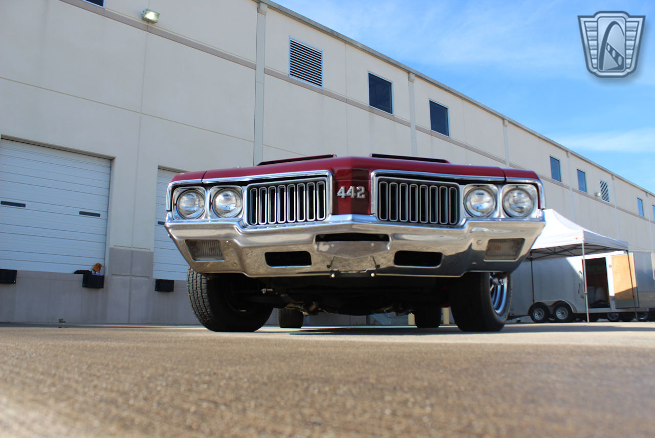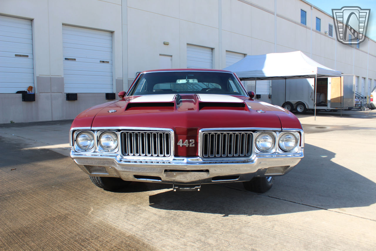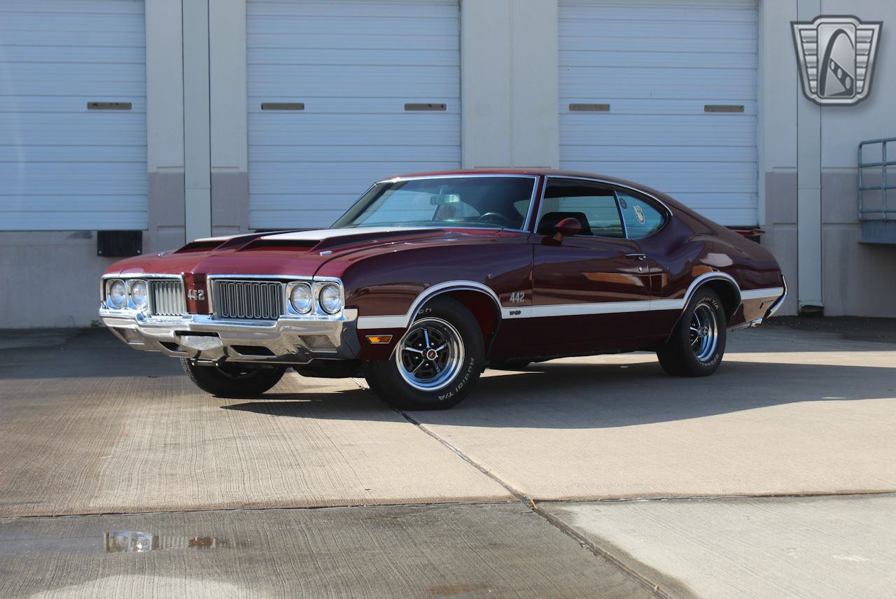 Gateway Classic Cars Houston is very excited to offer this gorgeous collector's dream 1970 Oldsmobile 4-4-2 W-30 for sale. In addition to being to a rare 4-4-2 color, this Burgundy Mist "W-Machine" is very well optioned, making it an even more unique "W-Machine" (see list below or contact us for a copy). Its current owner has been collecting and restoring Oldsmobiles for over 30 years, and in his words, "...I've only seen 3 others in color code 78". While that shouldn't be taken to imply that only a handful of 4-4-2s were built in this color, you'll probably find it nearly impossible to find another one like it. This 4-4-2 was treated to an extremely thorough restoration: while nearly all original, it has some non-OE parts that are better than the originals. For one thing, to keep the giant 455 cool, a monster custom-fabbed (and painstakingly custom fit) aluminum radiator was added, and the engine and transmission were substantially upgraded internally to support the extra power that the drivetrain was targeted to deliver. According to the dyno report, this 455 is putting out 514 peak HP and 578 lb-ft peak torque, which is a noticeable improvement over the factory rating of 370HP/500lb-ft torque. The engine is a full roller engine - built, balanced, blueprinted, and dynoed by renowned Oldsmobile engine wizard Dick Miller. According to the owner, stabbing the go pedal to the floor at a 65-mph cruise could easily get you sideways in this beast as it drops to 2nd gear and smokes the tires (even at that speed). While we won't attempt to validate that assertion, this "Dr. Oldsmobile-approved" enhanced big block already acts like it's on steroids, so we have no reason to doubt that it can do that.