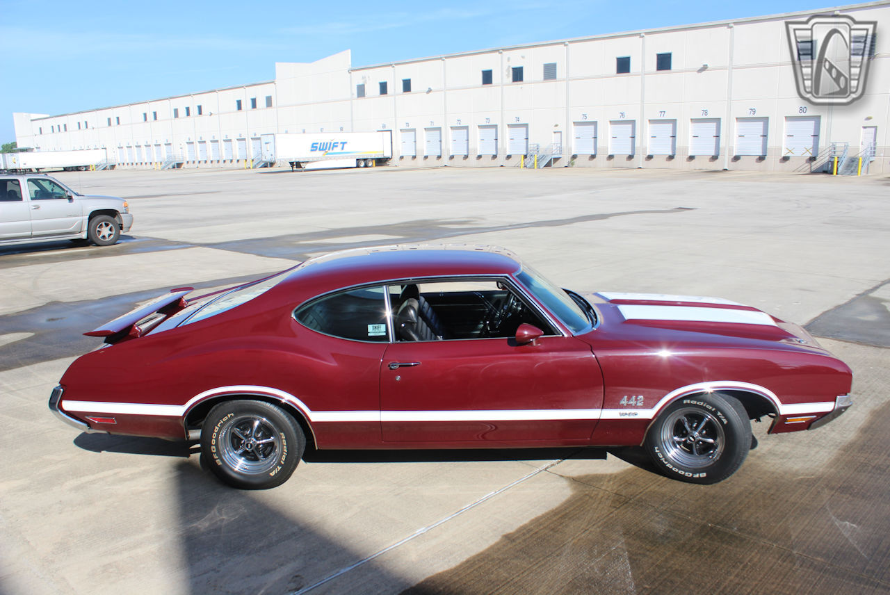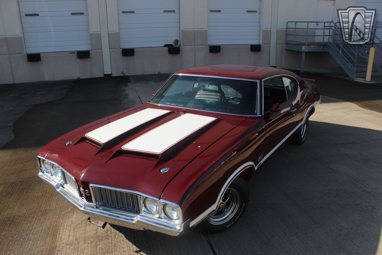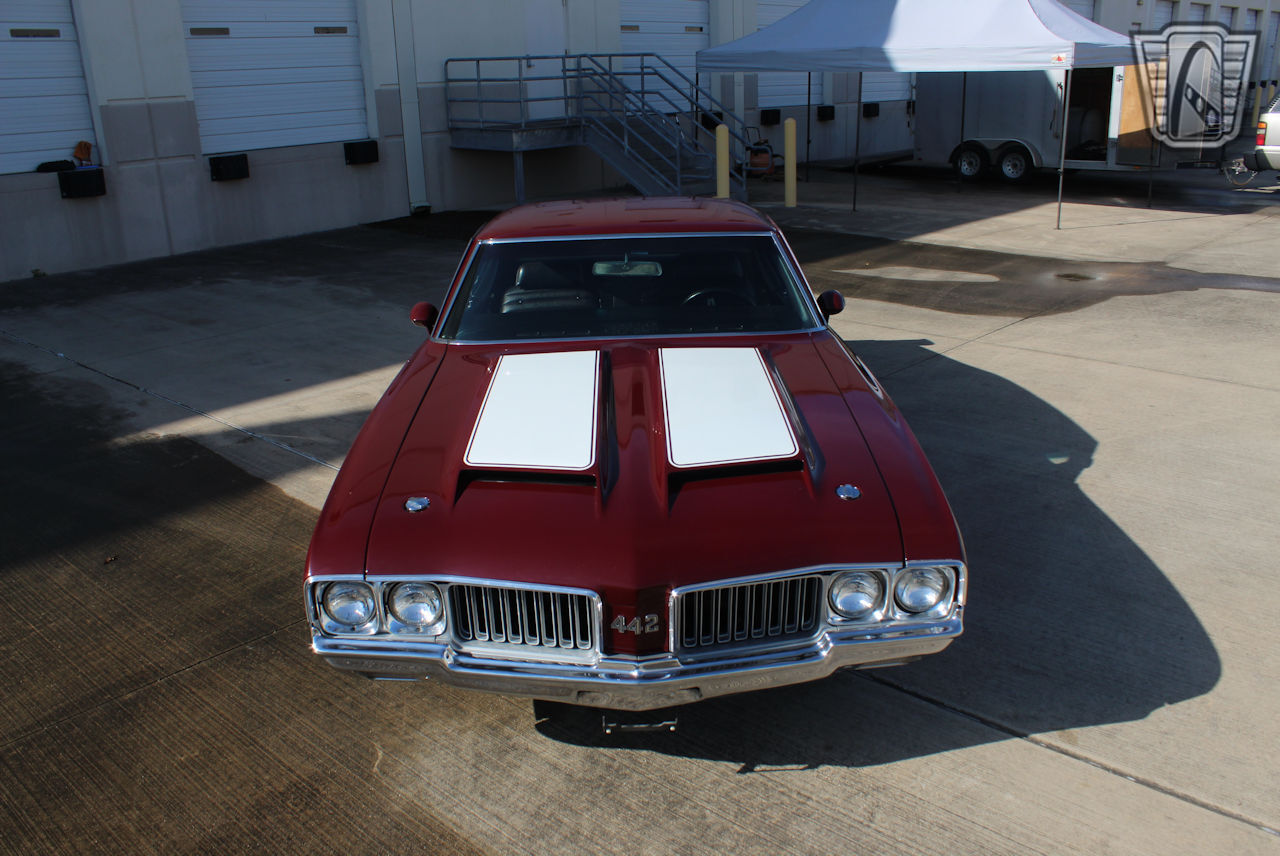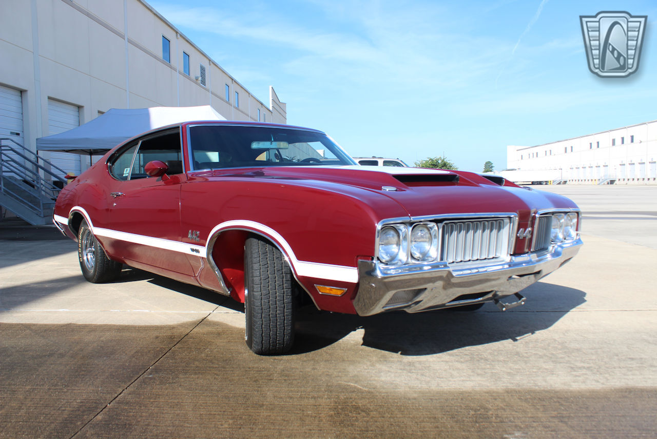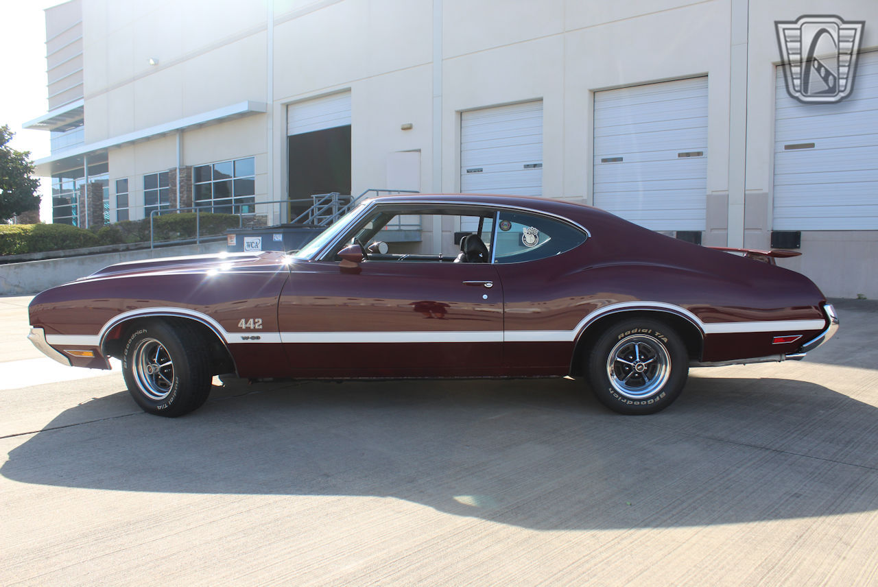 Gateway Classic Cars Houston is very excited to offer this gorgeous collector's dream 1970 Oldsmobile 4-4-2 W-30 for sale. In addition to being to a rare 4-4-2 color, this Burgundy Mist "W-Machine" is very well optioned, making it an even more unique "W-Machine" (see list below or contact us for a copy). Its current owner has been collecting and restoring Oldsmobiles for over 30 years, and in his words, "...I've only seen 3 others in color code 78". While that shouldn't be taken to imply that only a handful of 4-4-2s were built in this color, you'll probably find it nearly impossible to find another one like it. This 4-4-2 was treated to an extremely thorough restoration: while nearly all original, it has some non-OE parts that are better than the originals. For one thing, to keep the giant 455 cool, a monster custom-fabbed (and painstakingly custom fit) aluminum radiator was added, and the engine and transmission were substantially upgraded internally to support the extra power that the drivetrain was targeted to deliver. According to the dyno report, this 455 is putting out 514 peak HP and 578 lb-ft peak torque, which is a noticeable improvement over the factory rating of 370HP/500lb-ft torque. The engine is a full roller engine - built, balanced, blueprinted, and dynoed by renowned Oldsmobile engine wizard Dick Miller. According to the owner, stabbing the go pedal to the floor at a 65-mph cruise could easily get you sideways in this beast as it drops to 2nd gear and smokes the tires (even at that speed). While we won't attempt to validate that assertion, this "Dr. Oldsmobile-approved" enhanced big block already acts like it's on steroids, so we have no reason to doubt that it can do that.