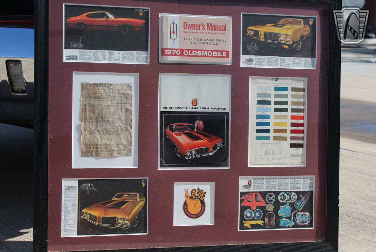 According to its owner, this 4-4-2 has won numerous awards, including a Best of Class at Oldsmobile Zone show, and other top awards at many regional shows across Texas, Oklahoma, and Alabama. It comes with a giant framed display, which includes the 1970 owner's manual, factory paint chip sample card, "W-Machine" sales literature, and what appears to be the original sales invoice (in quite good condition). Per the original invoice, this car came with the following options list: