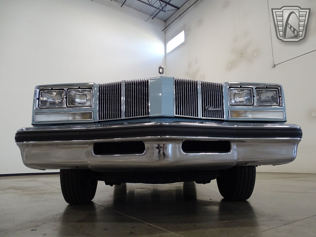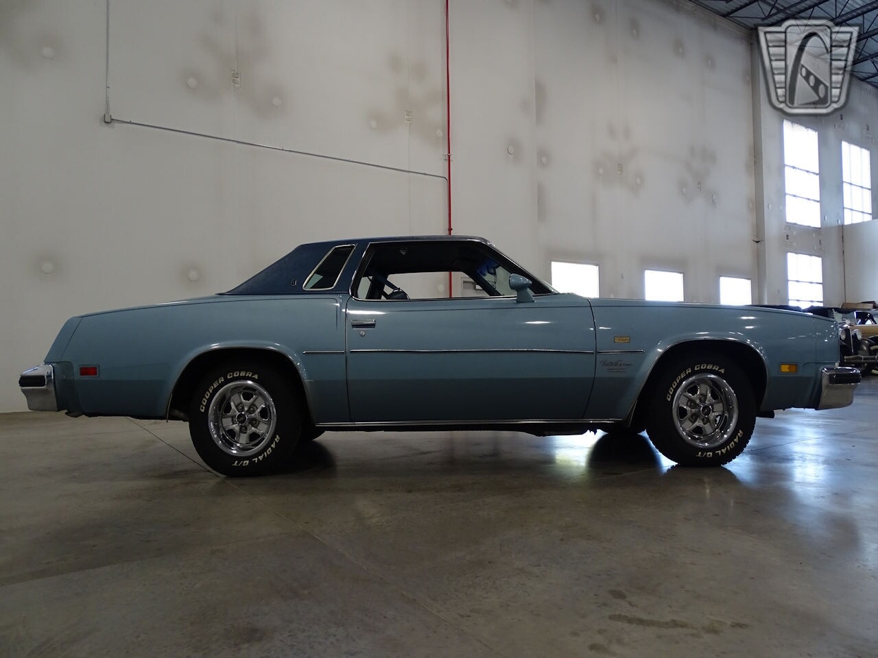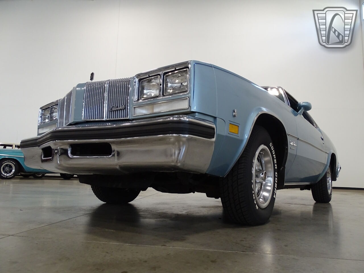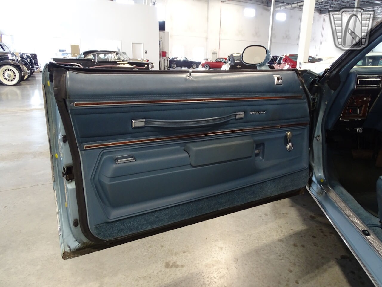 This beautiful Two-door 1976 Oldsmobile Cutlass Supreme Brougham excites with a combination of sporty good looks and over-the-top luxury. Painted in Horizon Blue with a medium blue vinyl roof. Raised white letter tires are mounted on factory five spoke steel rims with beauty rings. The blue button tufted interior is extremely comfortable and inviting. Under the hood is a 350 cubic inch V-8 attached to a three-speed automatic transmission. Comfort features include air conditioning, power steering, power brakes, AM/FM 8-track radio, cruise control, and tilt wheel.