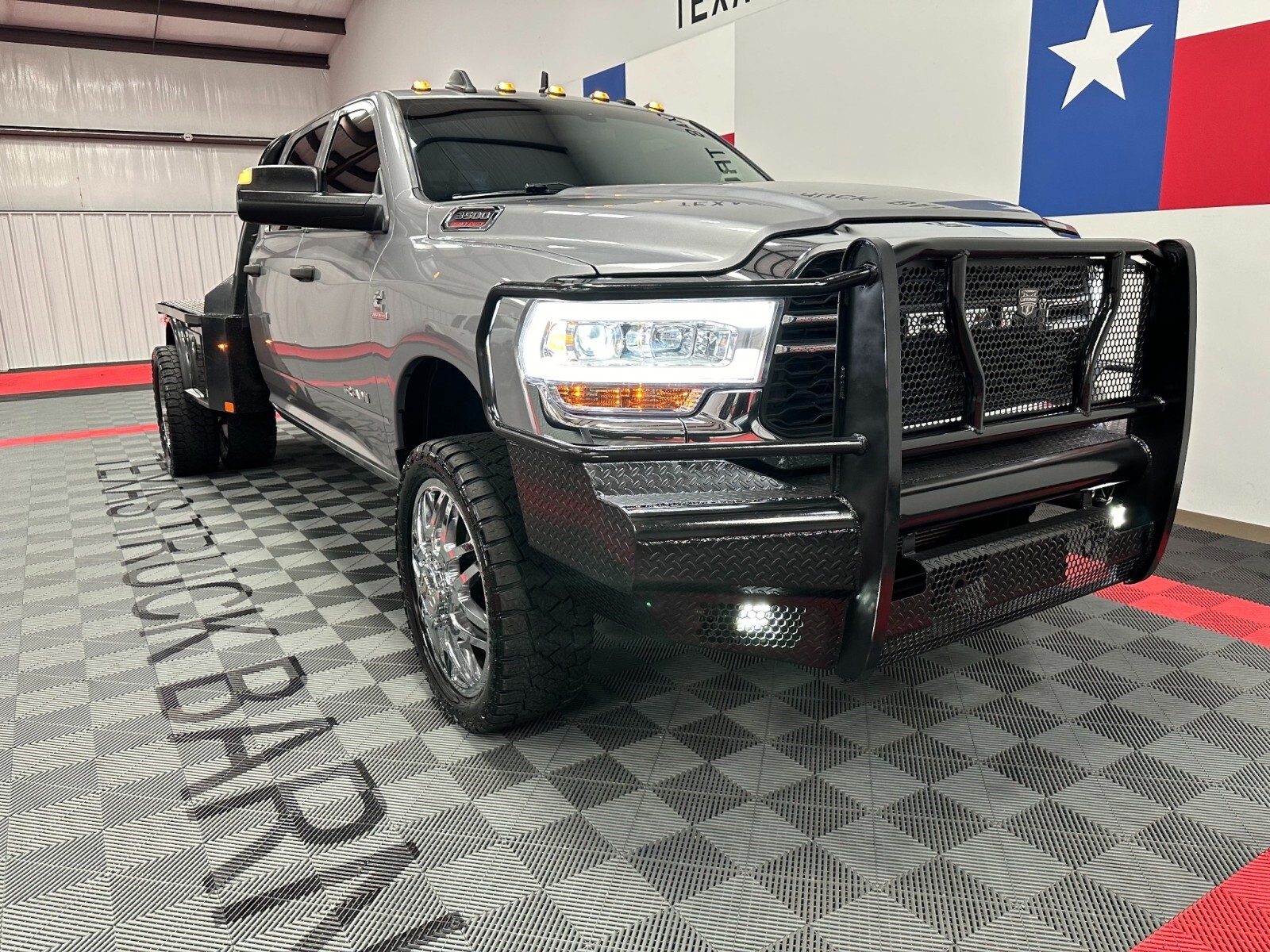 2020 Ram 3500 CM Flatbed Dually 4WD 147K Miles 6.7L Diesel AISIN Transmission 24 Cali Wheels 35 Tires This Ram was just traded in-Texas Owner, Runs and Drives Great, Carfax Certified, Excellent Service Records 6.7L Cummins Turbo High Output Diesel, Highly Sought After AISIN Automatic Transmission, Exhaust Brake Customer Interior with Katzkin Leather with Heated and Cooled Front Seats Power Windows, Power Mirrors, Power Door Locks, Backup Camera Keyless Entry with Keyless GO!!! CM Flatbed with a Towing Package, Gooseneck Ball, Tool Boxes, LED Lights 24 Chrome Cali Wheels wrapped with 35/12.50r24 Tires Call or Text Anytime Cory (817)658-4304 Tim (214)949-6227 If you live in the DFW Metroplex we have a Credit Union that we work with that has excellent interest rates. Please call, text, or email to find out more about it. We are a Certified Dealer with USAA, Navy Federal Credit Union, PenFed, and several other financial organizations. When you use these lenders and buy a truck from Texas Truck Barn, you will save points .25%-1% on your interest rate. We have Financing Available and work with multiple lenders. Our lenders have finance options for all credit types. You can fill out a credit application on our website or in person at our dealership. If you want an instant credit decision, complete your credit application online, then call at (214)949-6227. We can Assist with Shipping. Cory (817)658-4304 Tim (214)949-6227