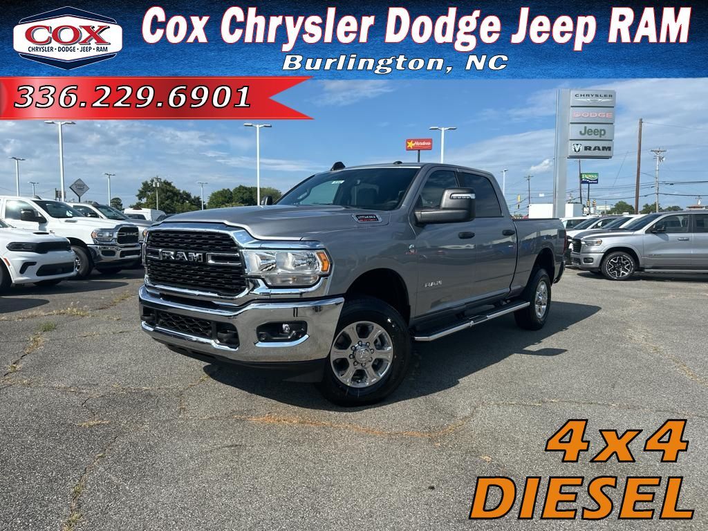 The spacious cab of this three-quarter ton offers many convenience and technology options. It is also ready for your burliest jobs. This 3/4 ton pickup has four wheel drive capabilities. The gas and brake pedals adjust allowing you to fine-tune them for personal fit and comfort. This model offers Android Auto for seamless smartphone integration. Apple CarPlay: Seamless smartphone integration for this unit - stay connected and entertained on the go! The Ram 2500 offers Automatic Climate Control for personalized comfort. This unit has an automatic transmission. Protect the Ram 2500 from unwanted accidents with a cutting edge backup camera system. Set the temperature exactly where you are most comfortable in this 2024 Ram 2500 . The fan speed and temperature will automatically adjust to maintain your preferred zone climate. The vehicle features cruise control for long trips. This 2024 Ram 2500 has a diesel engine. The Electronic Stability Control will keep you on your intended path. This 3/4 ton pickup has a 6 Cyl, 6.7L high output engine. The Ram 2500 has fog lights for all weather conditions. Bluetooth technology is built into this 2024 Ram 2500 , keeping your hands on the steering wheel and your focus on the road. This vehicle is pure luxury with a heated steering wheel. With the keyless entry system on this Ram 2500 you can pop the trunk without dropping your bags from the store. You'll never again be lost in a crowded city or a country region with the navigation system on the vehicle. The rear parking assist technology on this 3/4 ton pickup will put you at ease when reversing. The system alerts you as you get closer to an obstruction. Never get into a cold vehicle again with the remote start feature on the Ram 2500. This unit gleams with an elegant silver clear coated finish. This Ram 2500 is built for driving comfort with a telescoping wheel. A trailer braking system is already installed on this unit.