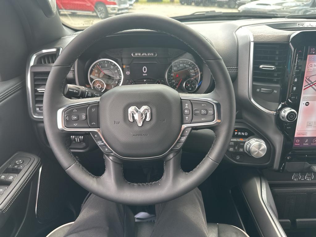 The leather seats in this unit are a must for buyers looking for comfort, durability, and style. This unit's Forward Collision Warning feature alerts drivers to potential front-end collisions. This Ram 1500 keeps you comfortable with Auto Climate. The state of the art park assist system will guide you easily into any spot. This 1/2 ton pickup offers Android Auto for seamless smartphone integration. This vehicle has automated speed control that adjusts to maintain a safe following distance, enhancing highway driving convenience. You'll never again be lost in a crowded city or a country region with the navigation system on it. This Ram 1500 features a hands-free Bluetooth phone system. See what's behind you with the back up camera on this 1/2 ton pickup. This 2025 Ram 1500 offers Apple CarPlay for seamless connectivity. This 1/2 ton pickup is pure luxury with a heated steering wheel. The Ram 1500 has an elegant black exterior finish.