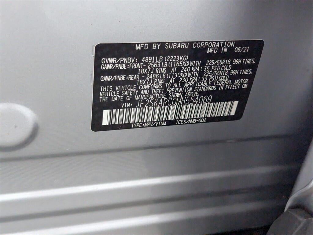 NEED DIRECT AND QUICKER ASSISTANCE? DIAL 561.454.1848 TO SPEAK TO A LIVE SALES CONSULTANT. Ready For Immediate Delivery, Passed Dealer Inspection, Vehicle Detailed, Fresh Oil Change, 3.70 Axle Ratio, 4-Wheel Disc Brakes, 6 Speakers, ABS brakes, Aero Crossbar Set, Air Conditioning, All-Weather Floor Liners, Alloy wheels, AM/FM radio: SiriusXM, Audio System & Reverse Auto Brake & Power Rr Gate, Auto High-beam Headlights, Auto-Dimming Mirror w/Compass & HomeLink, Automatic temperature control, Brake assist, Bumpers: body-color, Cargo Net, CD player, Driver door bin, Driver vanity mirror, Dual front impact airbags, Dual front side impact airbags, Electronic Stability Control, Emergency communication system: STARLINK Safety and Security (Subscription Required), Exterior Parking Camera Rear, Four wheel independent suspension, Front anti-roll bar, Front Bucket Seats, Front Center Armrest, Front fog lights, Front reading lights, Front Side Sill Plates, Fully automatic headlights, harman kardon 576W Amp & Speaker System, Heated door mirrors, Heated Front Bucket Seats, Heated front seats, Ice Silver Metallic Body Side Molding, Ice Silver Metallic Door Edge Guards, Illuminated entry, Knee airbag, Leather Shift Knob, Low tire pressure warning, Occupant sensing airbag, Outside temperature display, Overhead airbag, Overhead console, Paddle-Shift Control Switches, Panic alarm, Passenger door bin, Passenger vanity mirror, Power door mirrors, Power driver seat, Power moonroof: Panoramic, Power Rear Gate w/Automatic Close & Height Memory, Power steering, Power windows, Radio data system, Radio: Subaru Starlink 6.5 Multimedia Plus System, Radio: Subaru Starlink 8.0 Multimedia Plus System, Rear anti-roll bar, Rear Bumper Cover, Rear seat center armrest, Rear window defroster, Rear window wiper, Remote keyless entry, Reverse Automatic Braking System (RAB), Roof rack: rails only, Security system, Speed control, Speed-sensing steering, Split folding rear seat, Spoiler, Sport Cloth Upholstery, STARLINK/Apple CarPlay/Android Auto, Steering wheel mounted audio controls, Sunshade - Windshield, Tachometer, Telescoping steering wheel, Tilt steering wheel, Traction control, Trip computer, Turn signal indicator mirrors, Variably intermittent wipers, Wheels: 18 x 7.0J Black Finish Aluminum Alloy. Certified. Subaru Certified Pre-Owned Details: