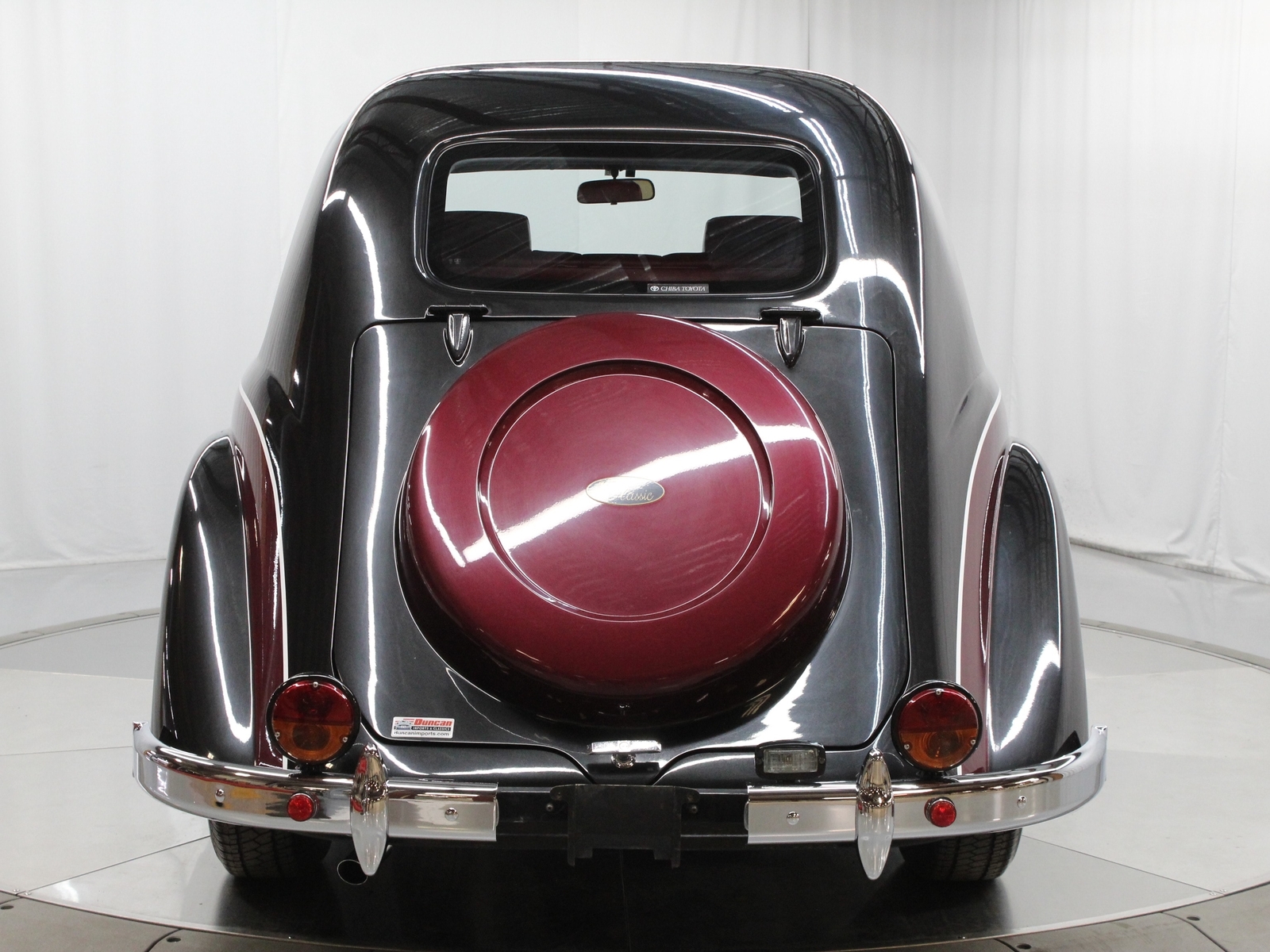 21,360 Kilometers The Toyota Classic was produced in 1996 to commemorate the 60th anniversary of the brand’s inauguration, and the debut of the 1936 Toyoda Model AA. Being a limited production model, only 100 units were ever built, and they were sold exclusively in Japan between 1996 and 1997. Each one was finished in a Black Metallic and Red Mica two-toned exterior, with red leather seats, and complementing burgundy carpet. Built on the chassis of a Toyota Hilux Pickup truck, the Toyota Classic is powered by a 2.0L 4-cylinder engine and paired with a 4-speed automatic transmission, producing 96 horsepower, and 118 lb-ft of torque. Each one includes modern luxuries such as power adjustable mirrors, windows, and locks, as well as heating and air conditioning but with a retro-style appearance that would appeal to fans of the 1930’s era automobiles. Third party pre-purchase inspections are welcomed and encouraged. All vehicles sold by Duncan come with a clean U.S. title.