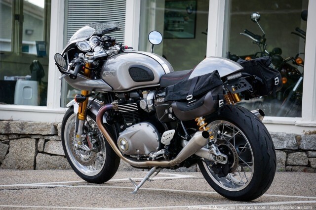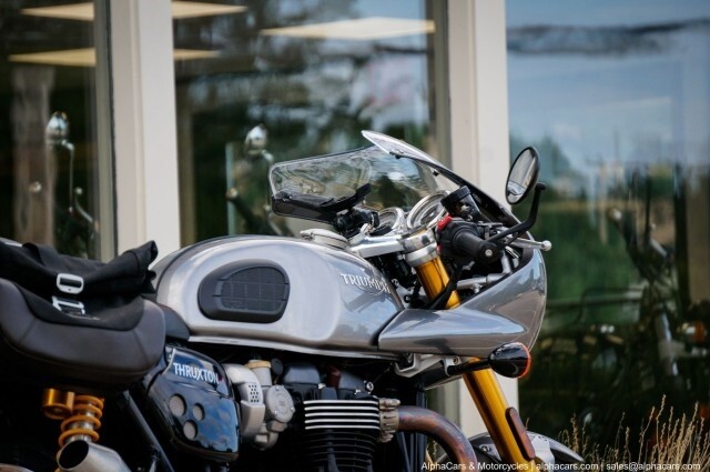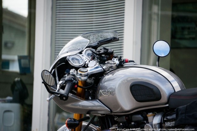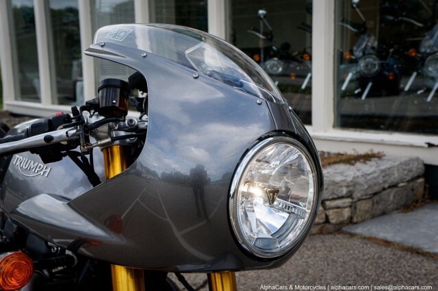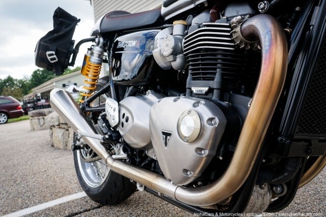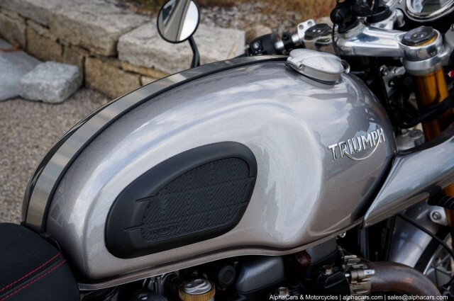 Over $2K in accessories, only 910 miles, and in near-new condition. This Thruxton 1200 R offers excellent value and a big smile at every twist of the throttle. The recent owner took meticulous care of the Triumph and was a local AlphaCars customer who used our Service Team for routine maintenance. We have serviced this bike throughout the years and have always been impressed by its condition.