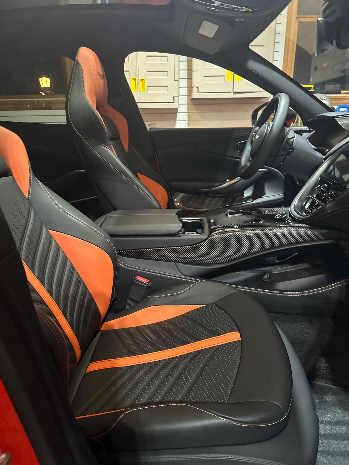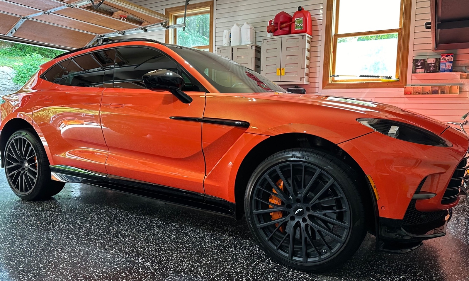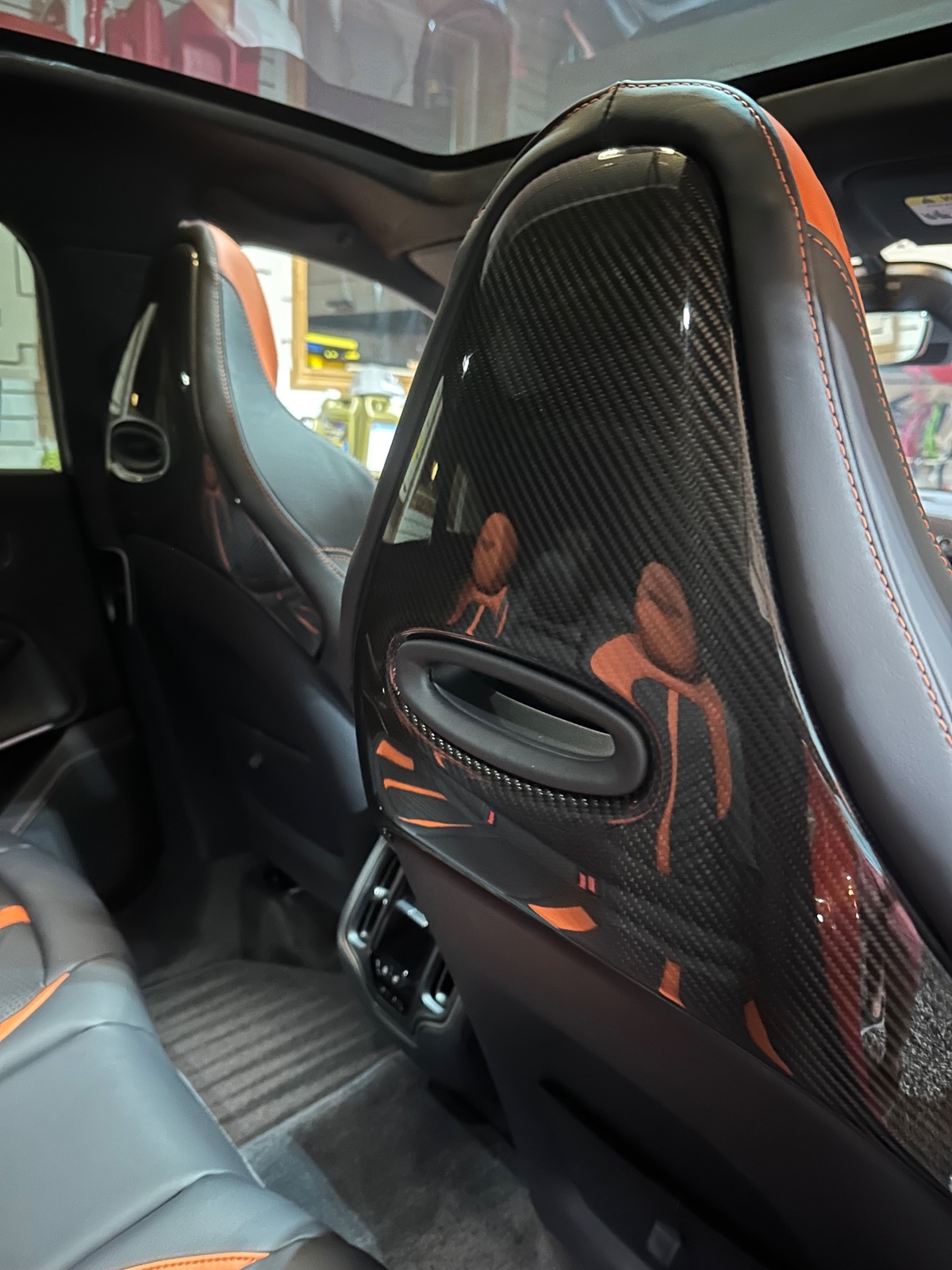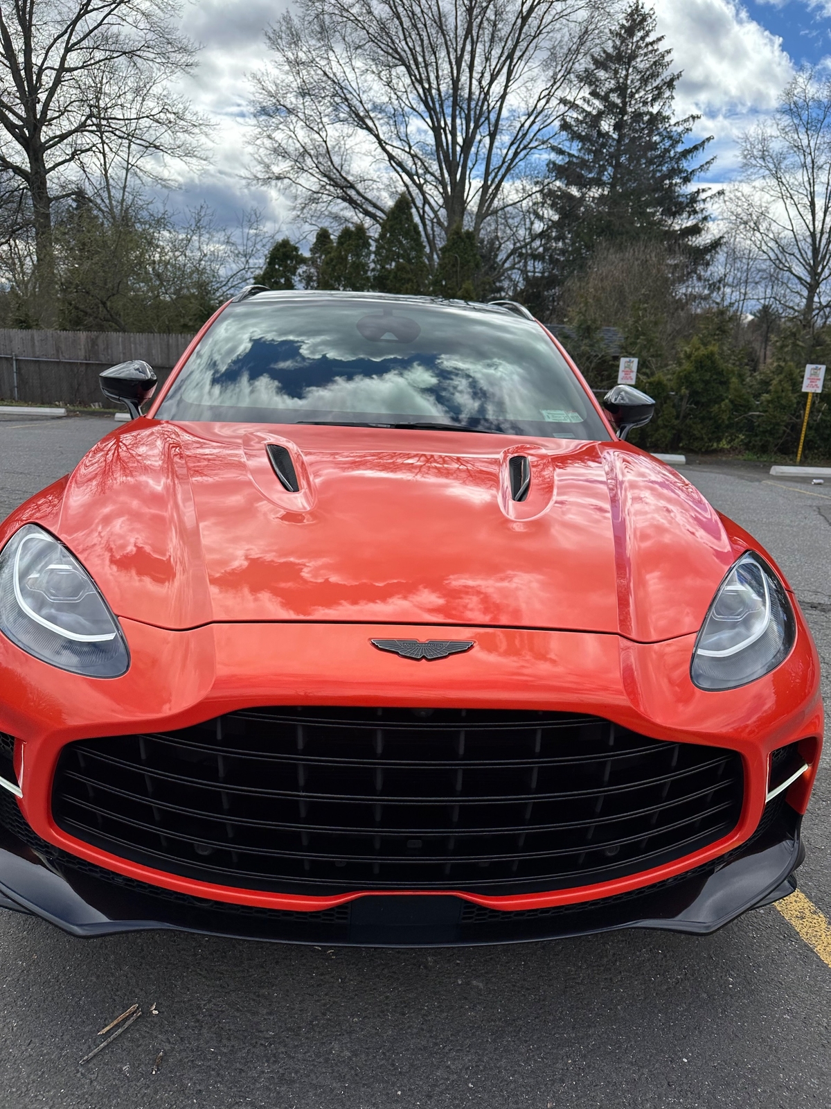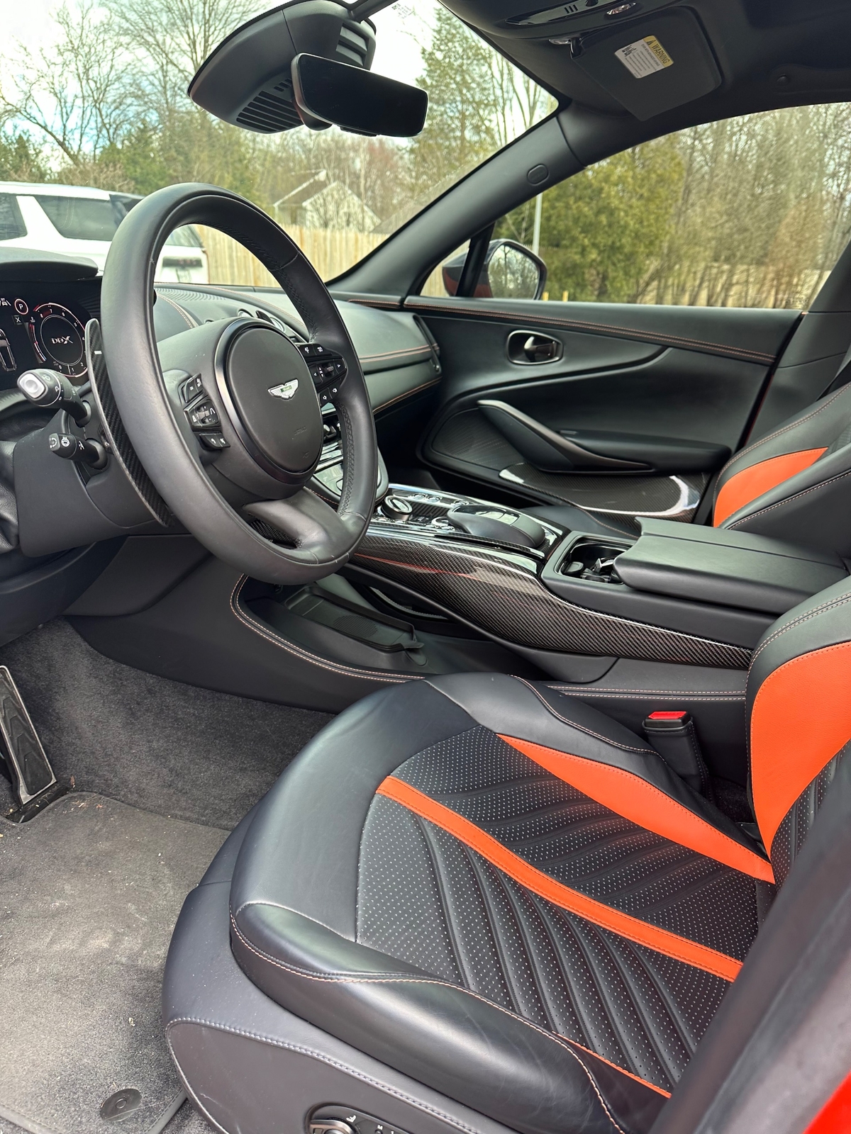 Complementing the sleek Onyx Black interior is the striking Cosmos Orange paint color that adorns the exterior of the Aston Martin DBX 707. This vibrant and eye-catching color not only sets this vehicle apart from the rest but also accentuates its dynamic and sporty design.