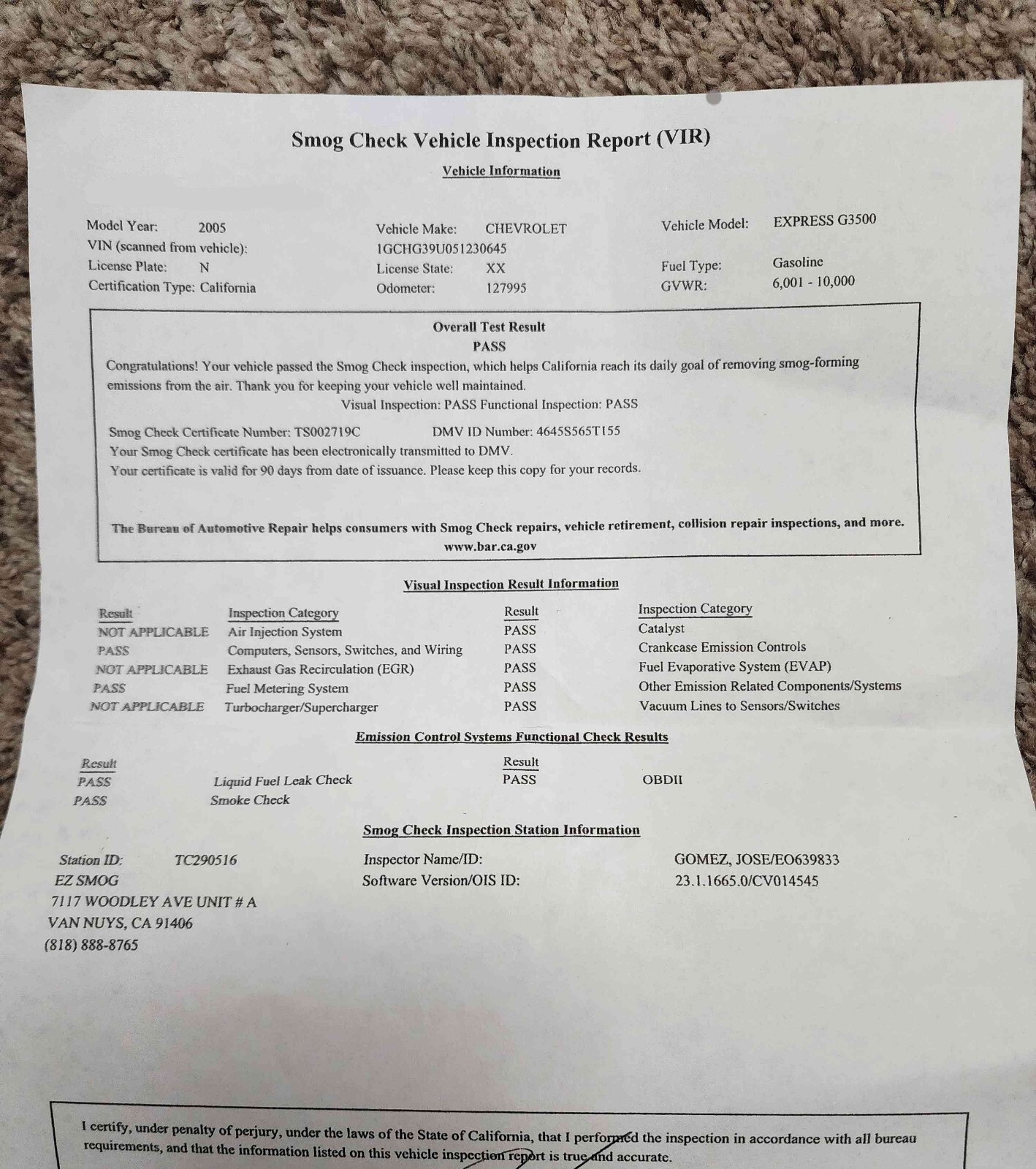 has a brand new portable toilet, also has a shower, the shower works by instaling the curtain on the ceiling. has 128,000 MILES, automatic transmission, it has a generator, and everything that comes with the roadtrek 2005 Chevy, the registration is up today also the smog check certificate in hand