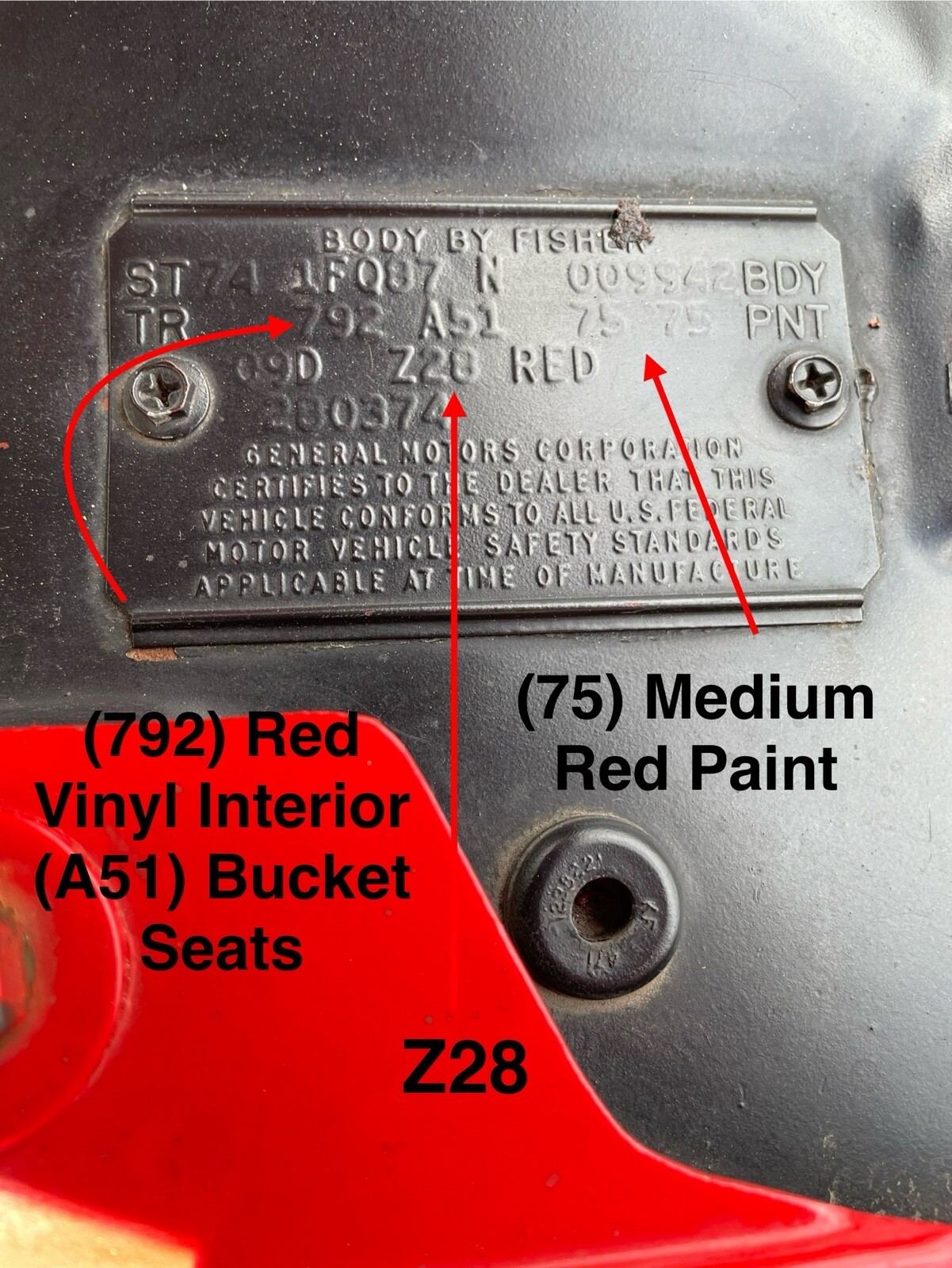 1974 Chevrolet Camaro Z28 - VIN and Cowl Tag decode to a real 1974 Z28 (see pictures)