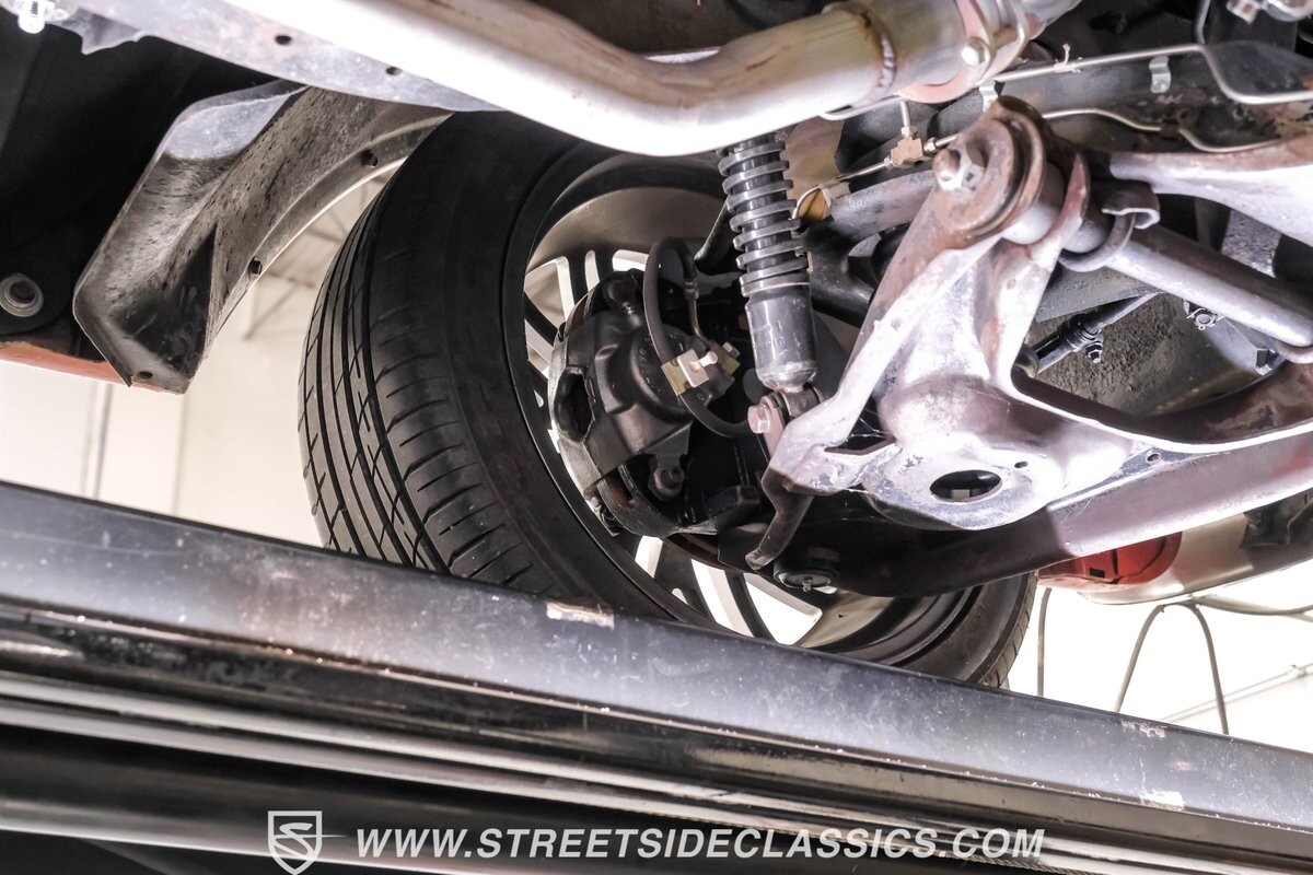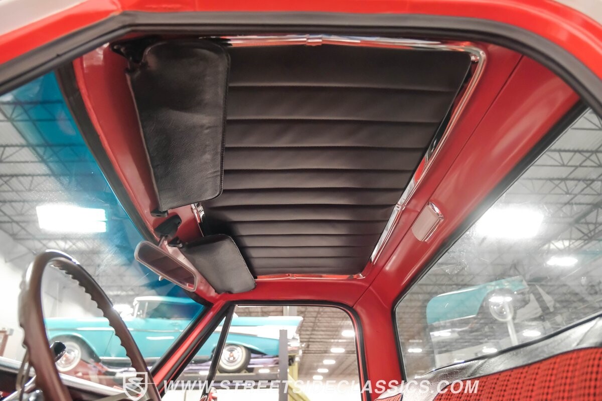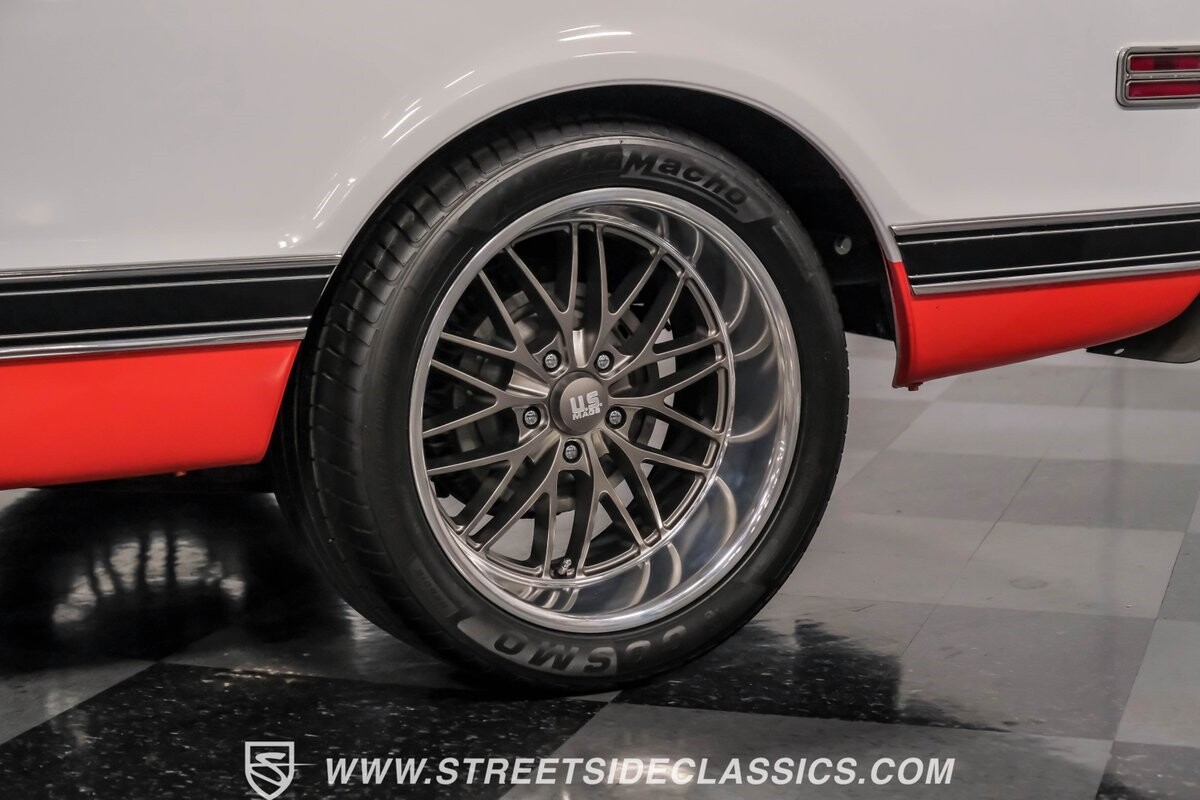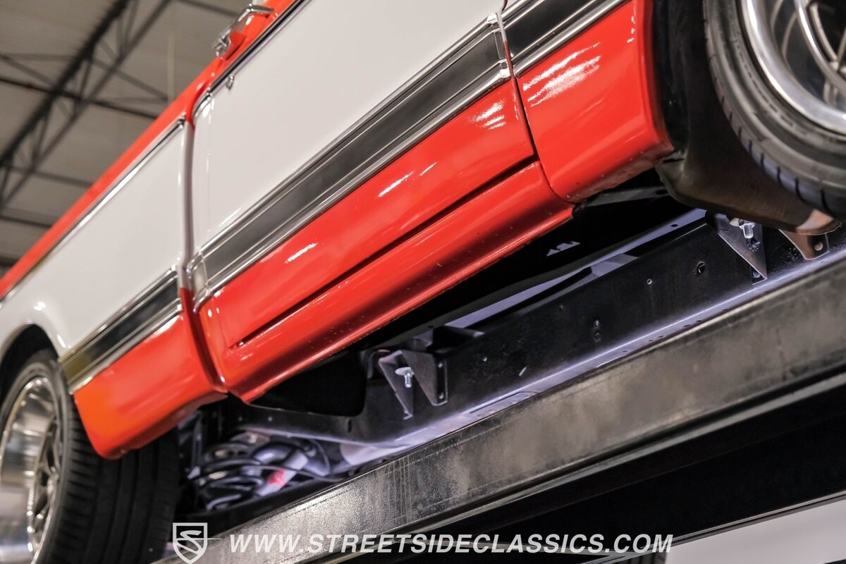 The carefully restored interior looks amazing with a black bench seat with orange and black houndstooth pattern insert, black carpets, black headliner and black CST western style door panels with woodgrain insert. Other interior highlights are a tilt steering column, freshly updated white-faced gauges, JVC AM/FM/CD/AUX/Bluetooth stereo with kick panel speakers, seat belts, Chevrolet logoed floor mats, a Chevelle SS style woodgrain sports steering wheel and an Old Air air conditioning system.