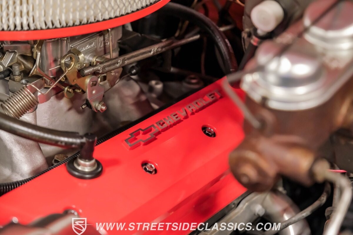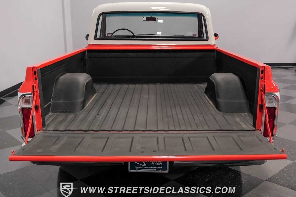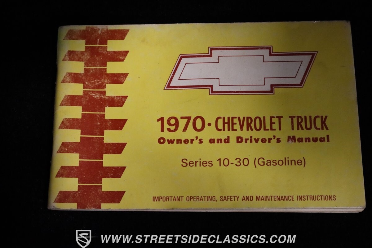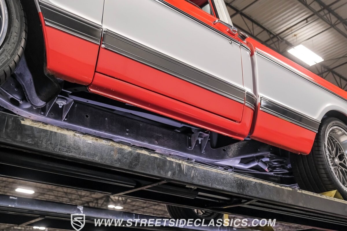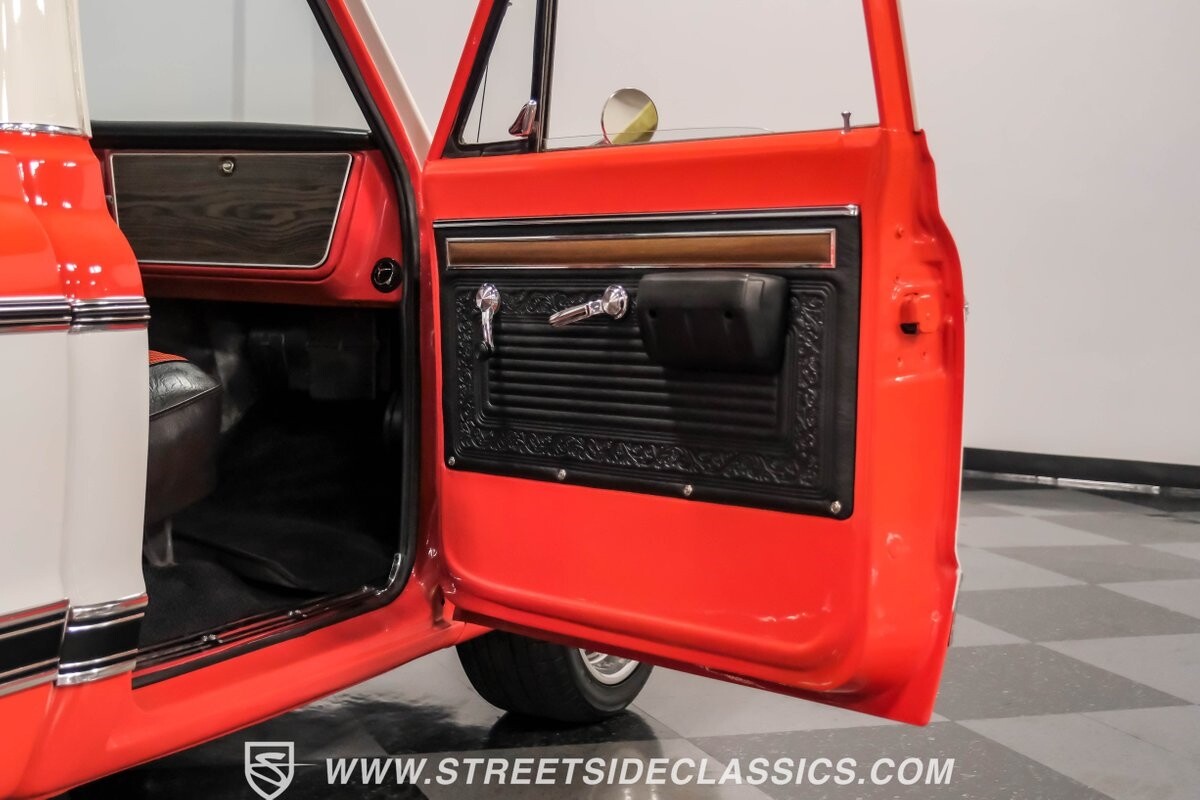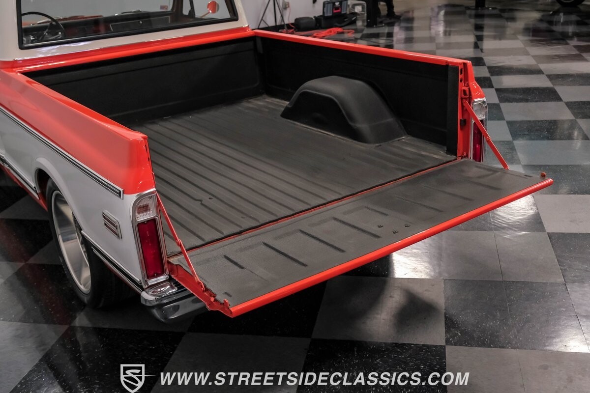Under the cowl hood, the engine bay is highly detailed with a 5.0-litre Chevy small block engine paired with 700R4 automatic transmission that sends power back to a 12-bolt rear end. Additionally, this C/10 is equipped with an aluminum intake manifold, Edelbrock carburetor, Headman headers, great-sounding Flowmaster mufflers, power steering, power brakes with front discs and a cool orange Chevrolet air cleaner with matching valve covers.