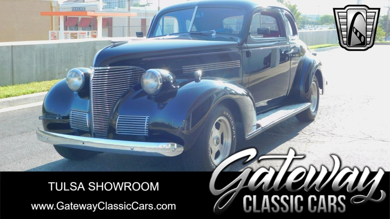 Gateway Classic Cars of Tulsa is proud to represent this slick 1939 Chevrolet Coupe, a stunning example of vintage automotive design and modern performance. This vehicle boasts a sleek black exterior that exudes sophistication and elegance, making it a head-turner on any road. Step inside to find a vibrant red cloth interior that offers a striking contrast, creating an inviting and stylish cabin.