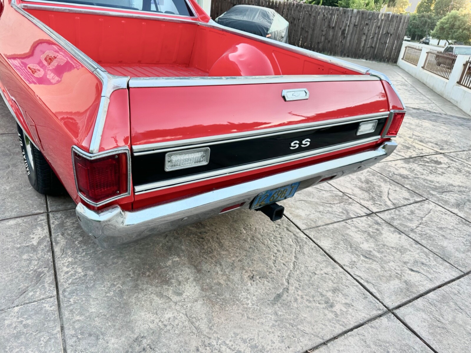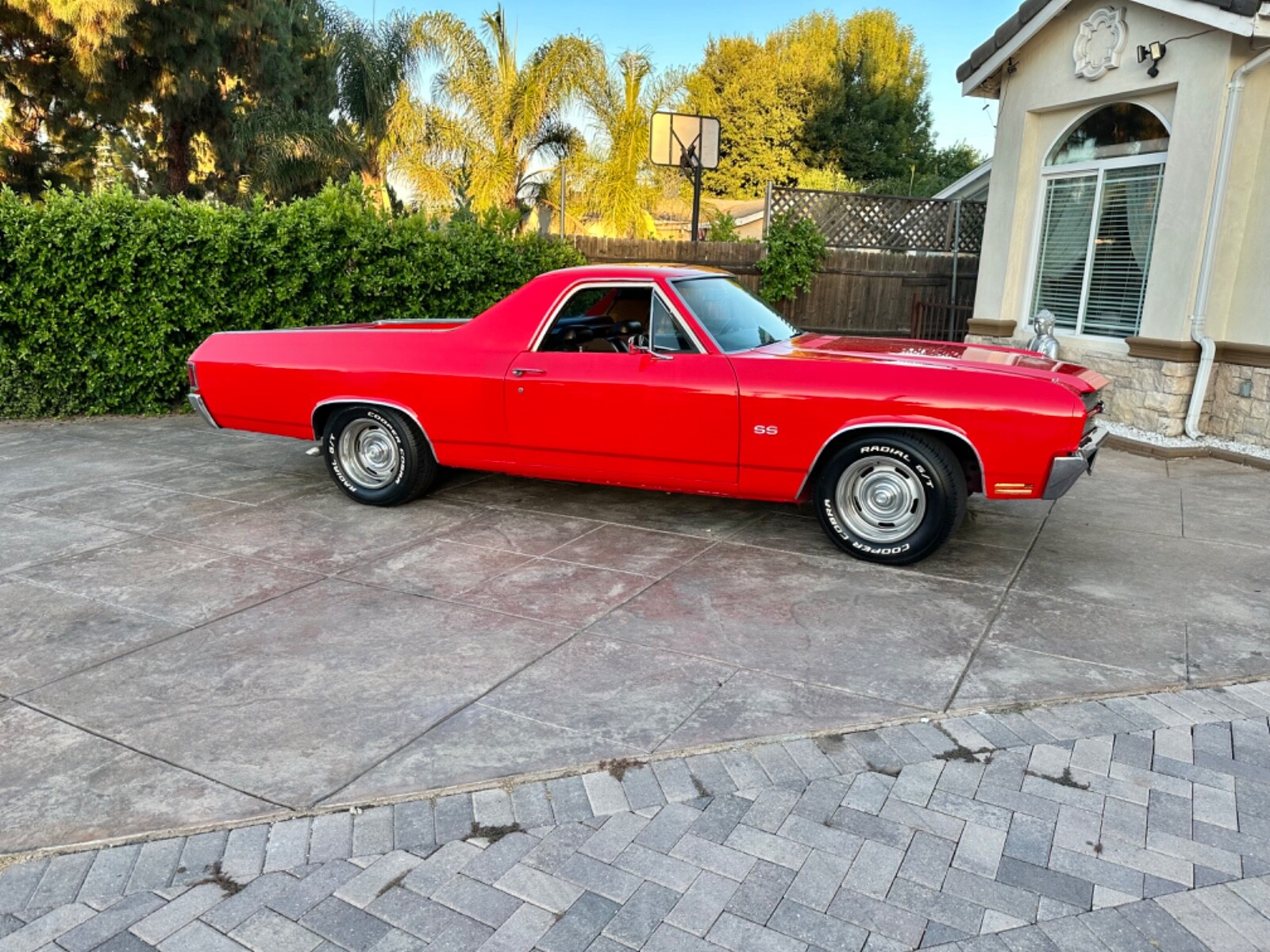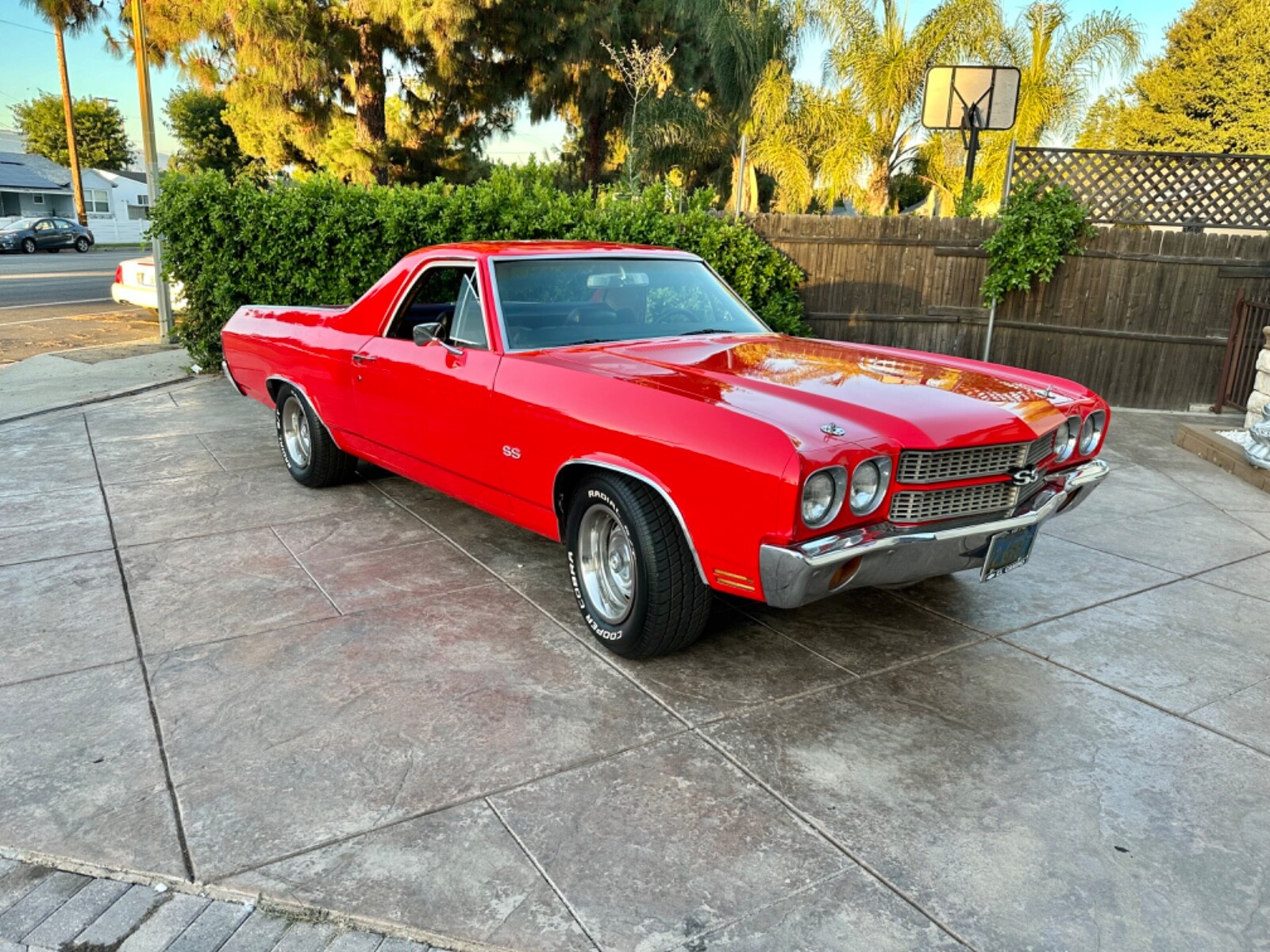 1970s Chevrolet El Camino super sport tribute has a powerful and healthy 350 engine and 350 transmission California all its life 1970 Chevrolet ElCamino Super Sport Tribute things we just done to this vehicle. We had a paint job done, two-stage color, sand, and buffed already there is no rest on this vehicle. The floors are clean and original. It’s been a true California car since 1970 still wears this original plates that was put on clean title in hand for the upholstery. We did a new headliner and sun visors new steering wheel new door panels, new window felts new door weatherstripping, new door lock knobs and grommets new seal plates new carpet kit new Dash skin new steering wheel new hood pins all new super sport badging new tires and rims new Chevrolet Rally sport rims has a very healthy 350 Engine and automatic transmission power steering power disc brakes please let me know if you have any questions. Please contact me. We are located in Granada Hills, CA 91344. ?