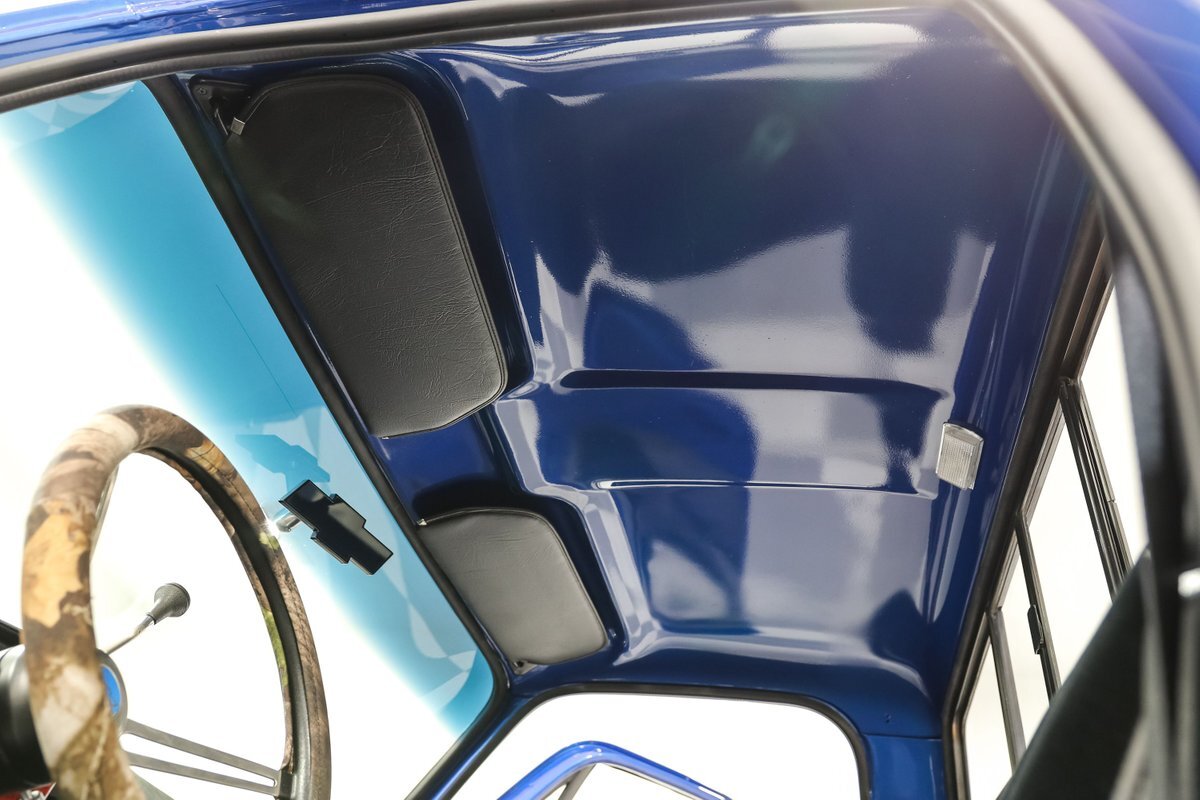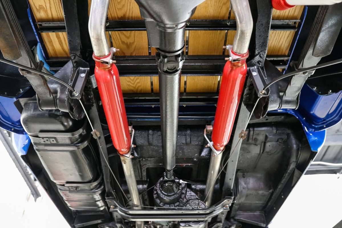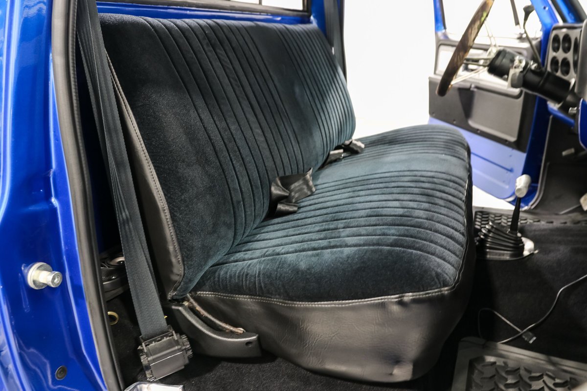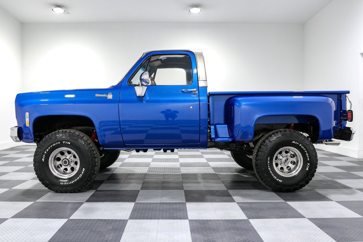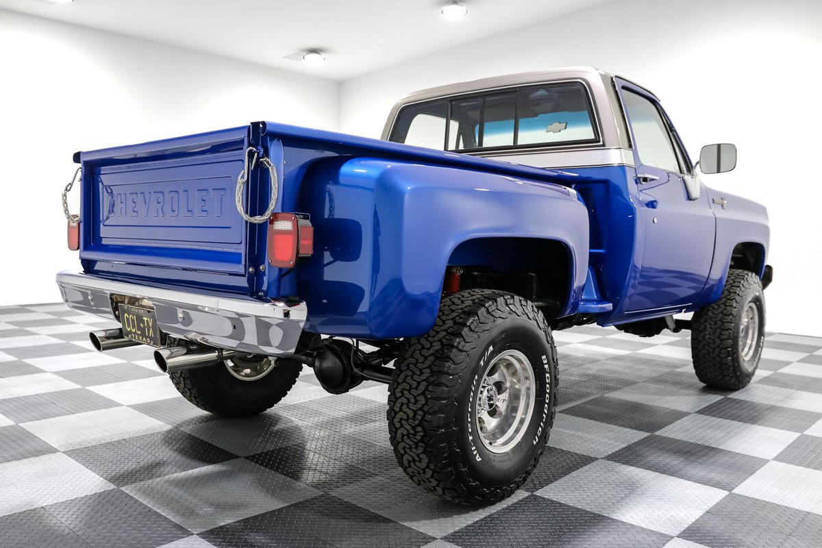 The exterior of this K10 is finished to perfection, with a wood bed featuring stainless steel stripes that add a touch of elegance to its rugged persona. The vibrant Blue paint highlights the truck's bold lines and muscular stance, making it a standout on any road. This truck isn't just about looks; it's built to perform and is ready for any adventure.